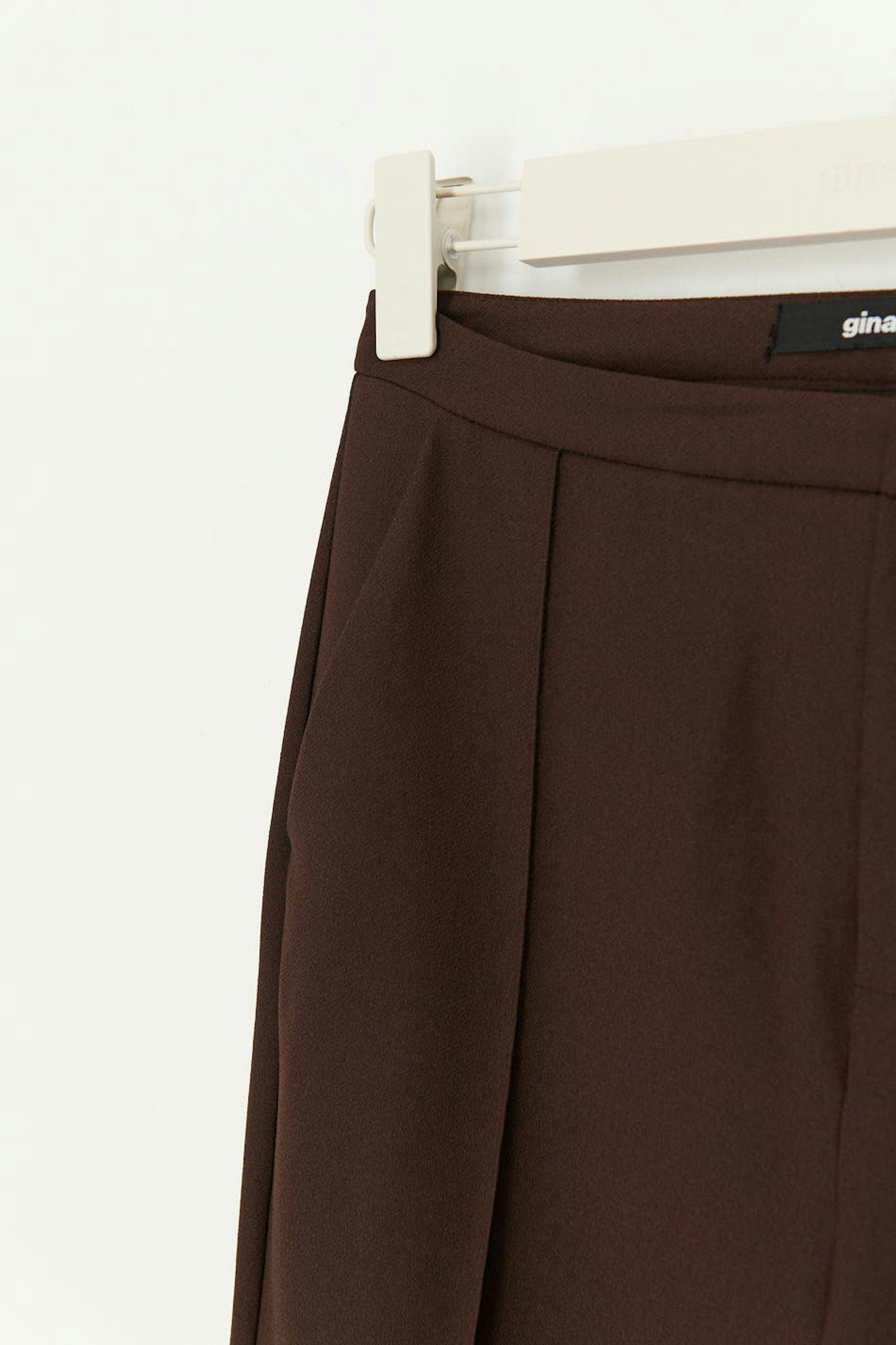 Petite kostymbyxor med slim fit. Byxorna är bruna och har hög midja. De har croppade, vida ben, falska fickor baktill, dragkedja framtill och slits vid fållen. Passar för dig som är 160 cm eller kortare.