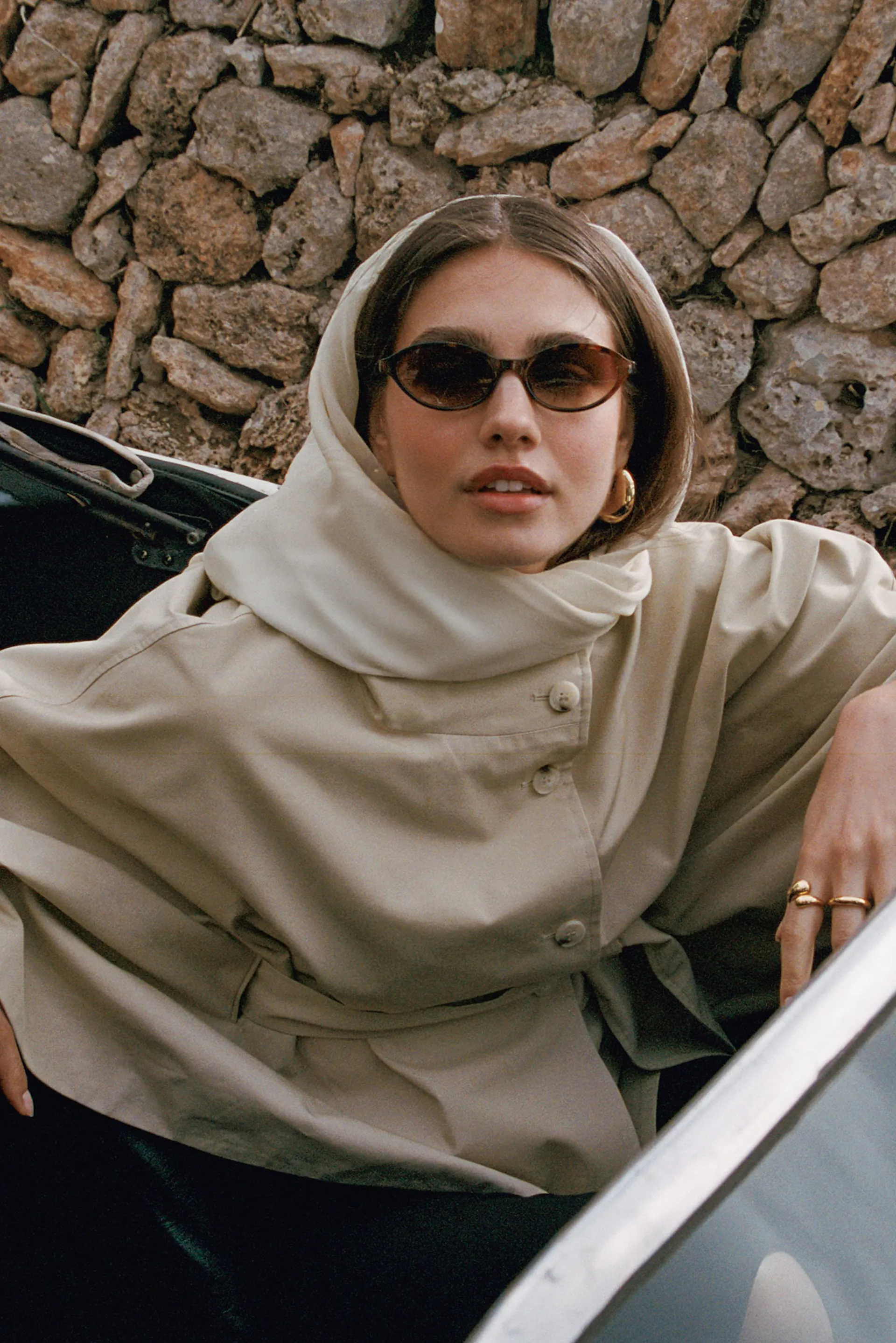 Short cape trench jacket