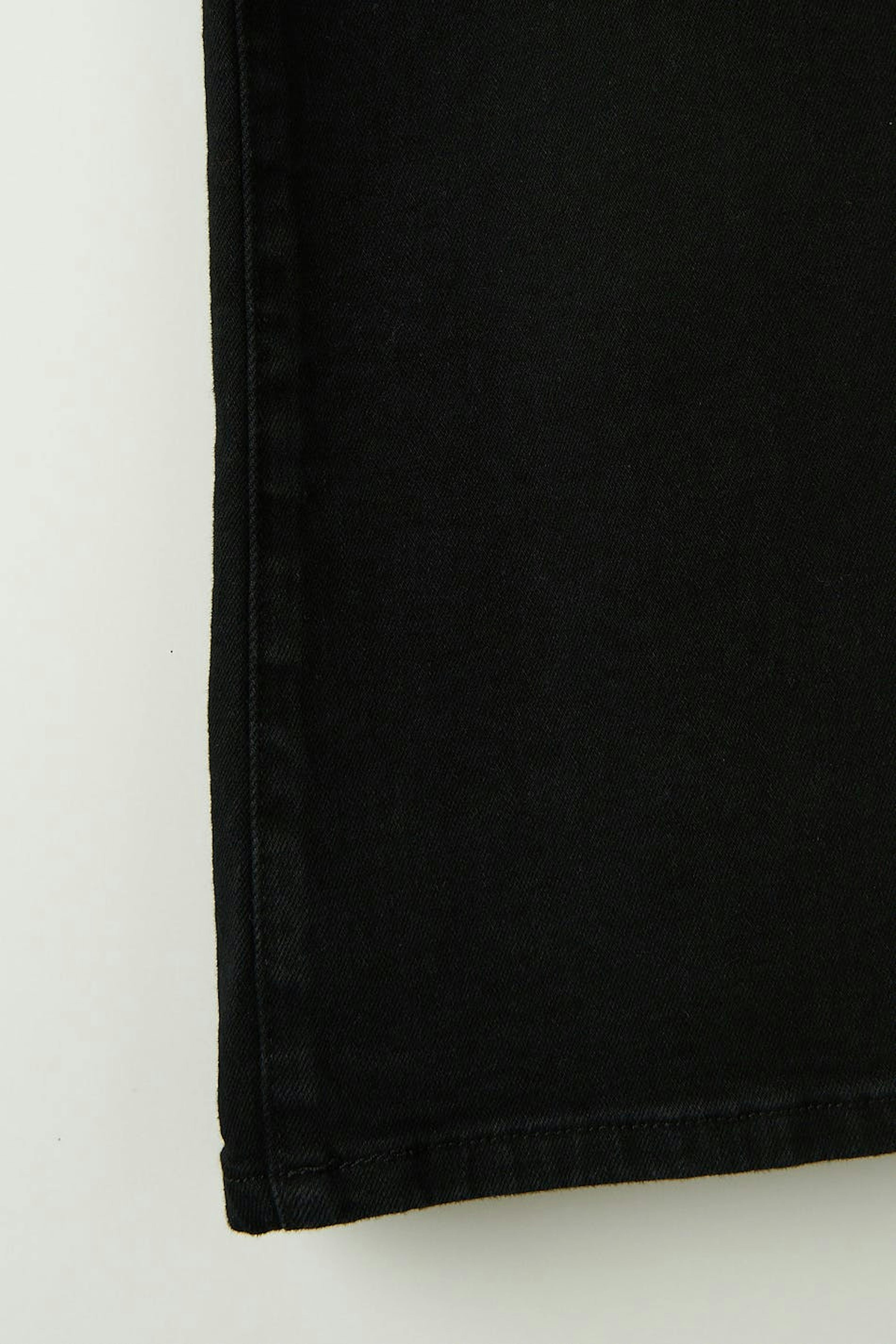 Petite bootcut jeans med låg midja. Jeansen är svarta och har utsvängda ben i denim med låg stretch. De har normal längd, dragkedjegylf och fickor fram och bak. Passar för dig som är 160 cm eller kortare. Se gärna vår storleksguide för att hitta din storlek.
