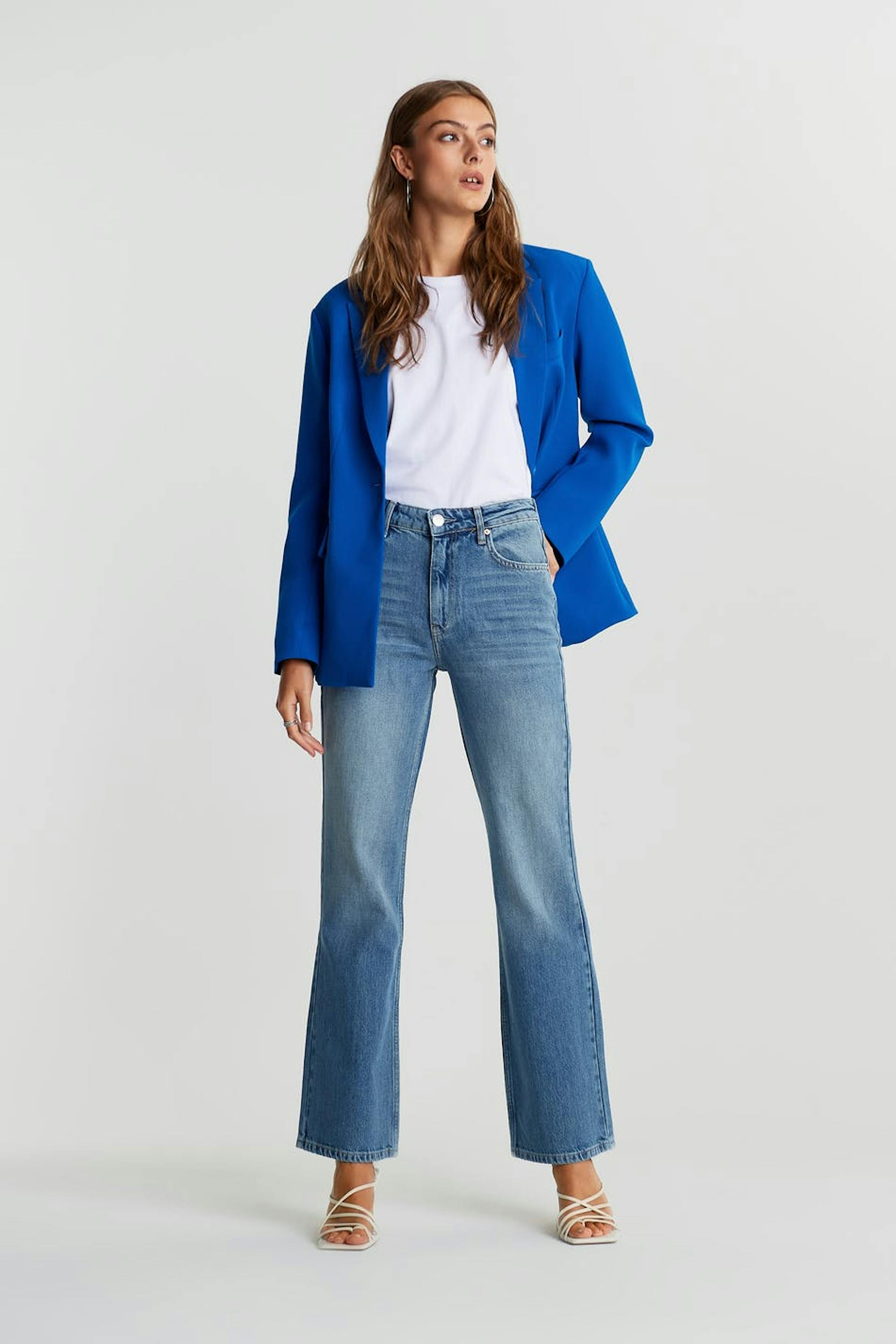 Vintage flare jeans med en normal passform. Jeansen är blåa och utan stretch och har en hög midja. De har lätt utsvängda ben med fullängd.