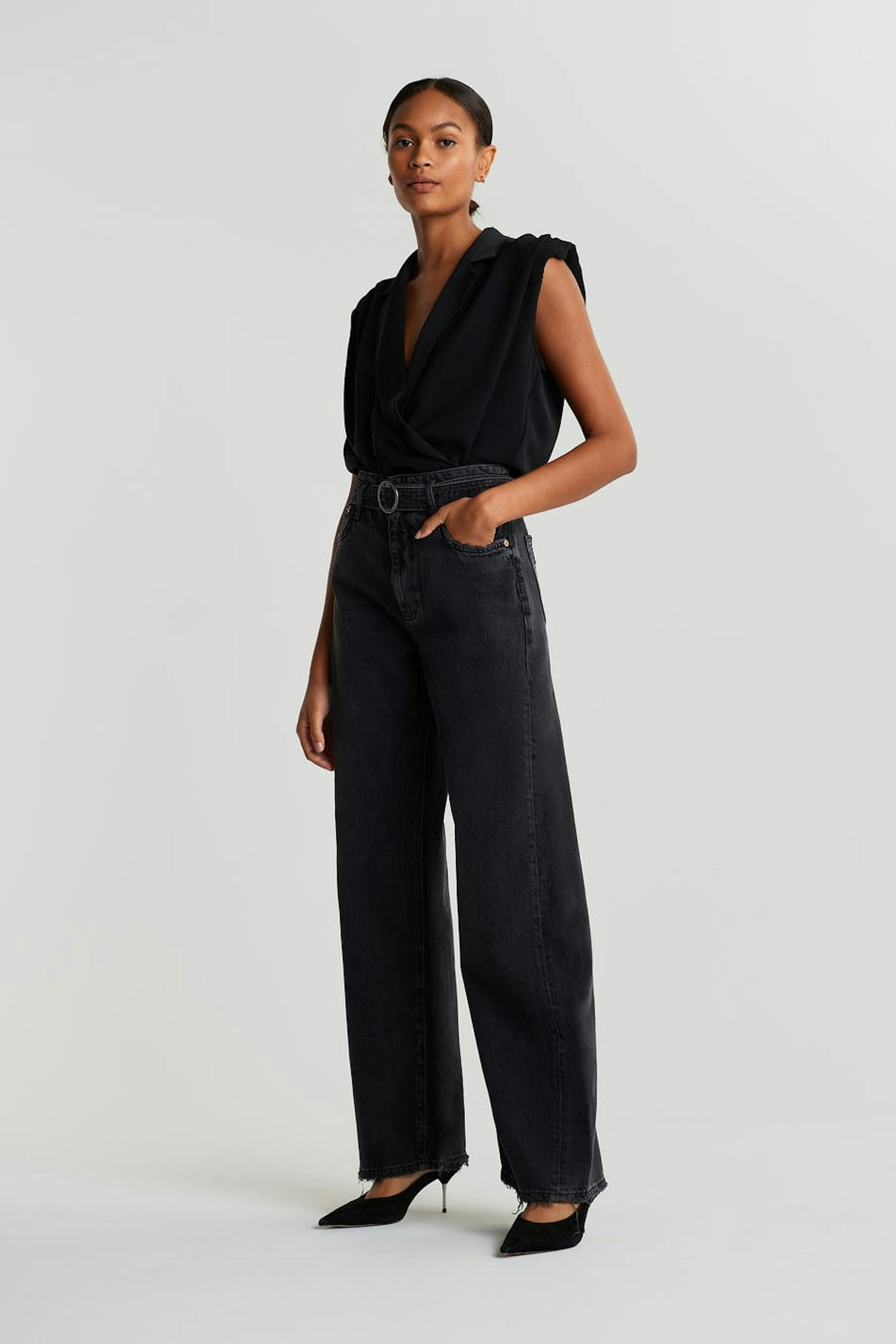 Belted wide jeans
