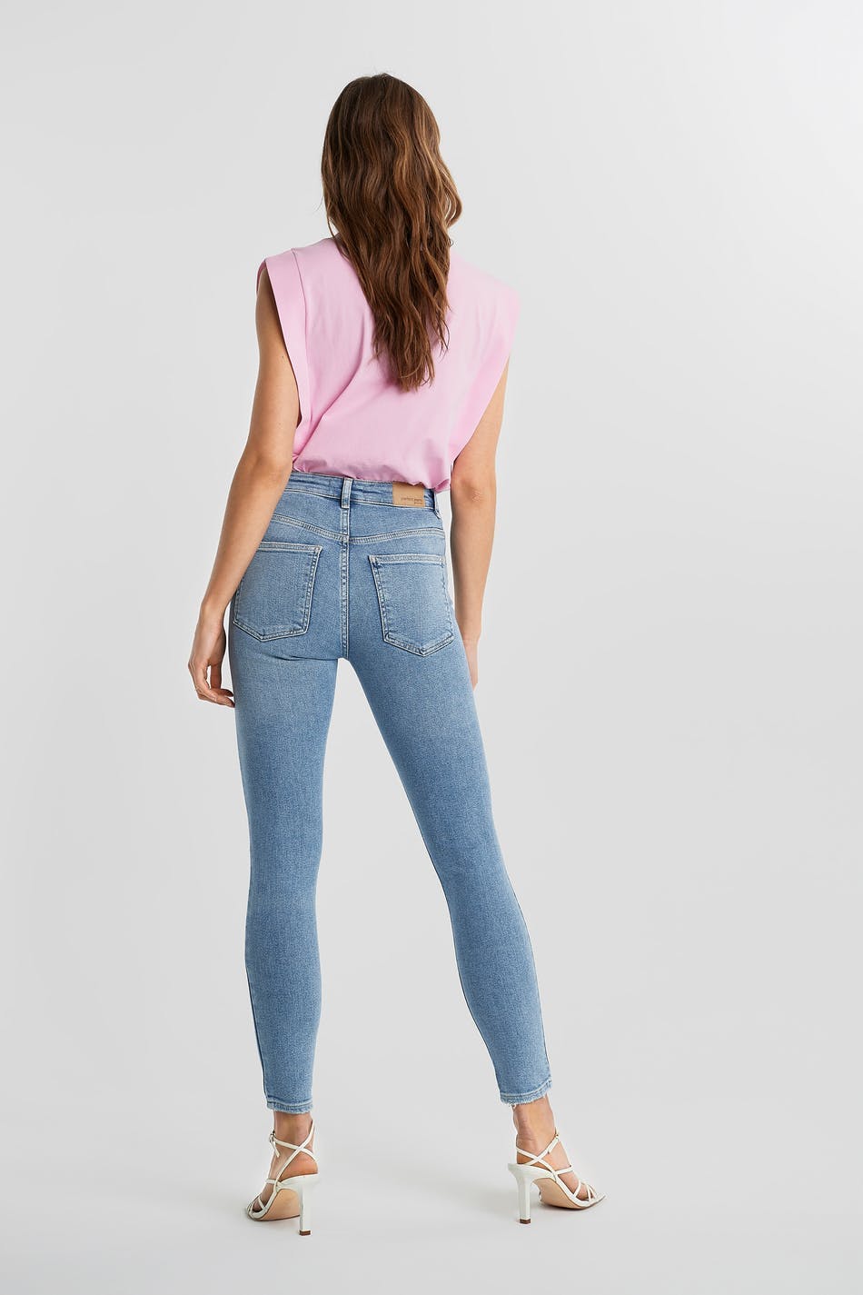 Highwaist jeans med en figurnära passform. Jeansen är ljusblåa och har en skinny fit. De har komfortstrech.