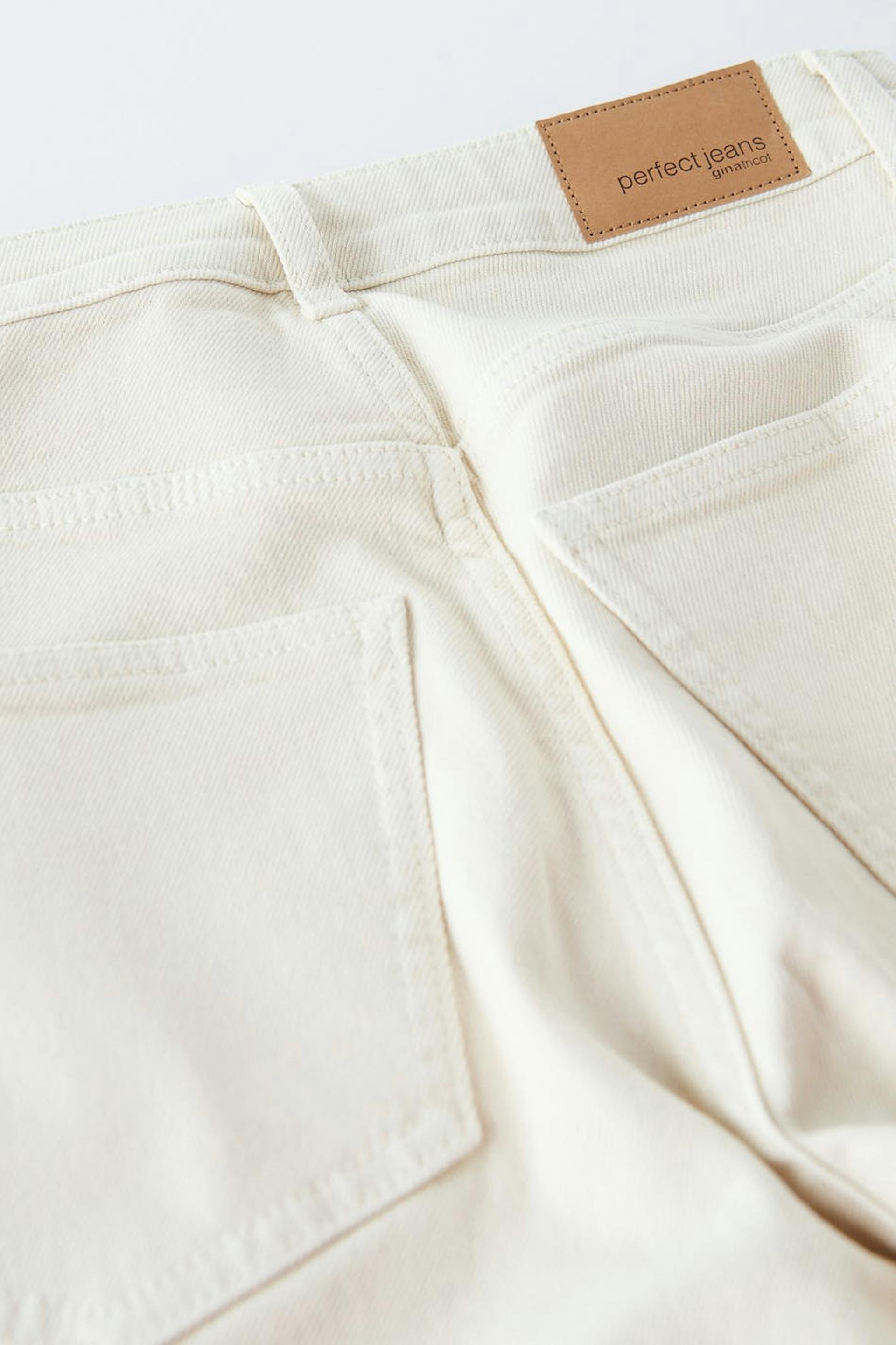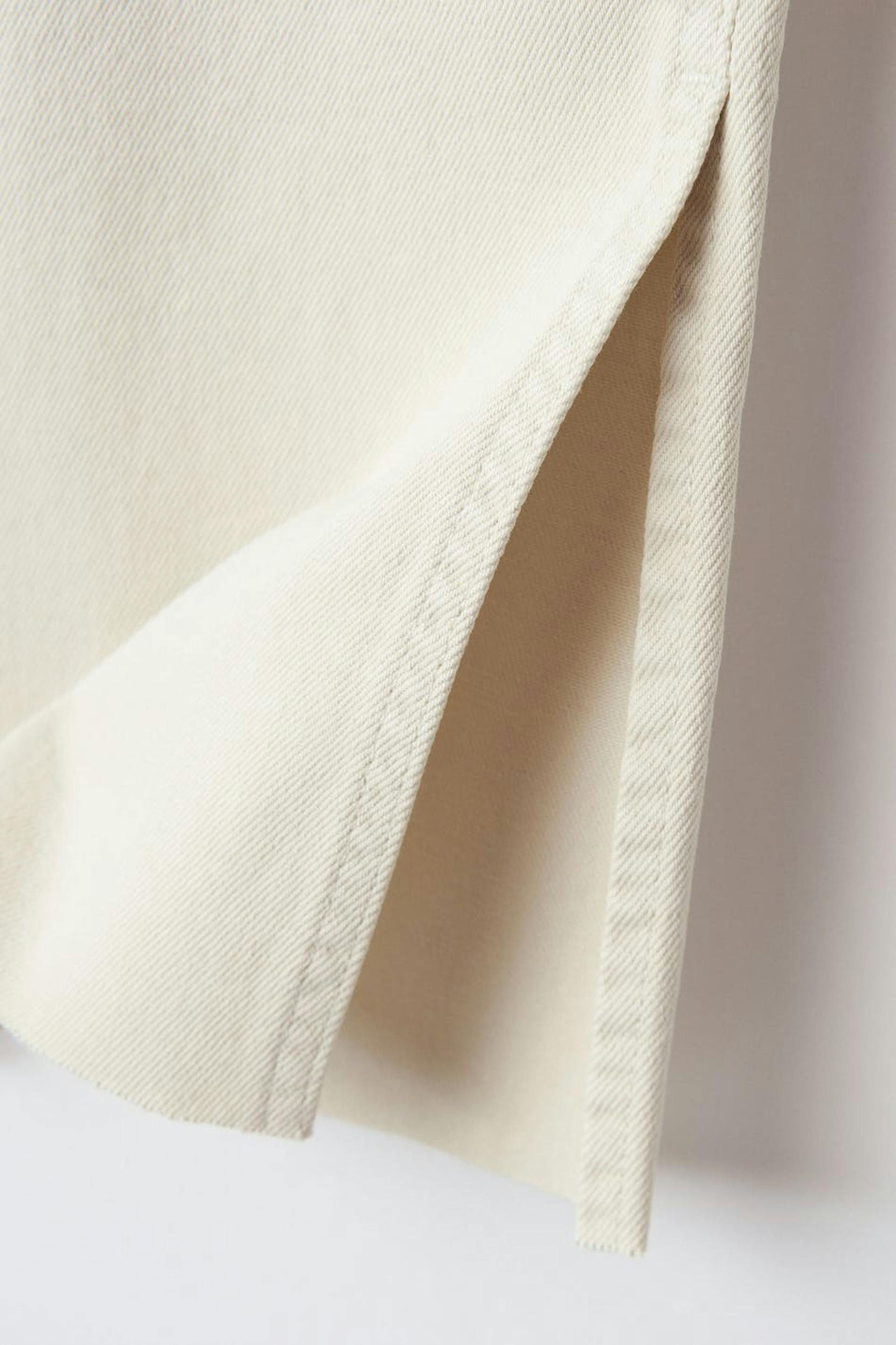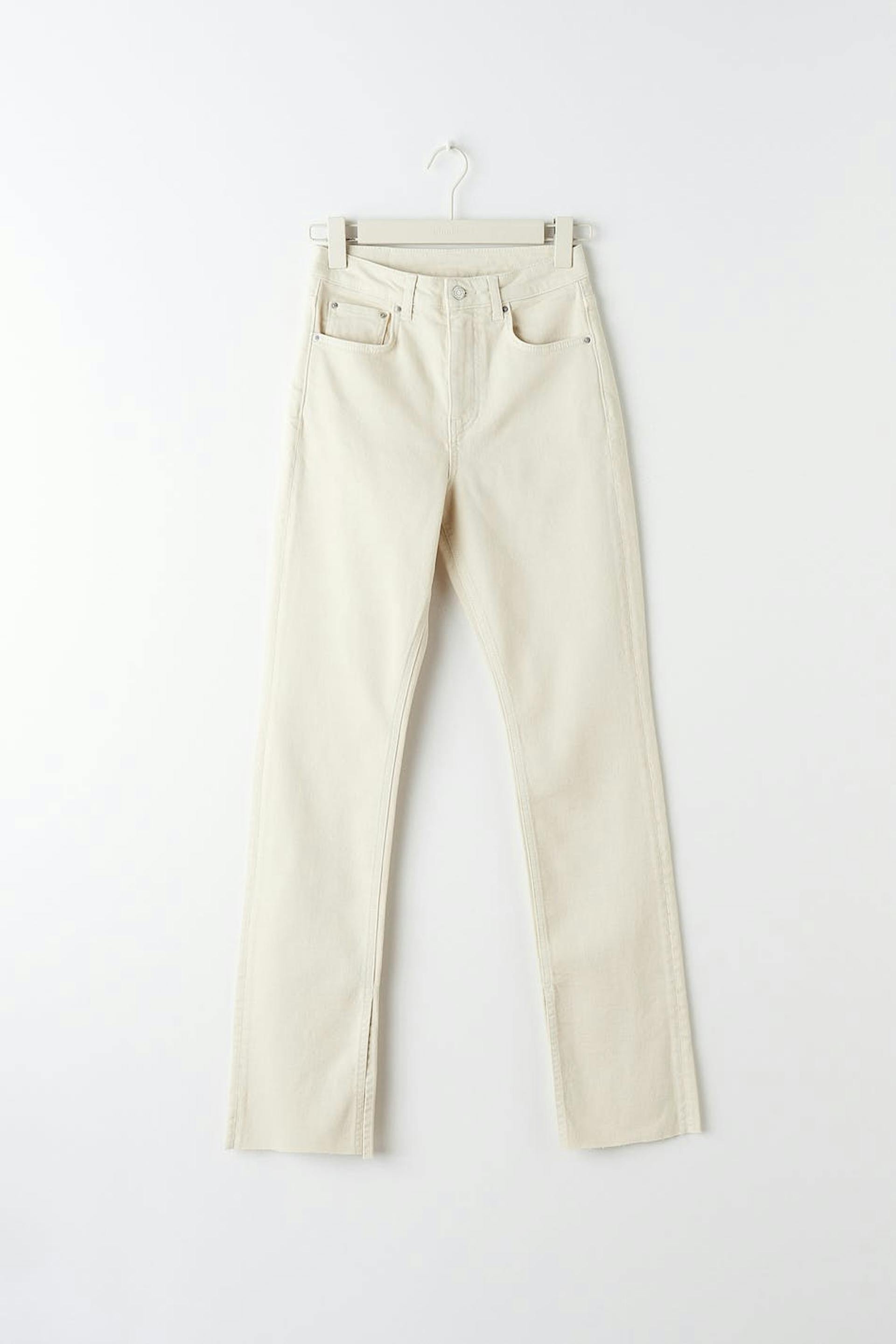 Slim jeans med hög midja i denim med låg stretch. Jeansen är beigea och har raka ben med fullängd. De har slits vid bensluten, dragkedjegylf och fickor fram och bak. Se gärna vår storleksguide för att hitta din storlek.