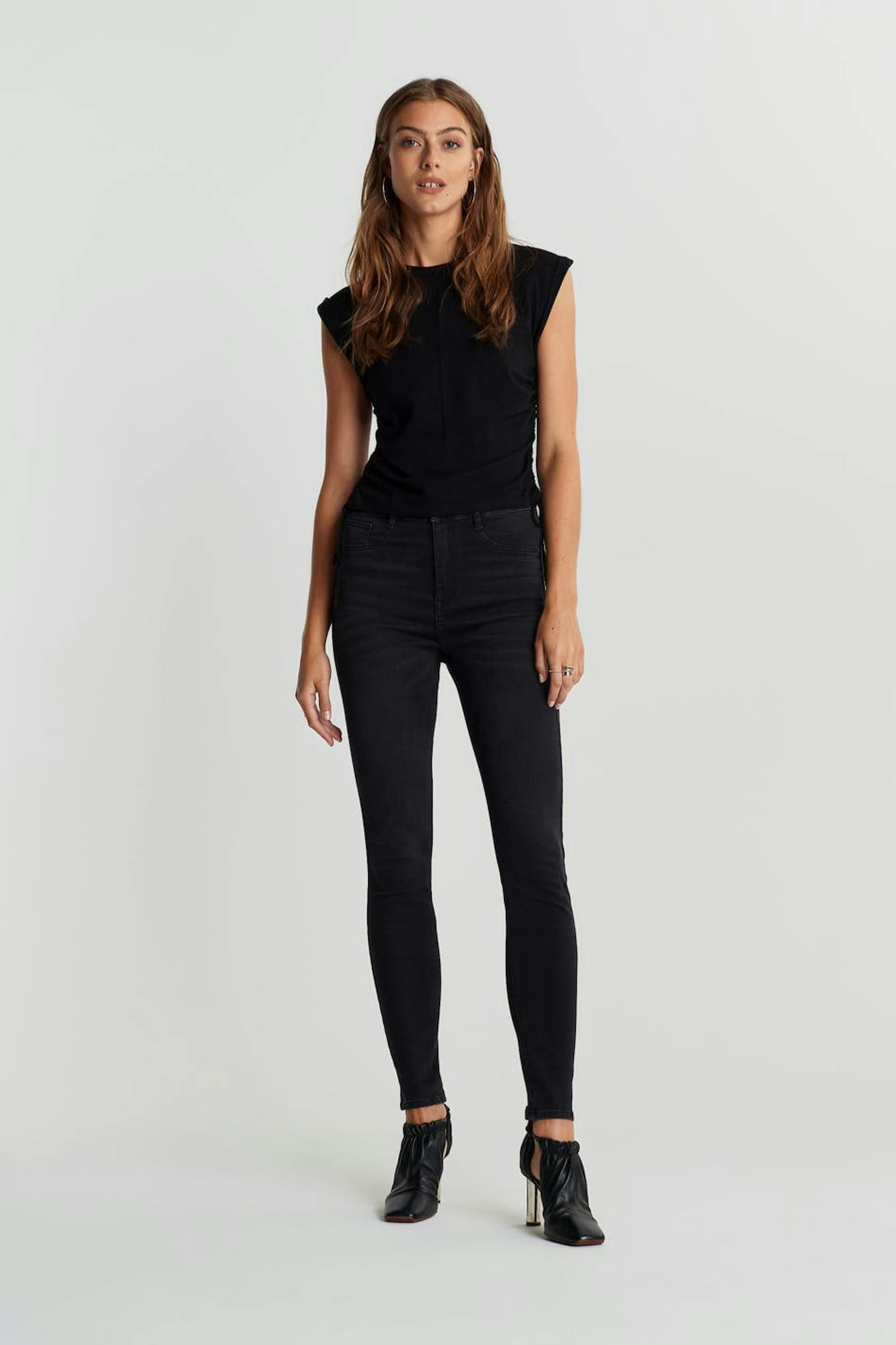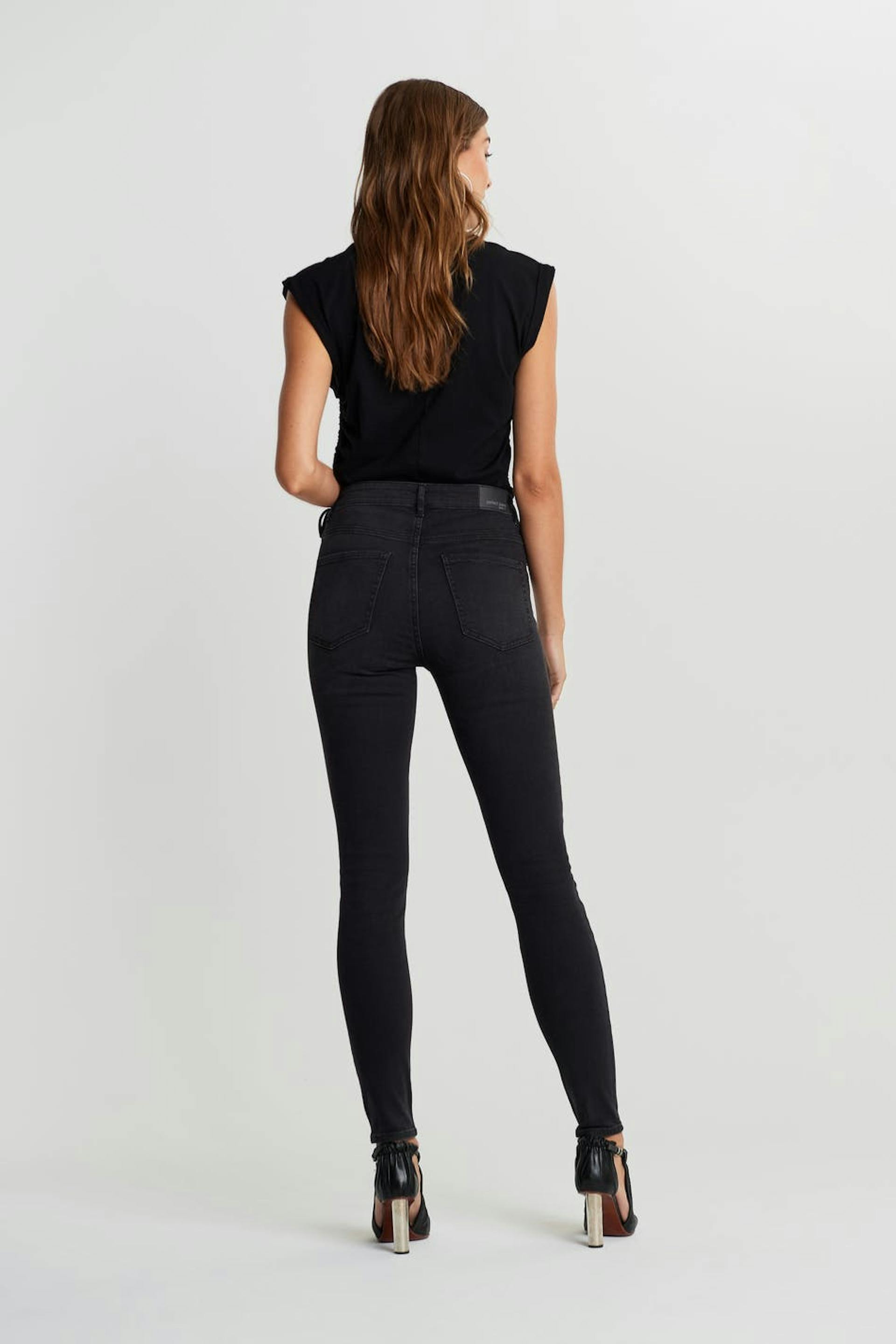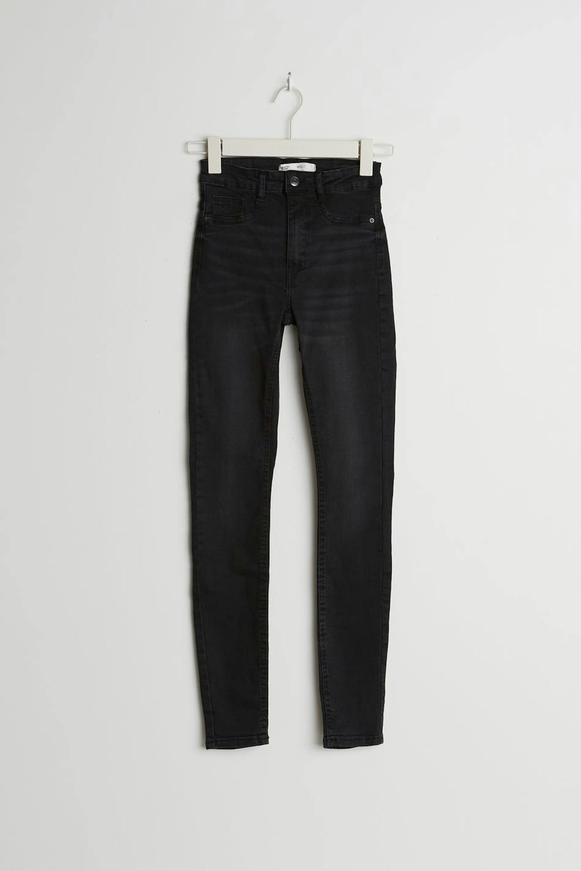 Superstretchiga jeans med hög midja. Jeansen är svarta och har en figurnära, bekväm passform med smala byxben. De har dragkedjegylf, fuskfickor fram och riktiga bakfickor. Passar för dig som är 175 cm eller längre. Se gärna vår storleksguide för att hitta din storlek.