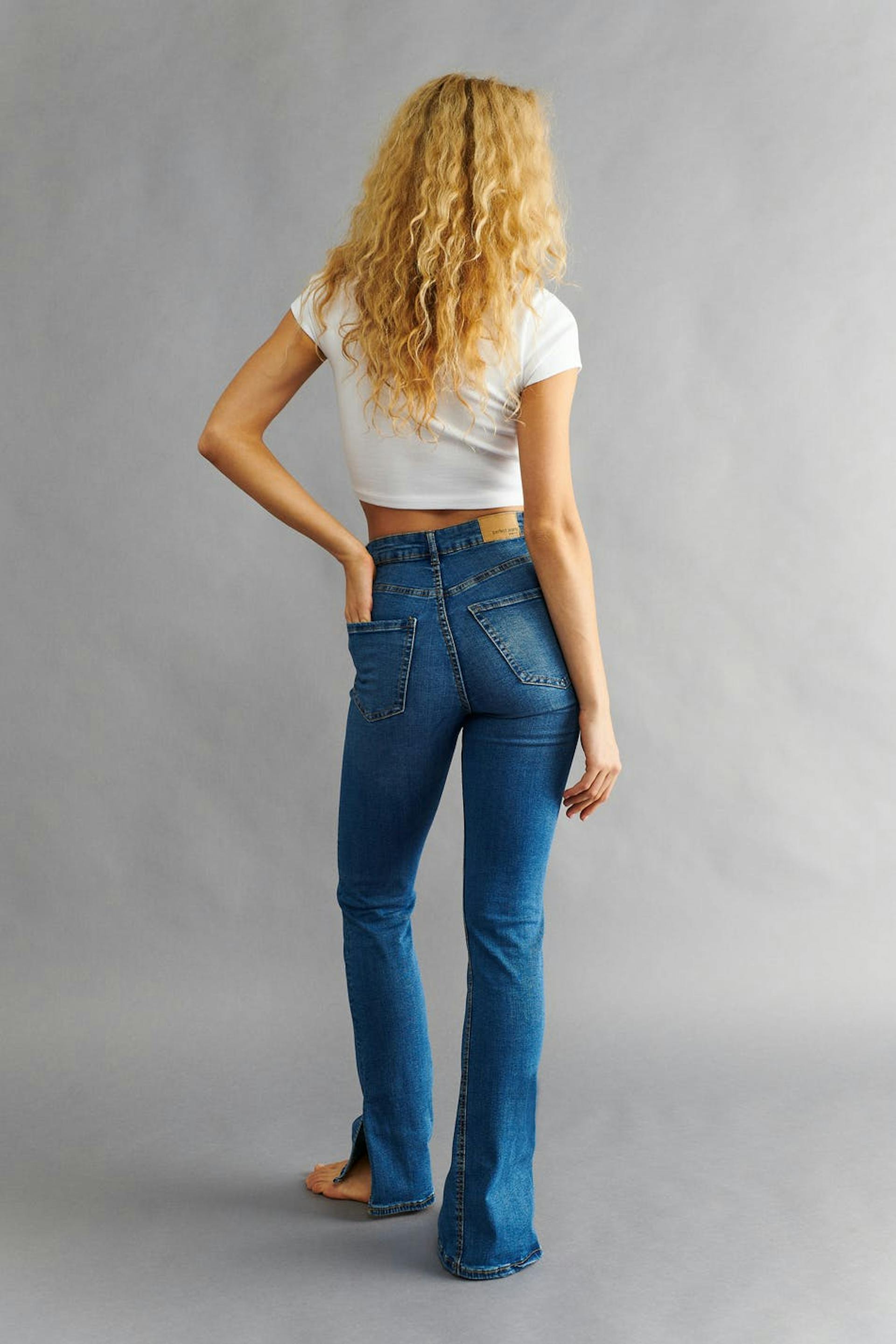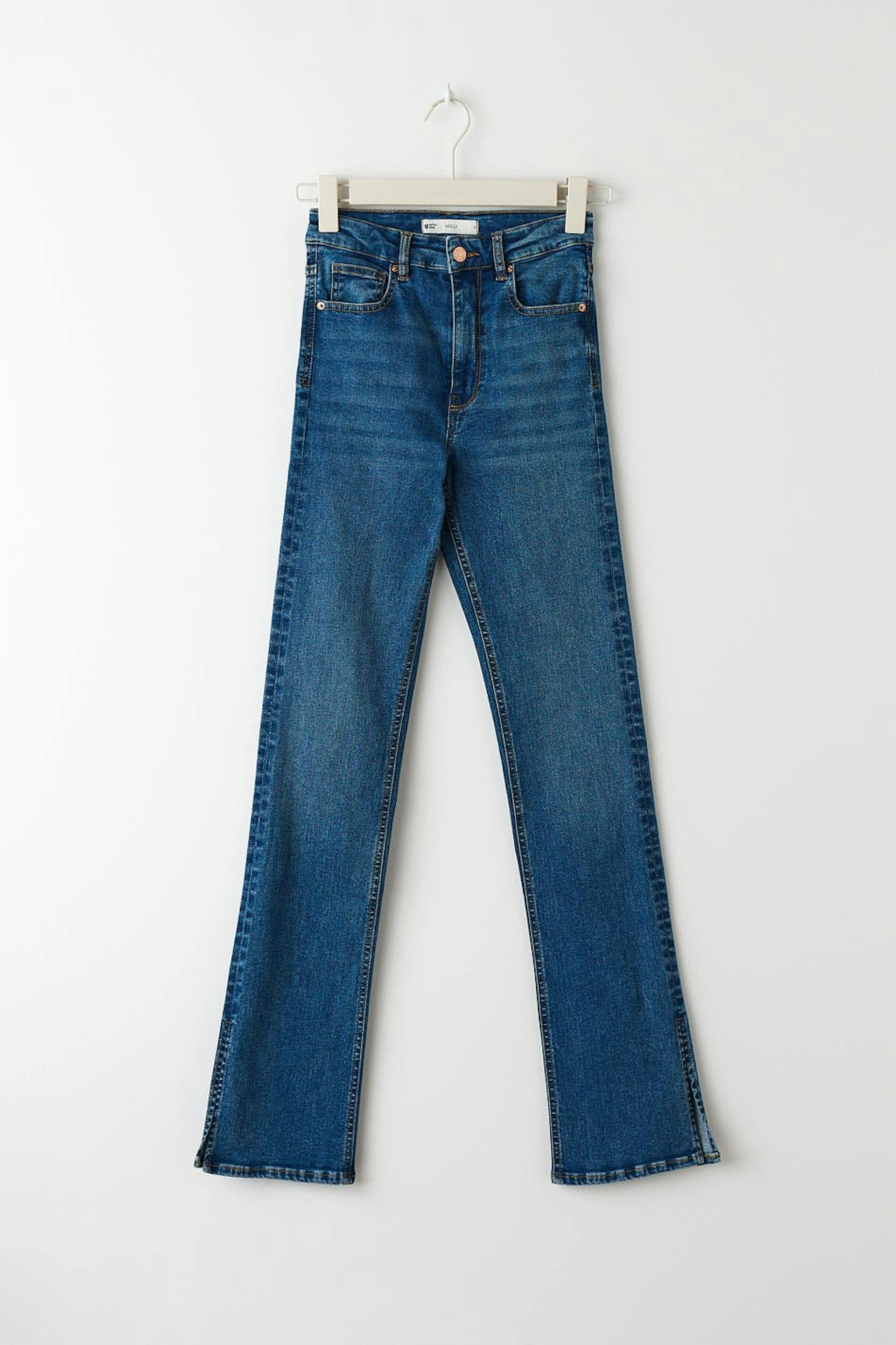 Superstretchiga skinny jeans med hög midja. Jeansen är blåa, mjuka och bekväma. De har slim fit, raka ben med slits vid bensluten, dragkedjegylf och fickor fram och bak. Se gärna vår storleksguide för att hitta din storlek.
