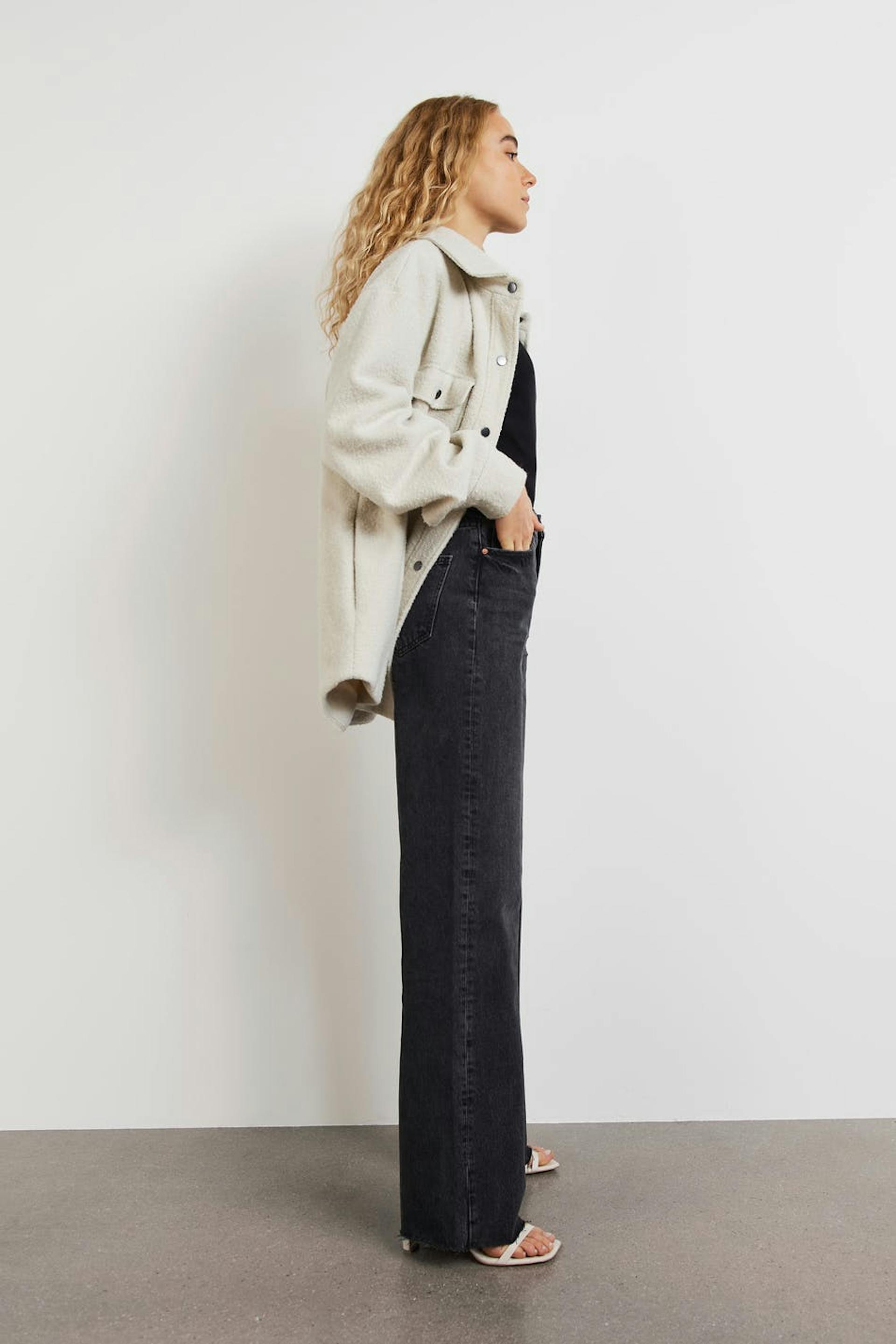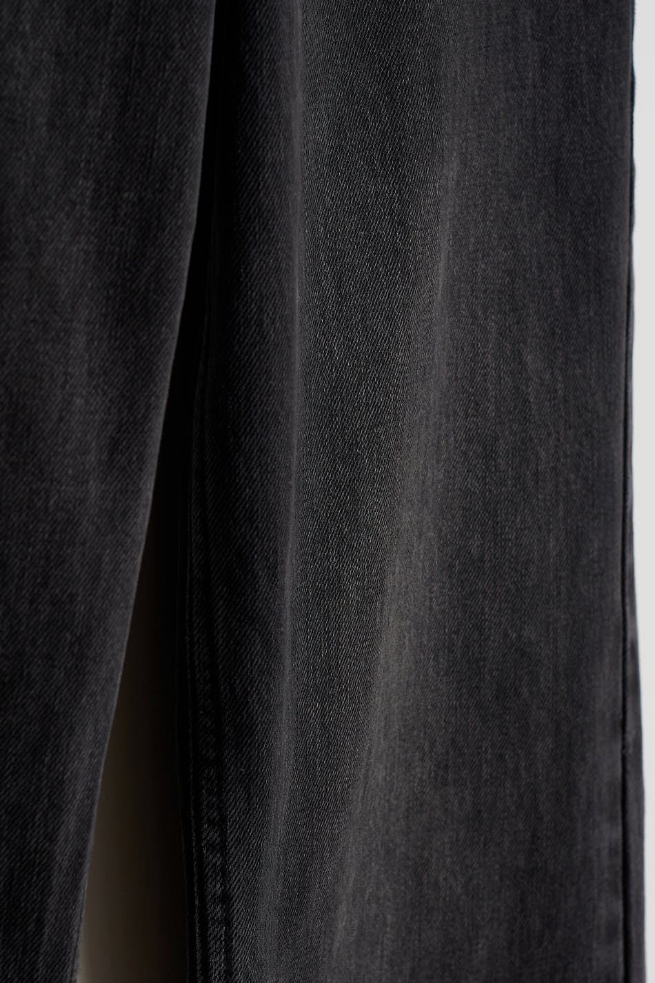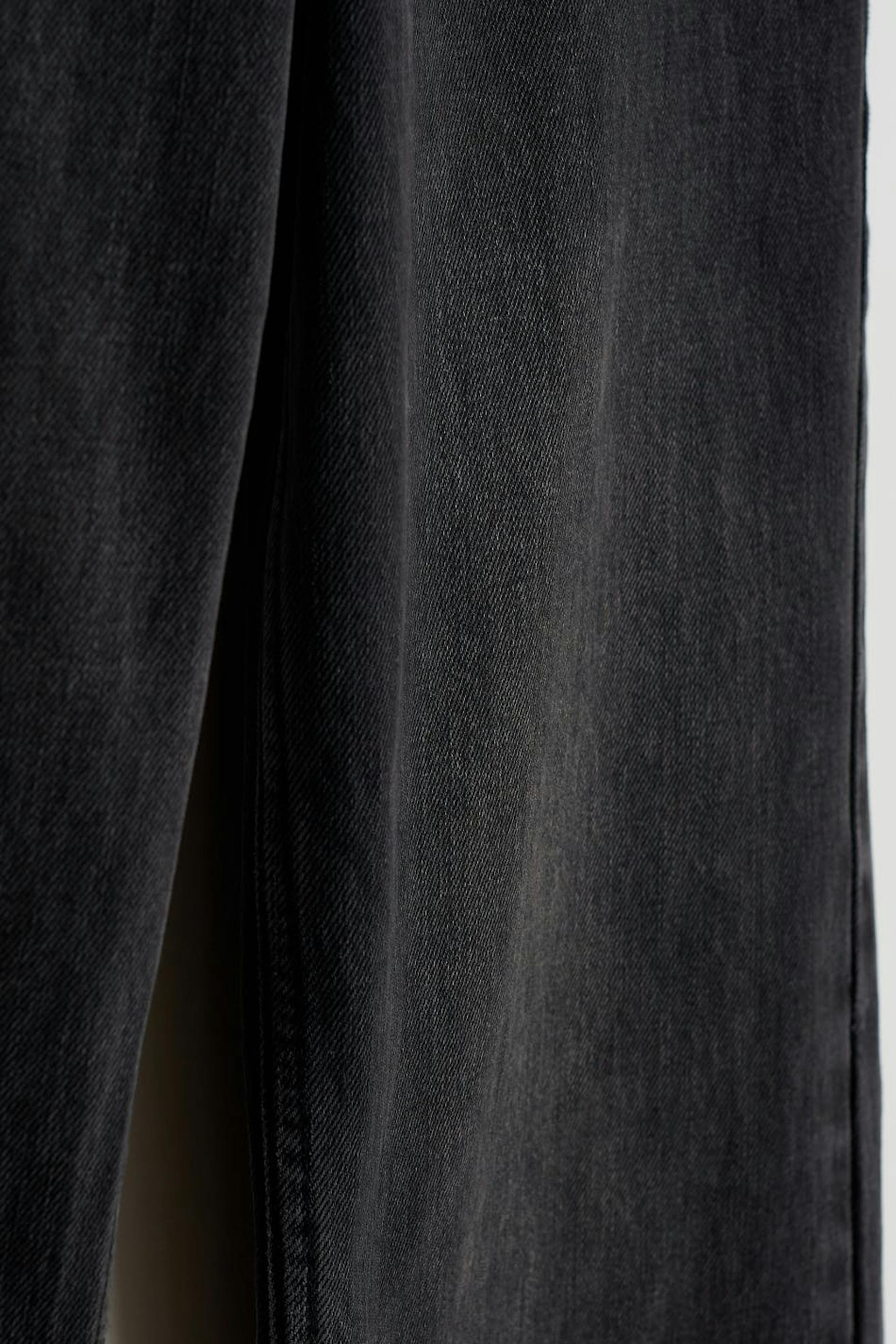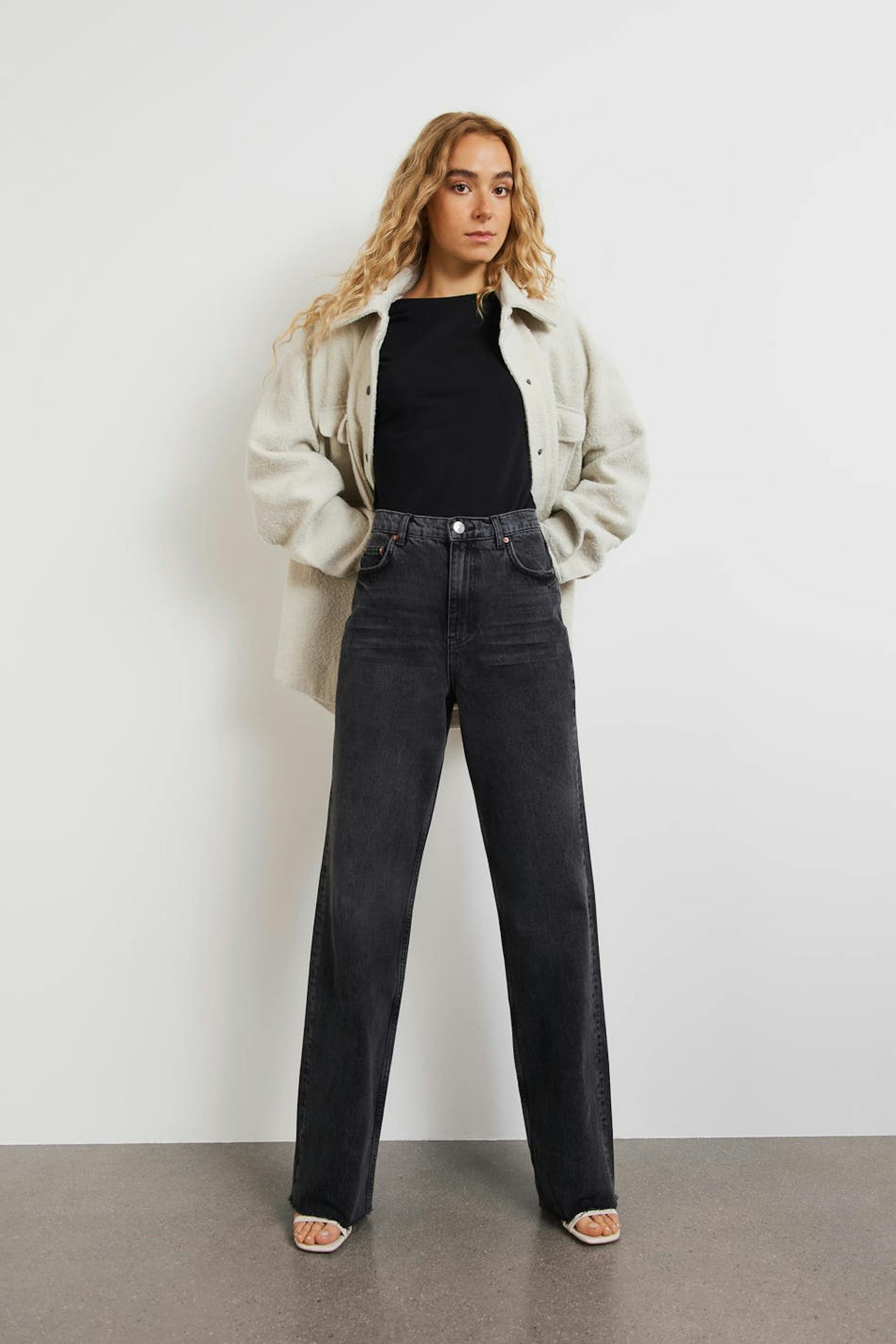 Straight jeans utan stretch med superhög midja. Jeansen är svarta och har raka, vida byxben med fullängd. De har dragkedjegylf och rå kant vid bensluten. Jeansen kan enkelt klippas av till önskad längd. Se gärna vår storleksguide för att hitta din storlek.