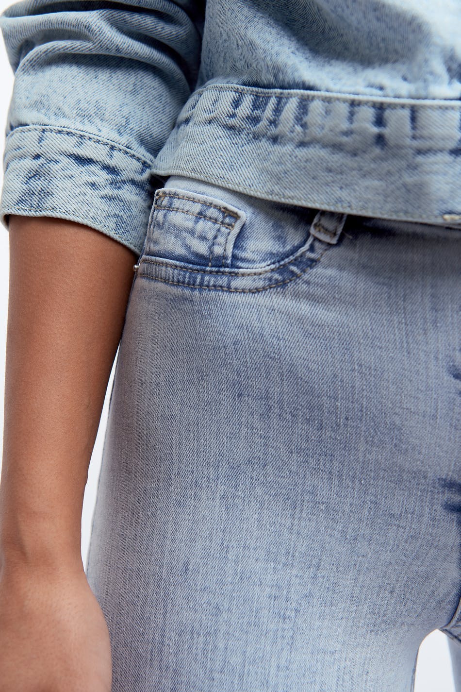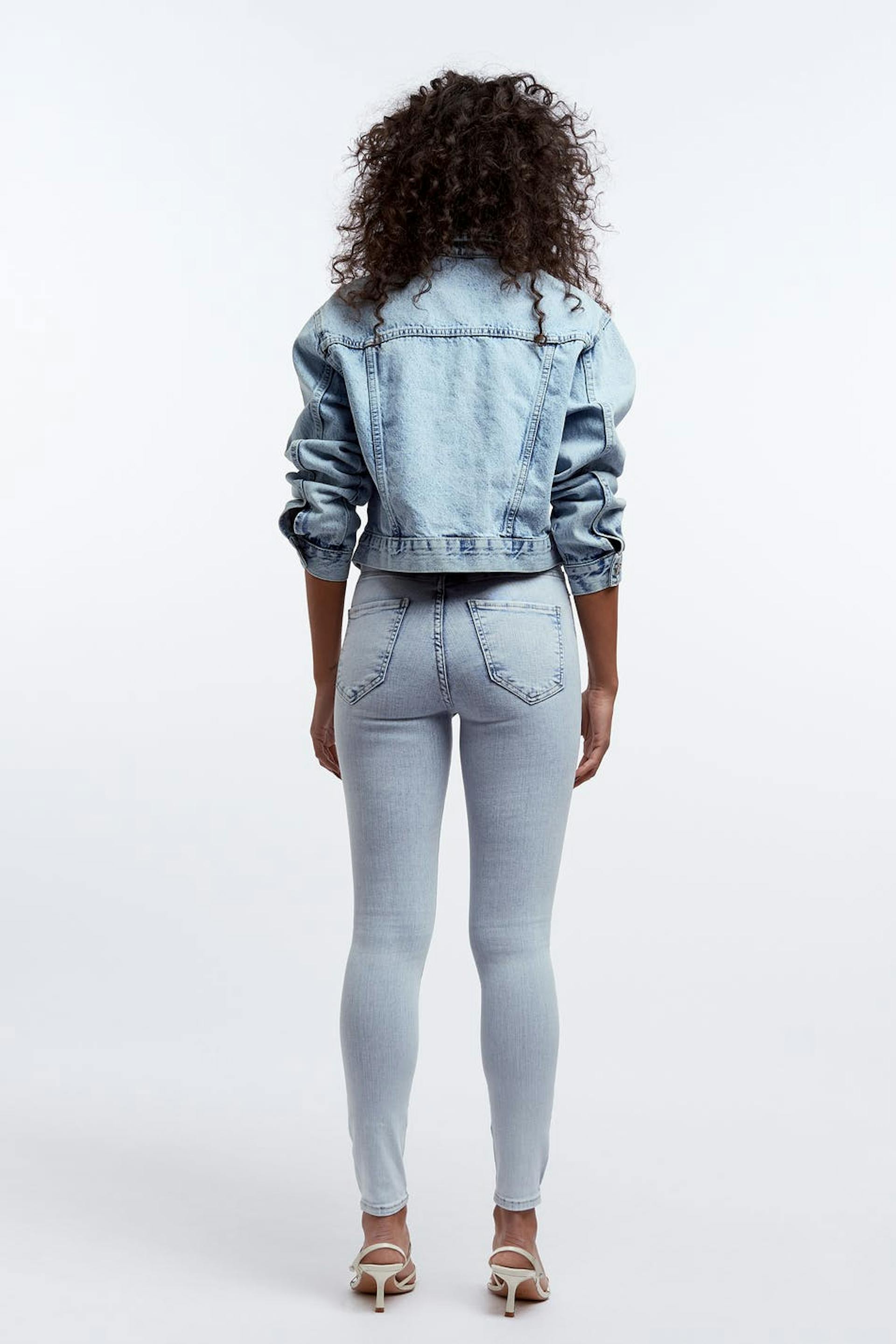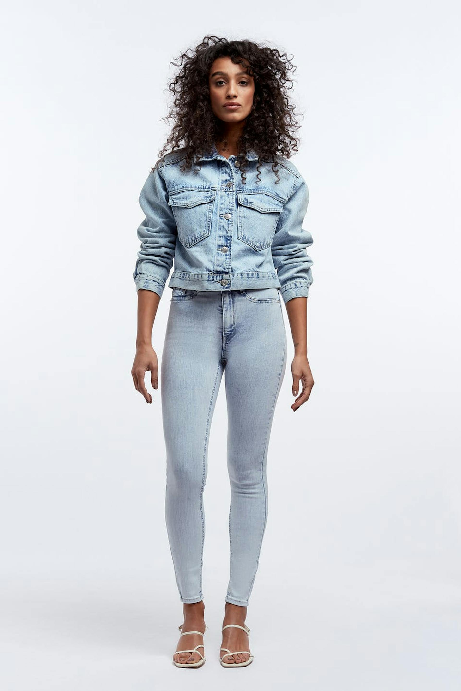 Petite skinny-jeans med en figurnära passform. Skinny-jeansen är ljusblåtvättade, mjuka och bekväma. De har en hög midja, fuskfickor framtill och superstretch. Passar för dig som är 160 cm eller kortare.
