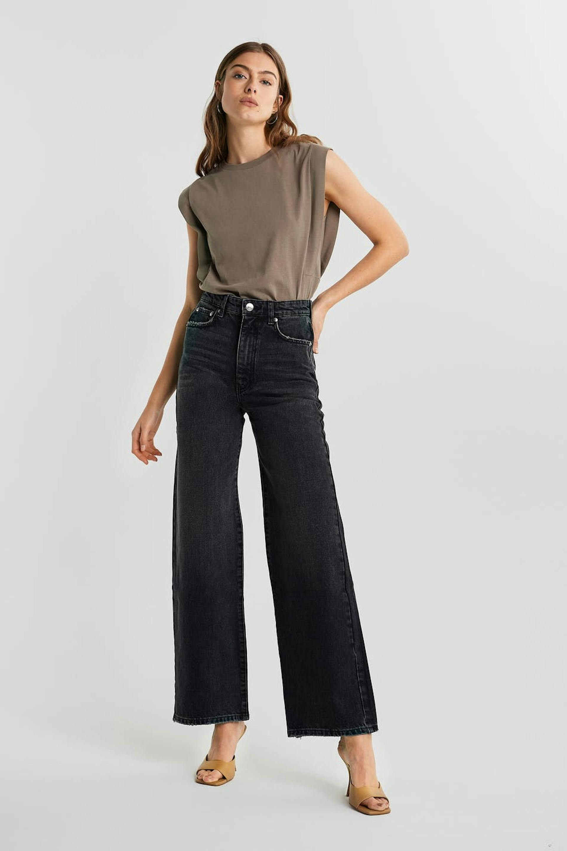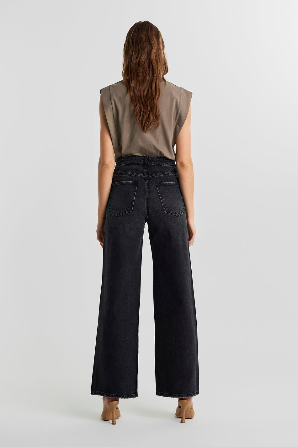 Petite jeans med en normal passform. Jeansen är svarta och utan stretch och har en hög midja. De är gjorda av denim och har vida, korta ben. Passar för dig som är 160 cm eller kortare.