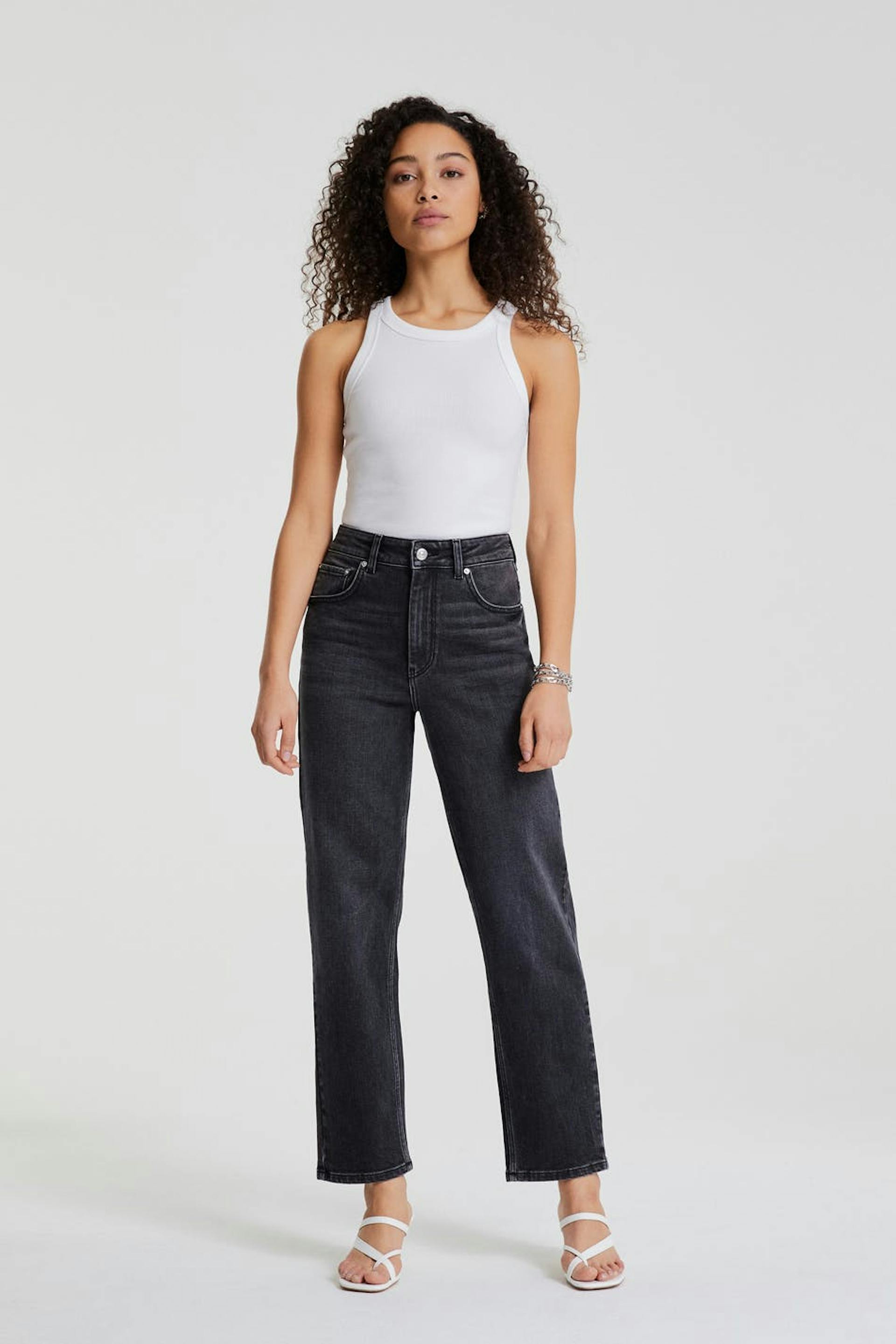 Petite jeans med en hög midja. Jeansen är svarta och har fem fickor. De har komfortstrech och raka byxben med en kortare benlängd. Passar för dig som är 160 cm eller kortare.