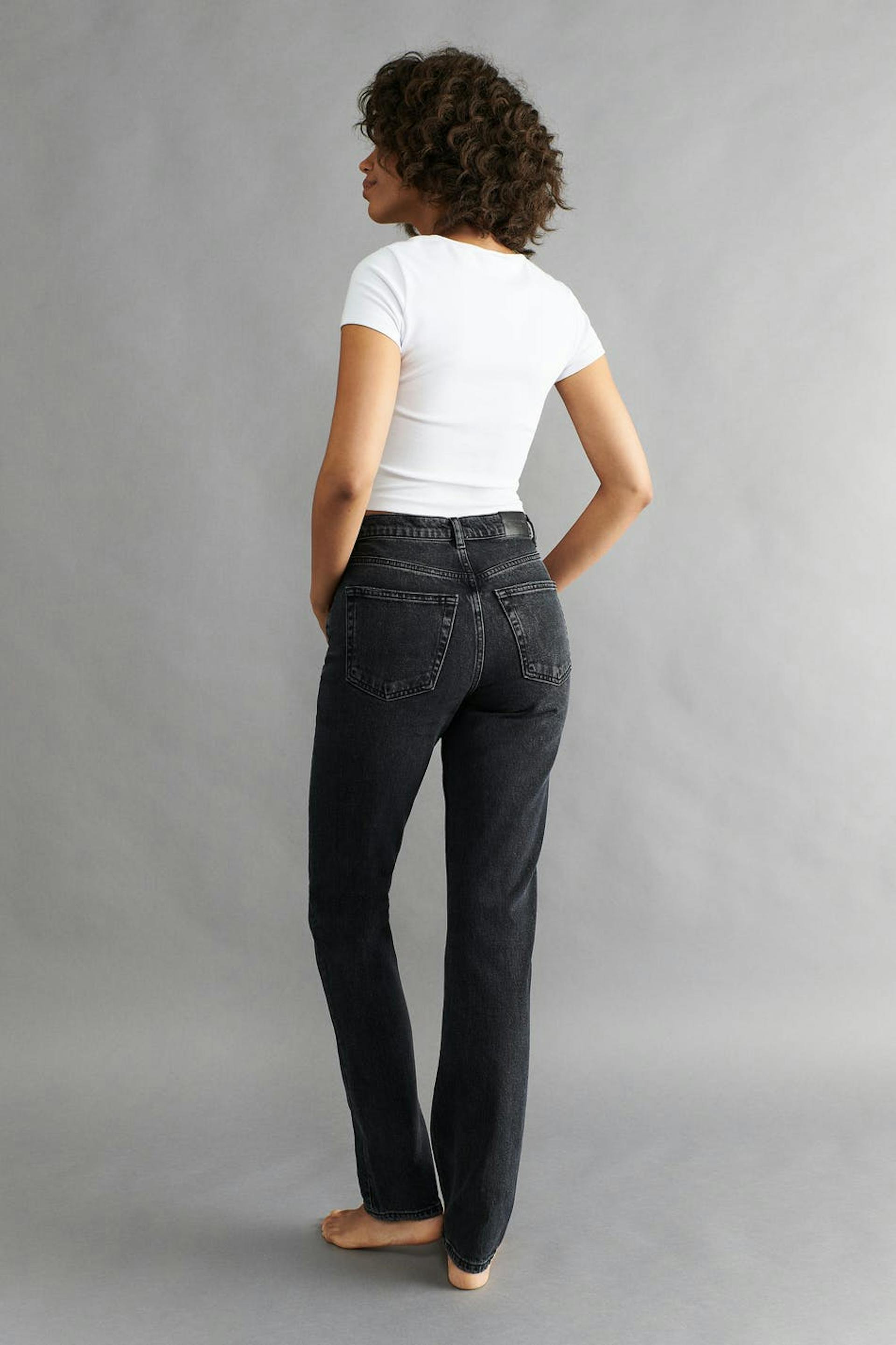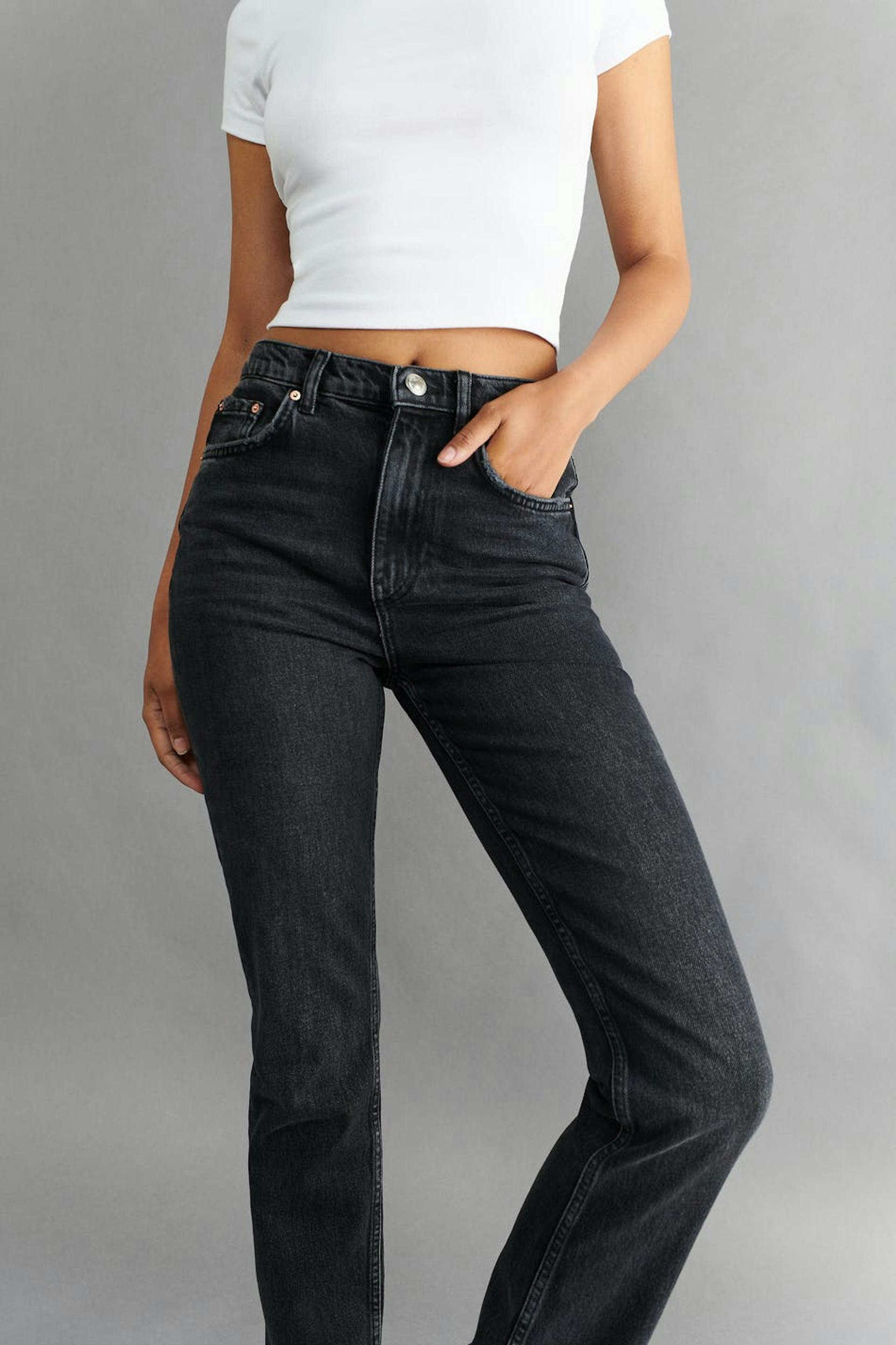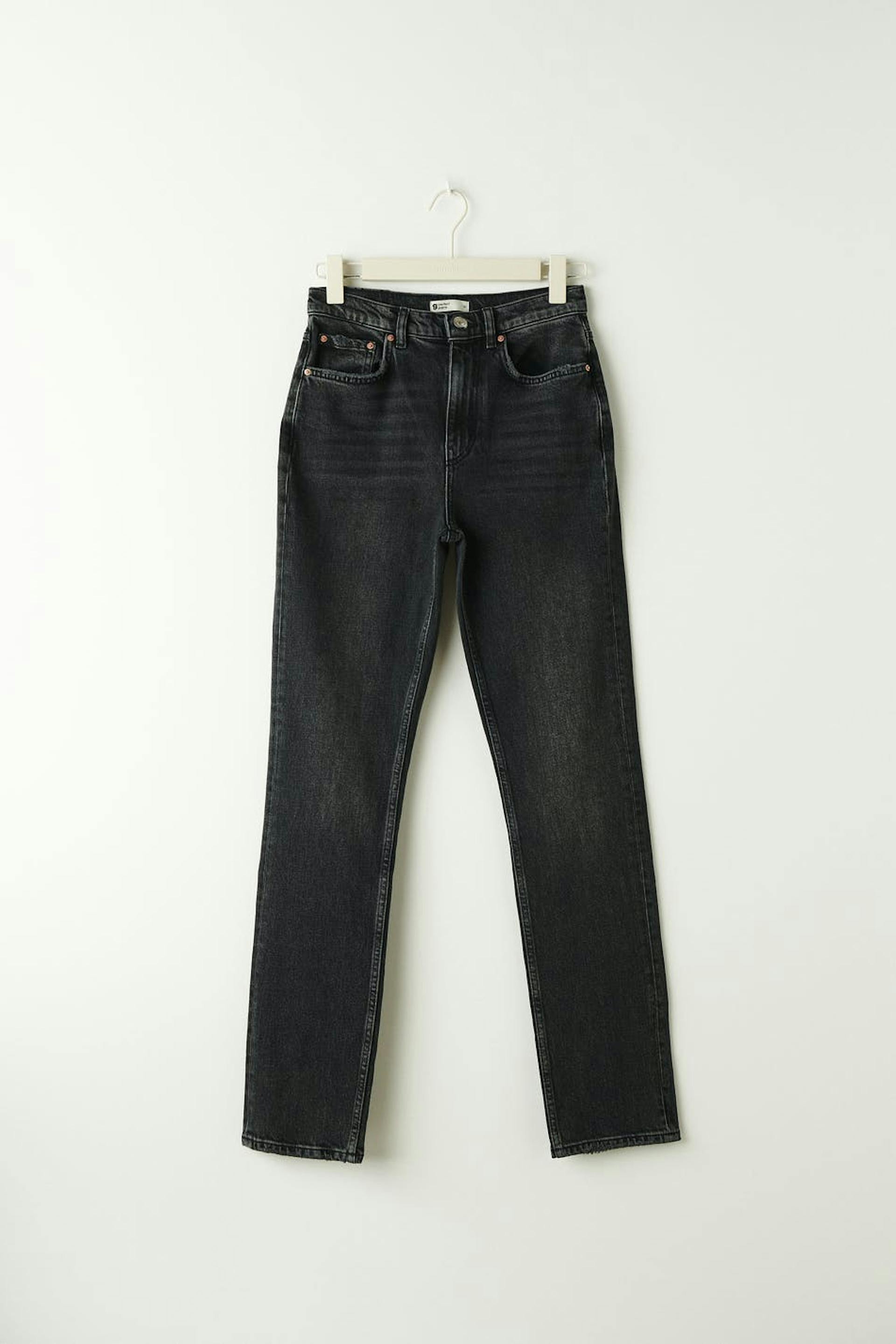 Slim jeans utan stretch med en figurnära passform. Jeansen är svartgråa och har hög midja. De har dragkedjegylf och raka ben med fullängd. Se gärna vår storleksguide för att hitta din storlek.