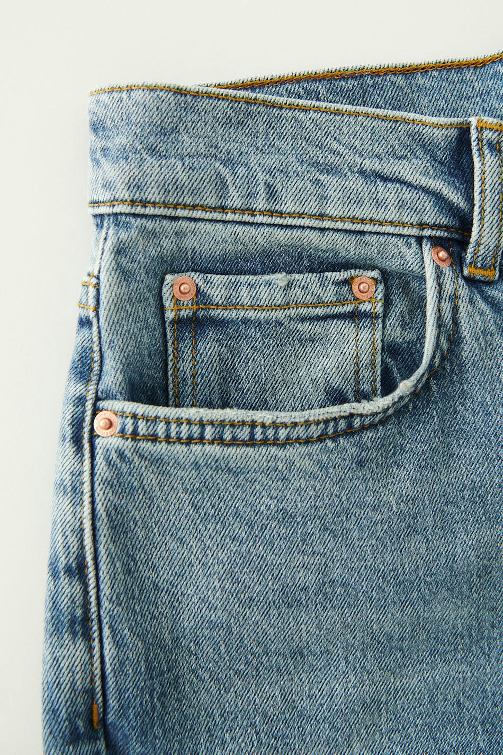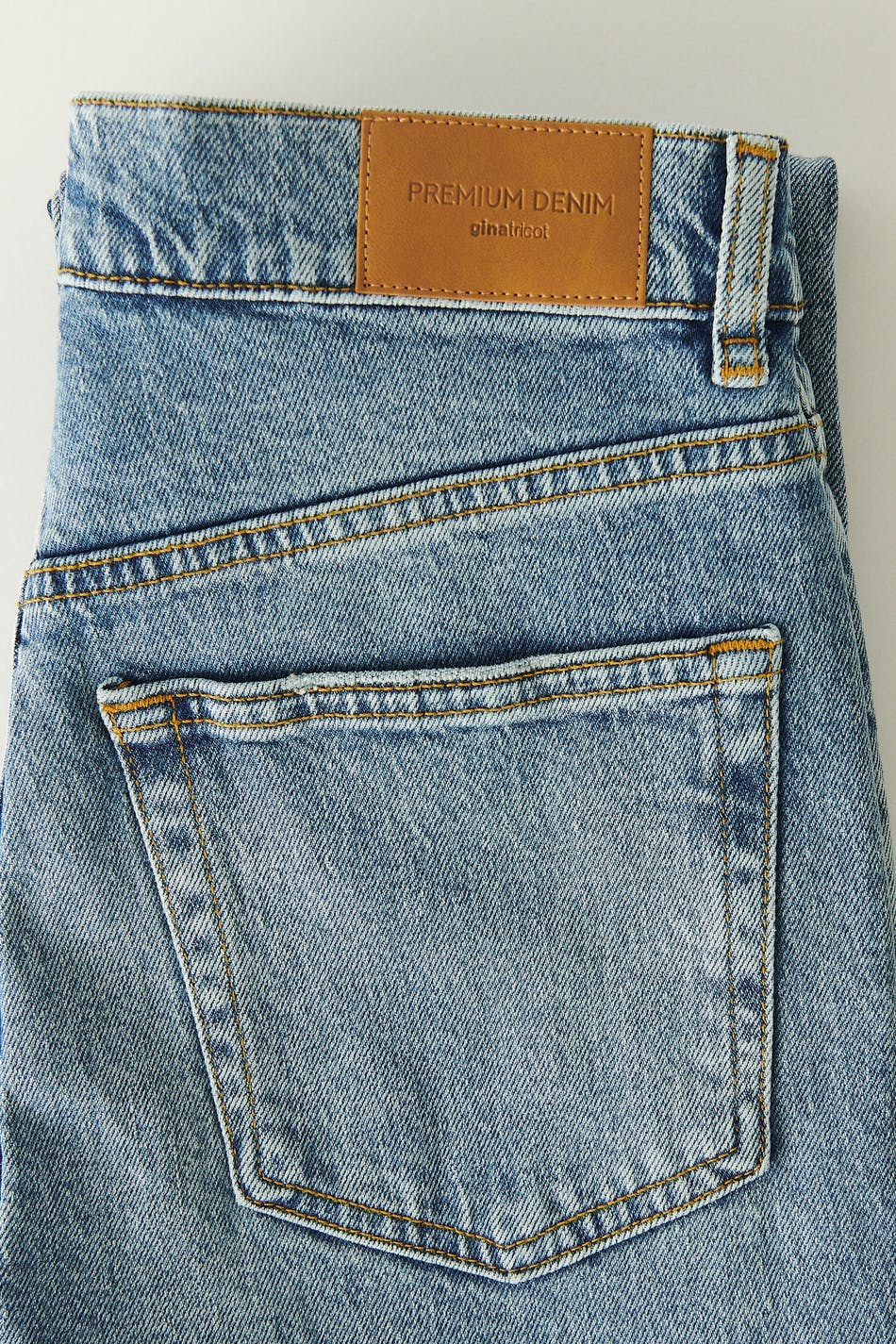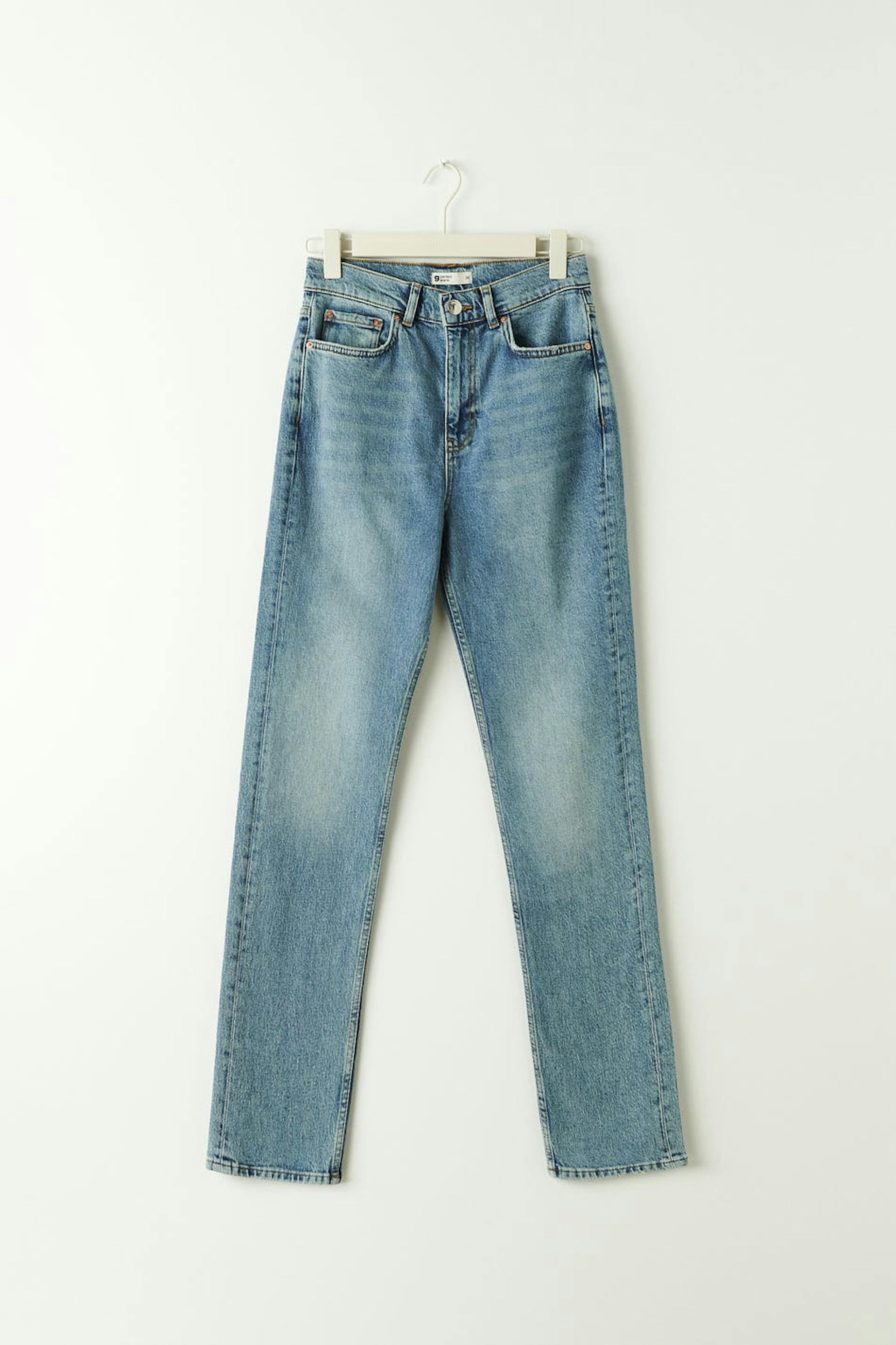 Petite jeans med figurnära passform i denim utan stretch. Jeansen är blåa och har en hög midja. De har dragkedjegylf och raka ben med fullängd. Passar för dig som är 160 cm eller kortare. Se gärna vår storleksguide för att hitta din storlek.