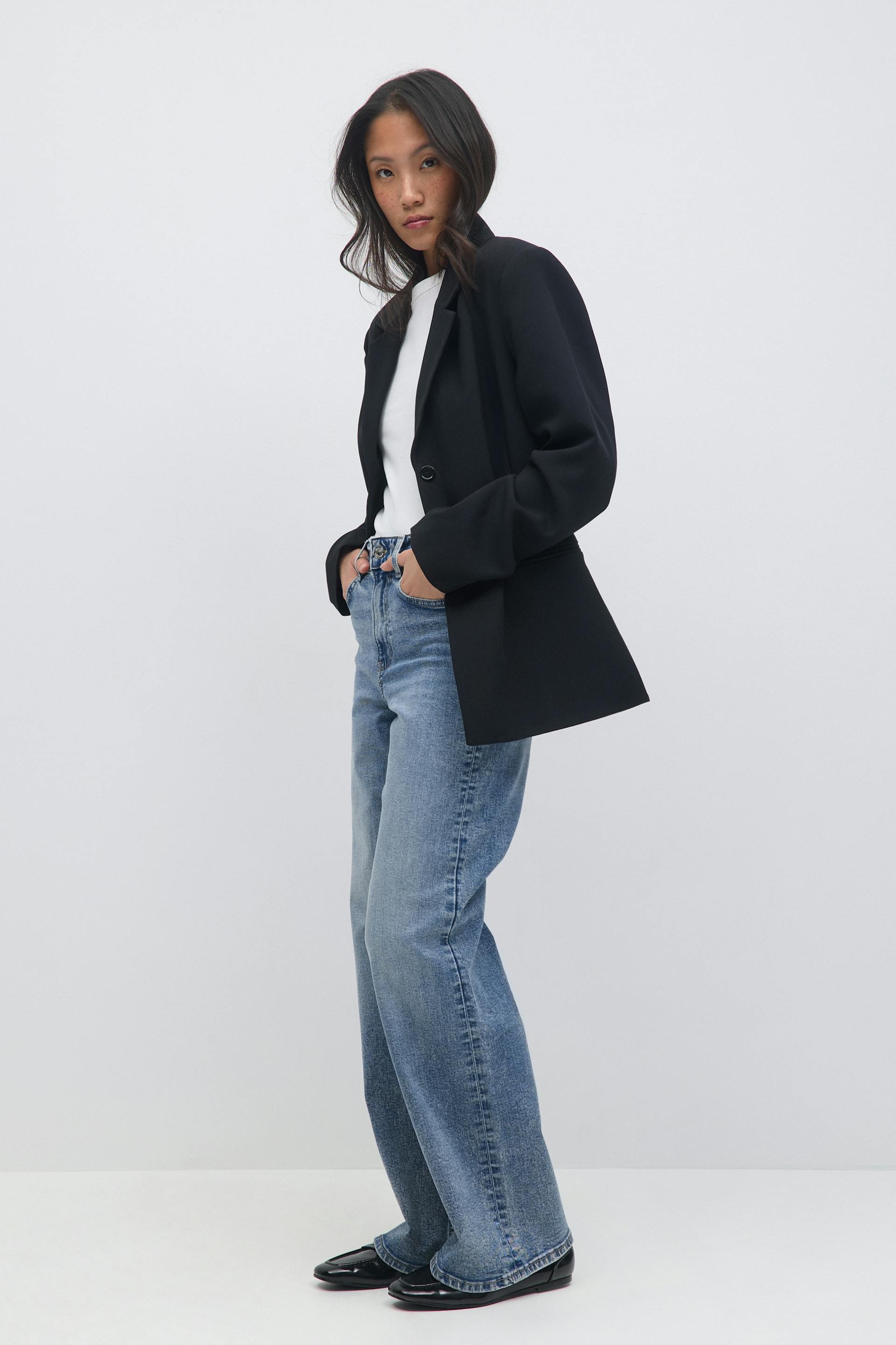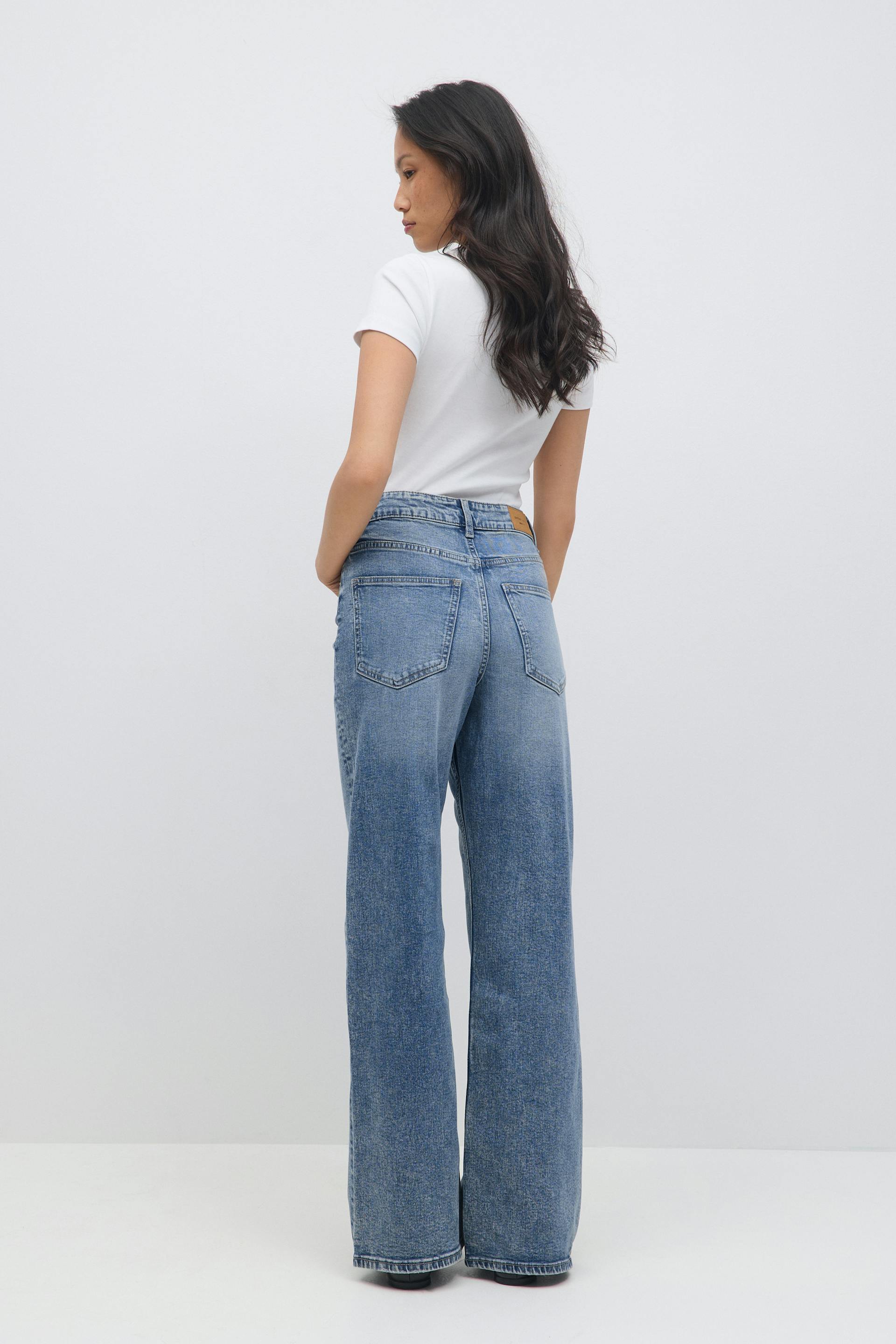 Vida jeans med hög midja. Jeansen är blåa och har stretchig kvalitet. De har dragkedjegylf och fickor fram och bak. Se gärna vår storleksguide för att hitta din storlek.