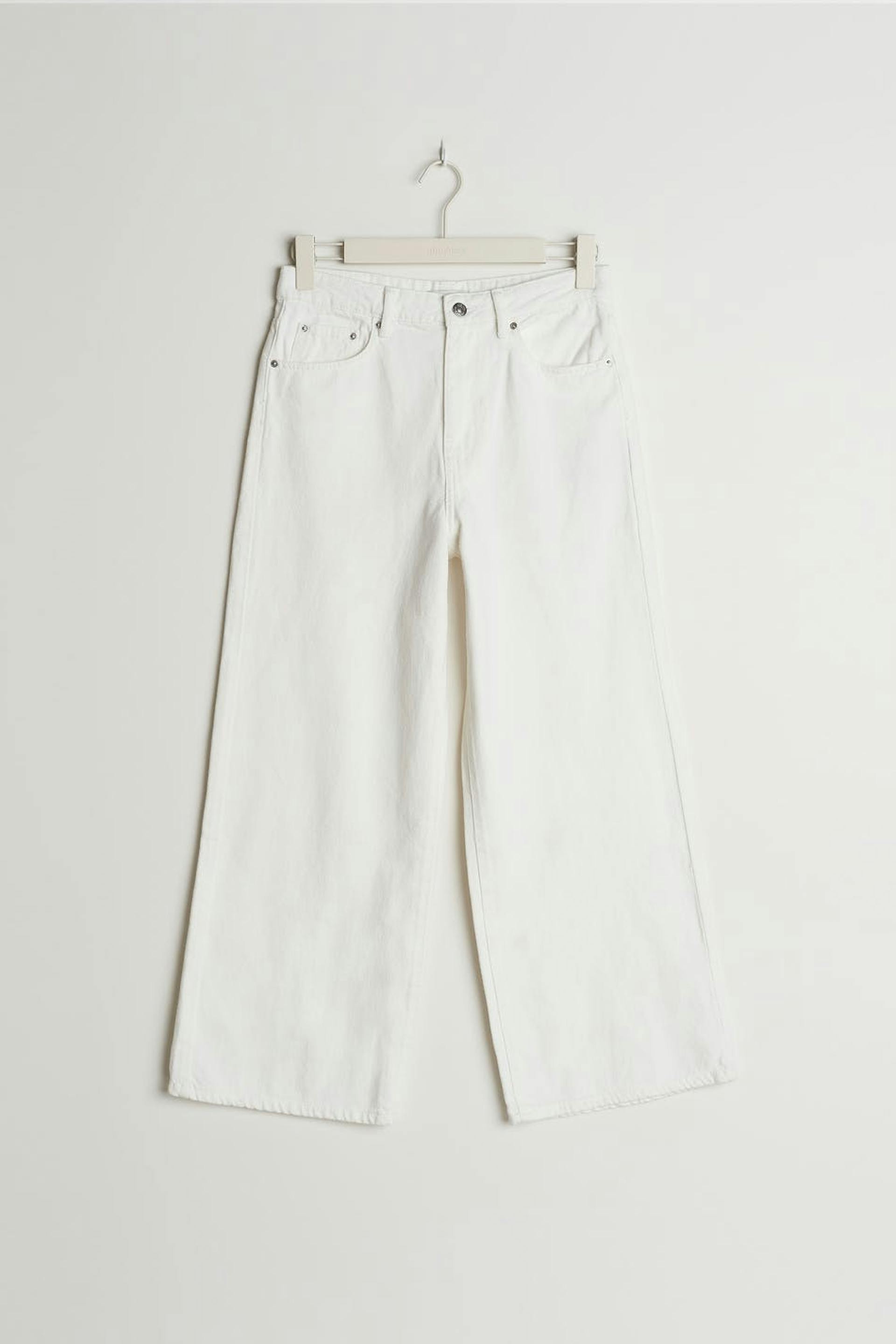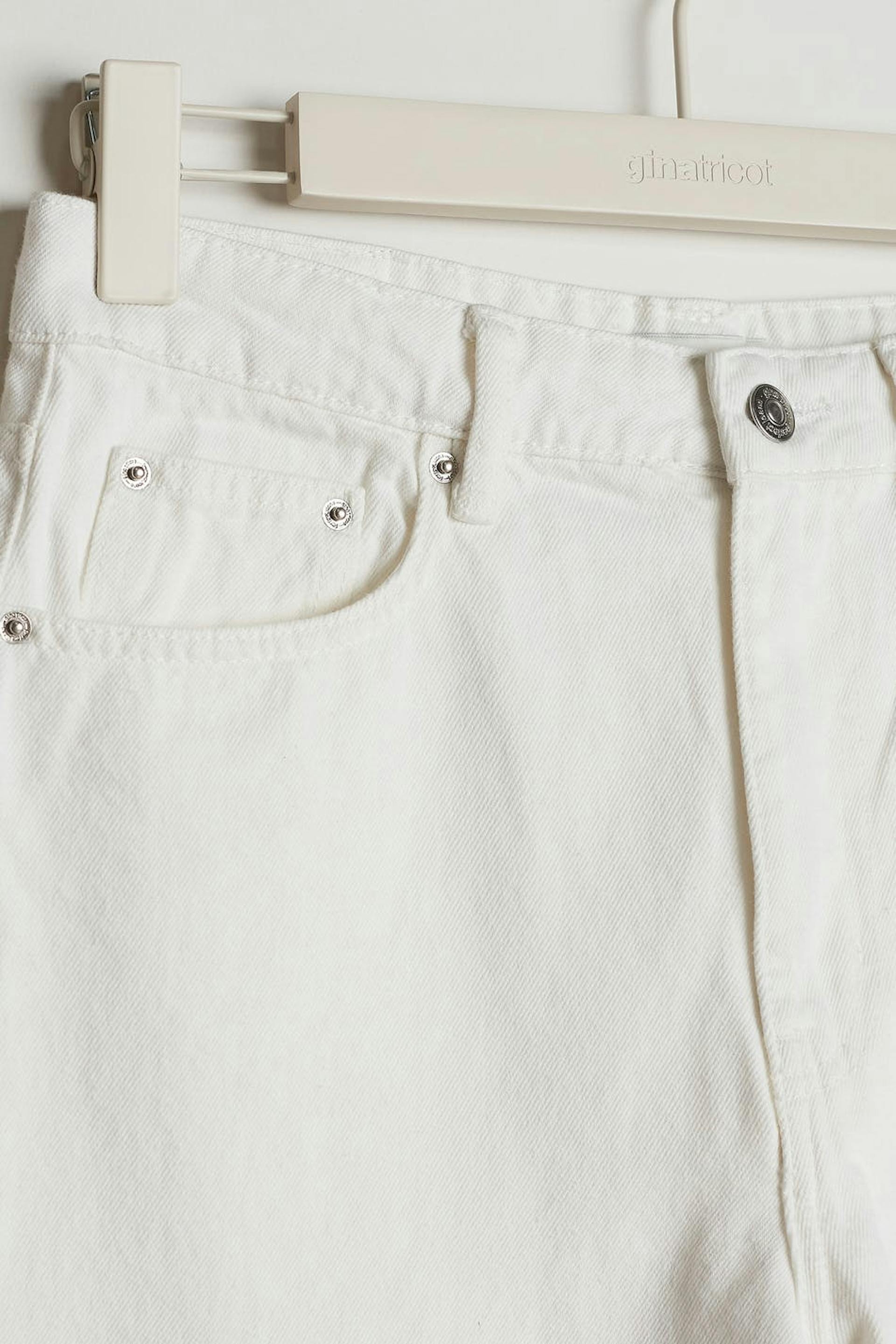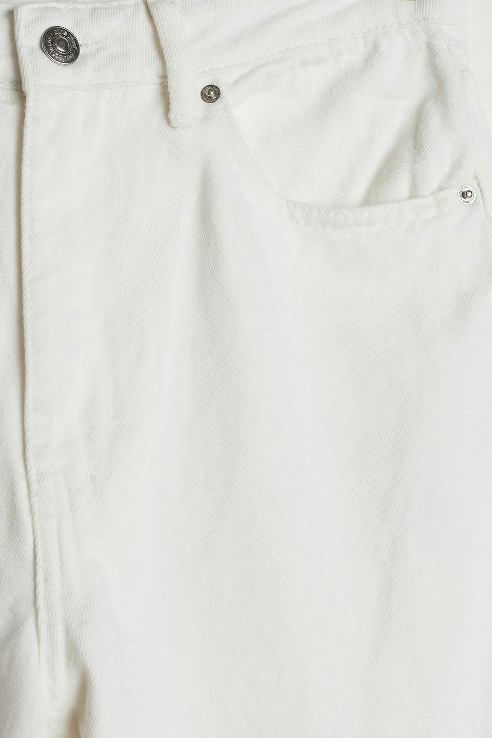 Petite jeans med hög midja i denim utan stretch. Jeansen är vita och har en dragkedjegylf. De har vida ben med normal längd och fickor fram och bak. Passar för dig som är 160 cm eller kortare. Se gärna vår storleksguide för att hitta din storlek.