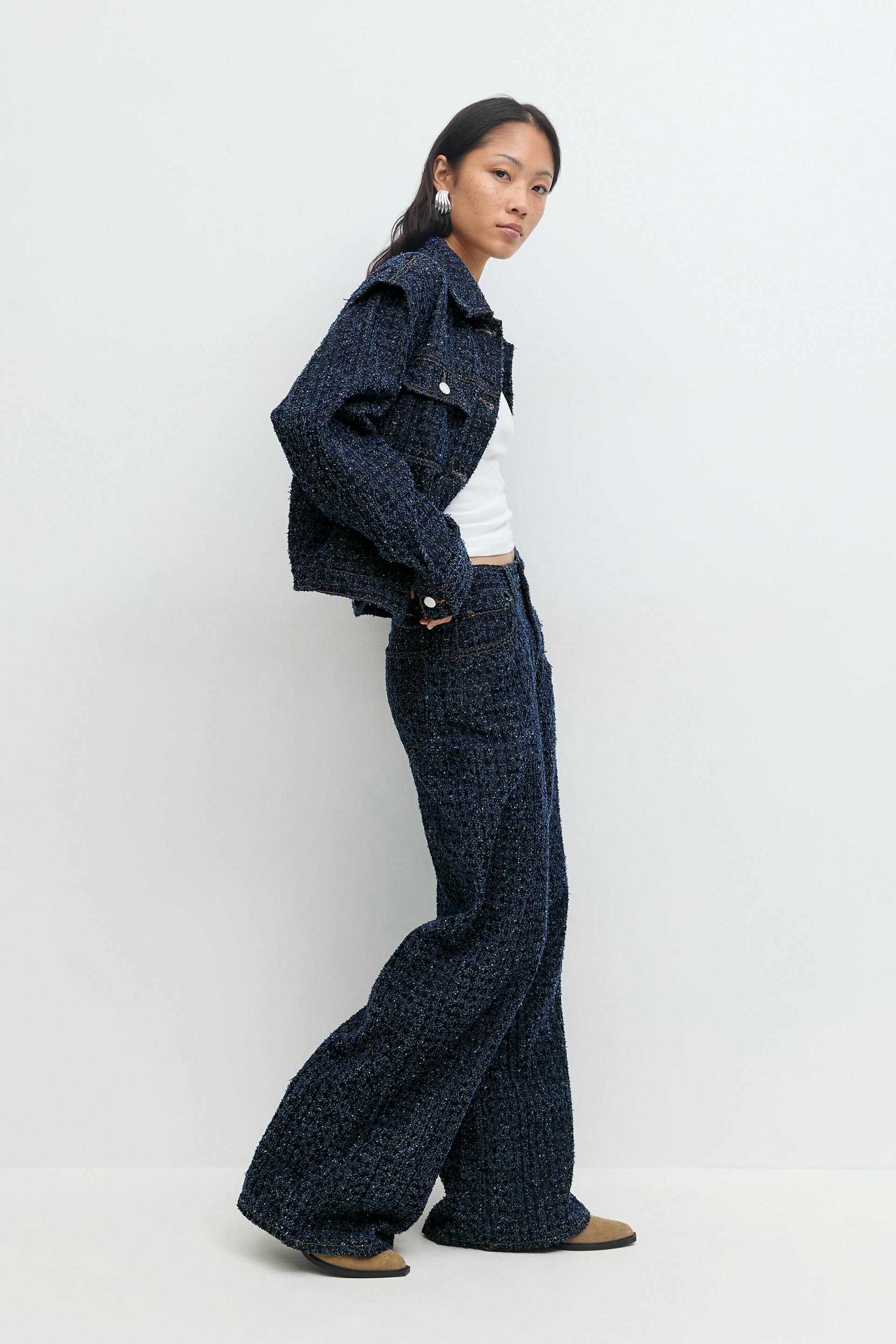 Tweed wide jeans