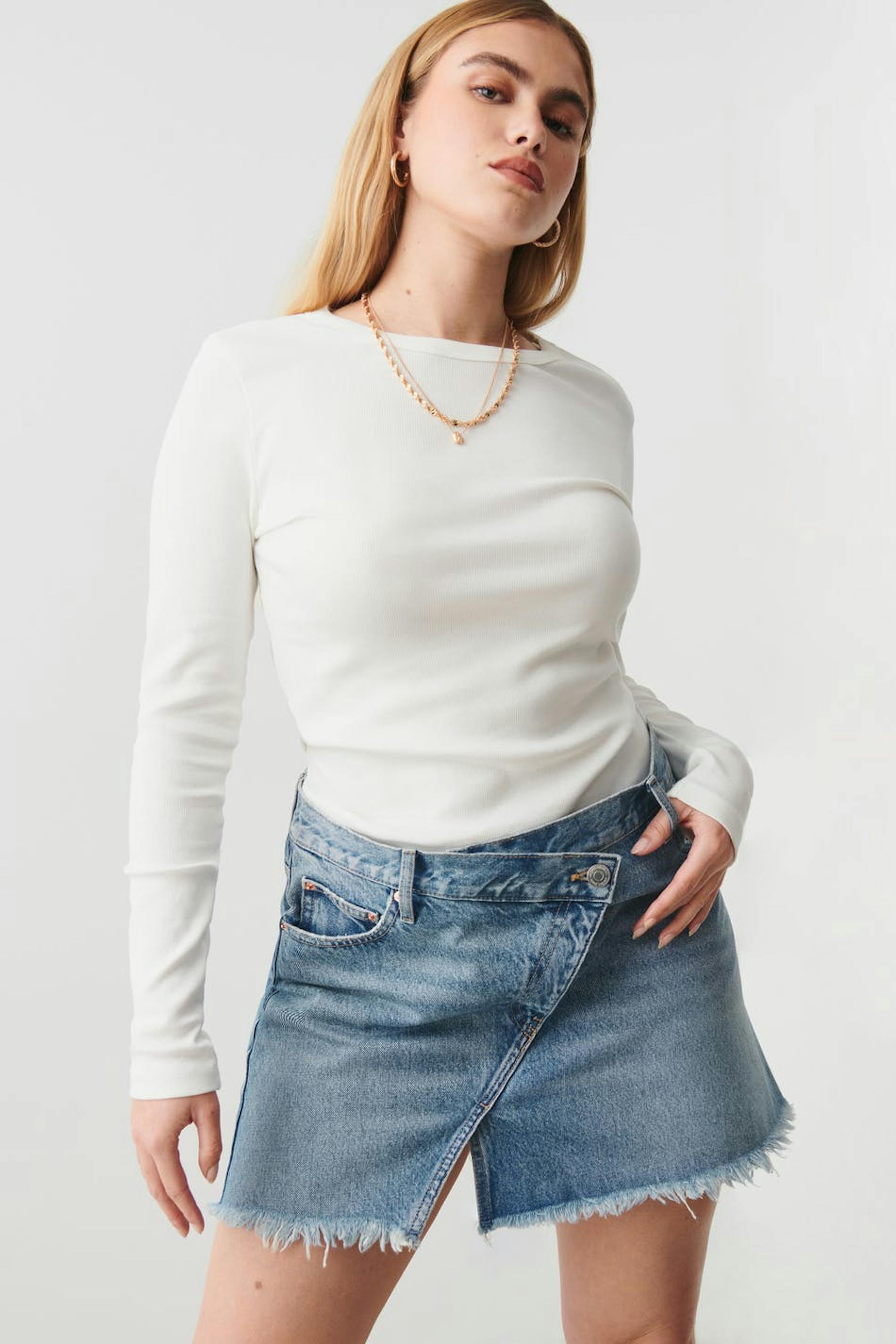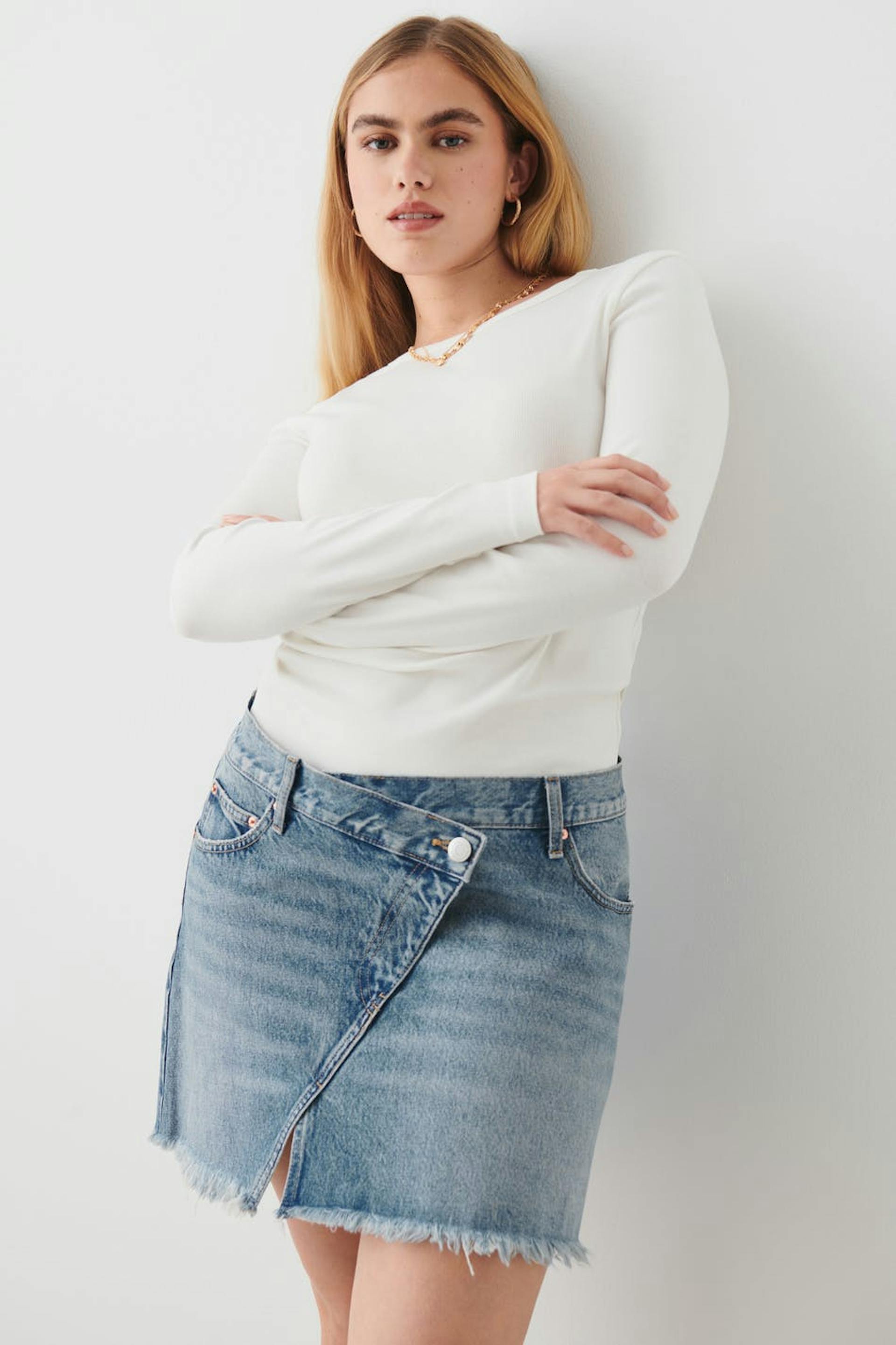 Wrap denim skirt