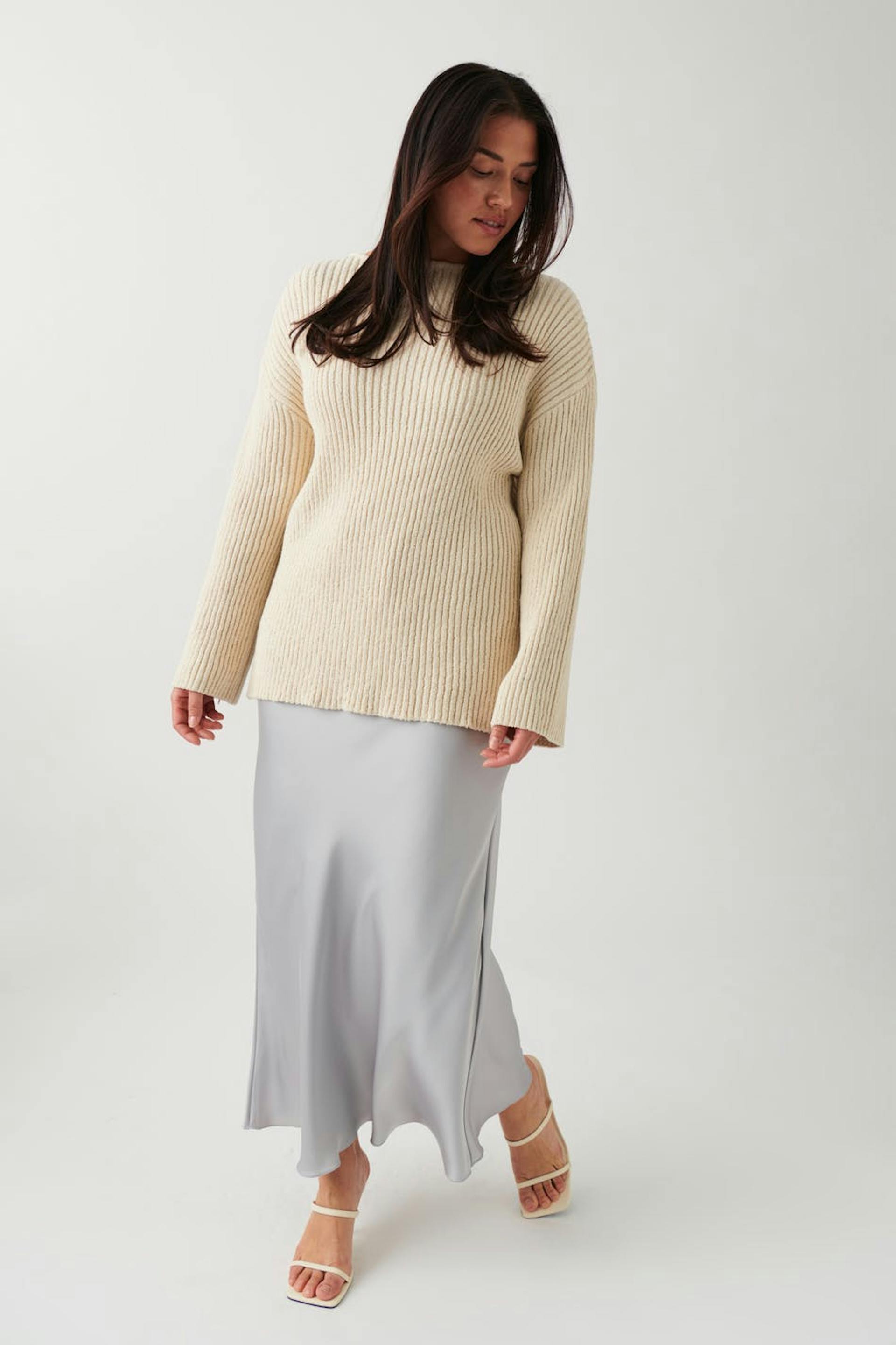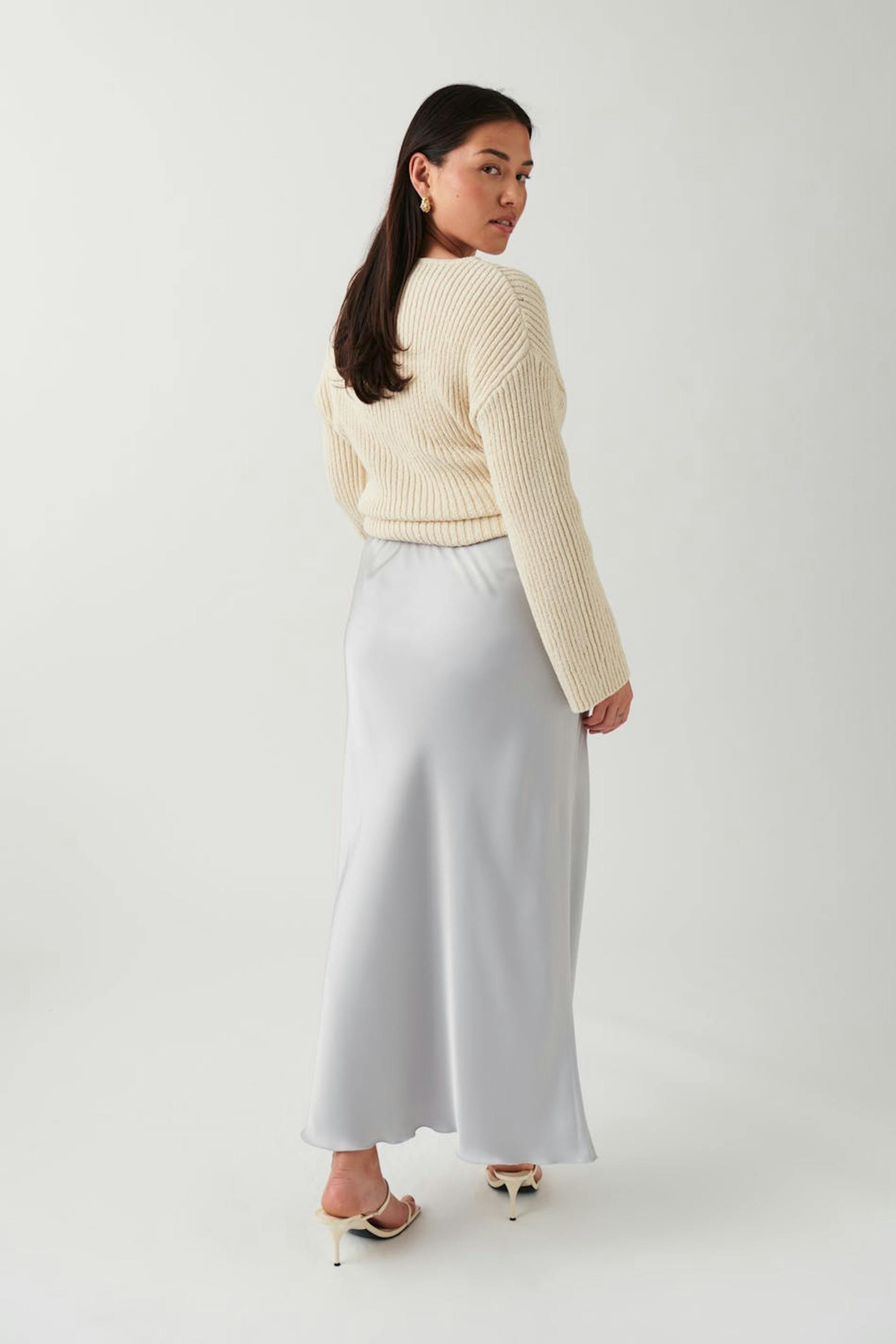 Satin midi drawstring skirt