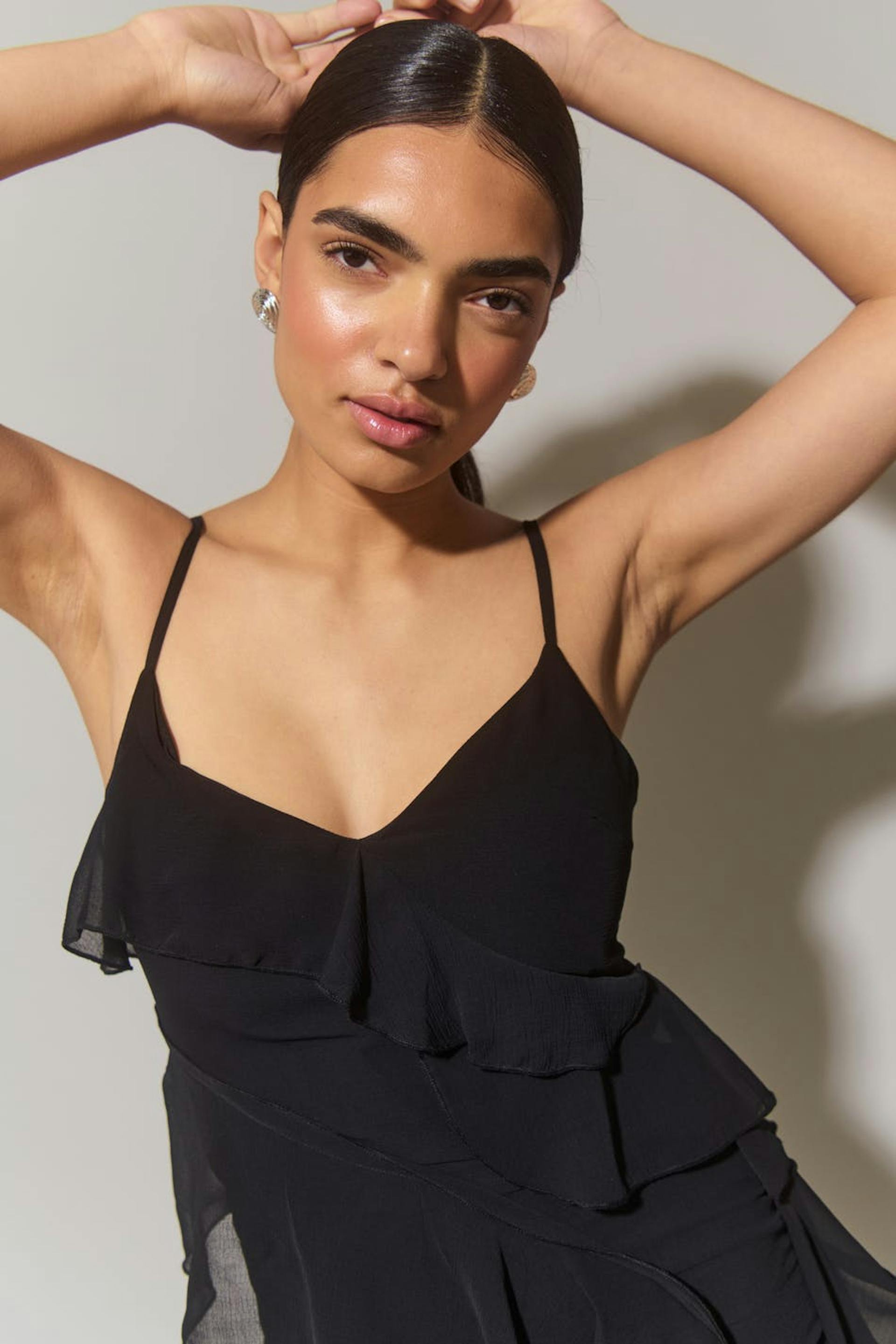 frill chiffon maxi dress