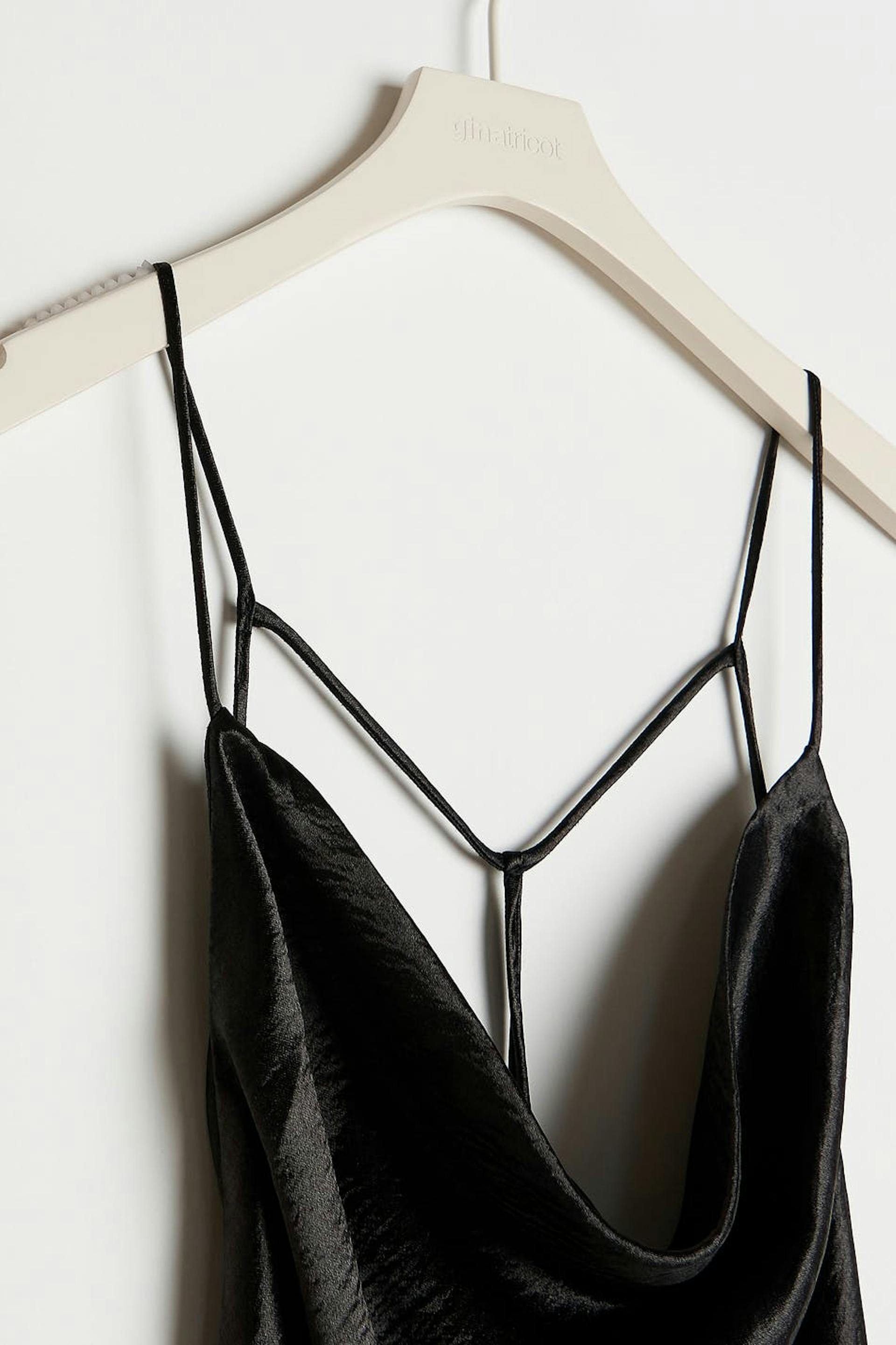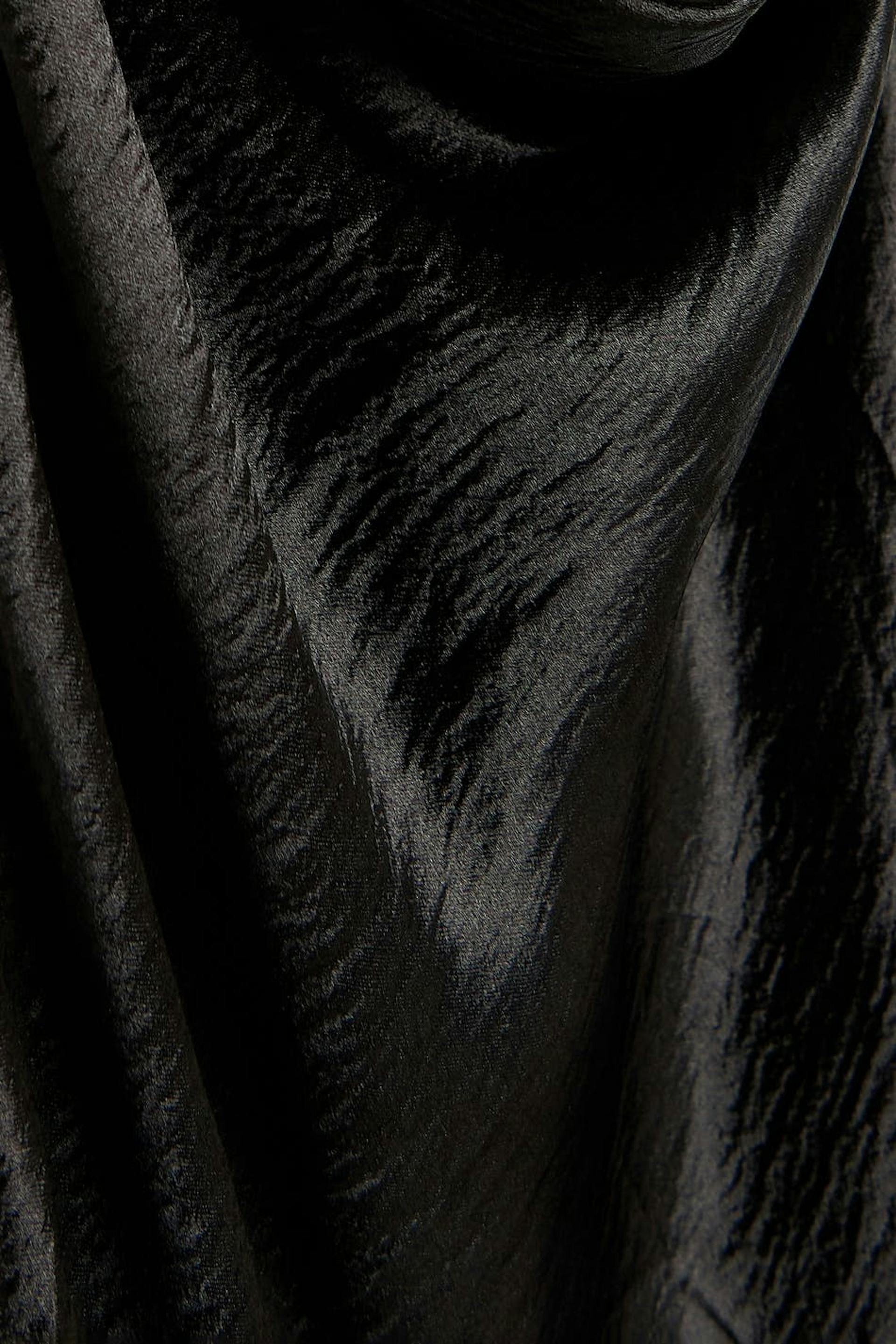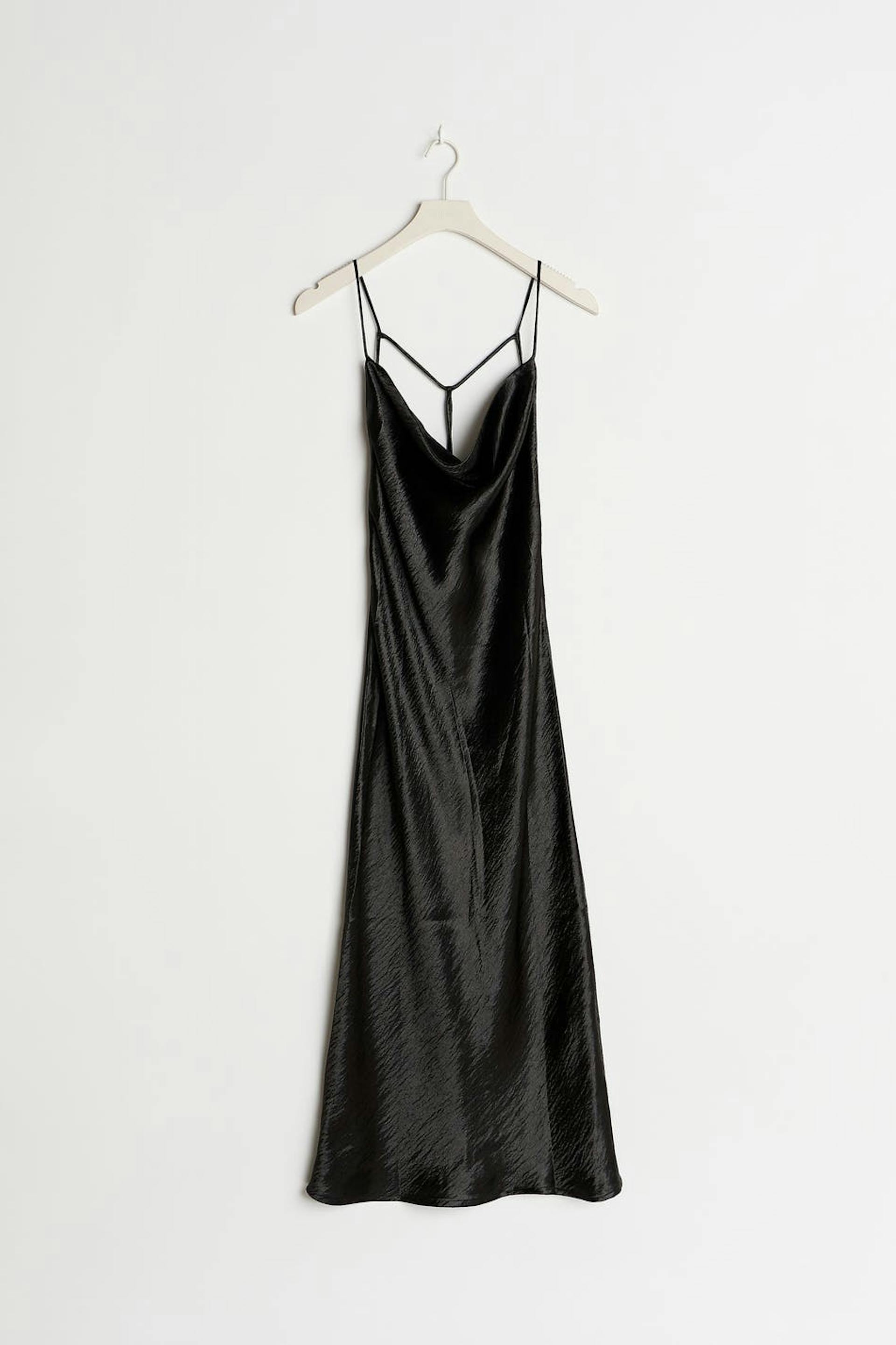 Slipklänning i satin med draperad halsringning. Slipklänningen är perfekt för festen och svart och har en midilängd. Den har en öppen rygg och tunna axelband med dekorativ snörning i ryggen.