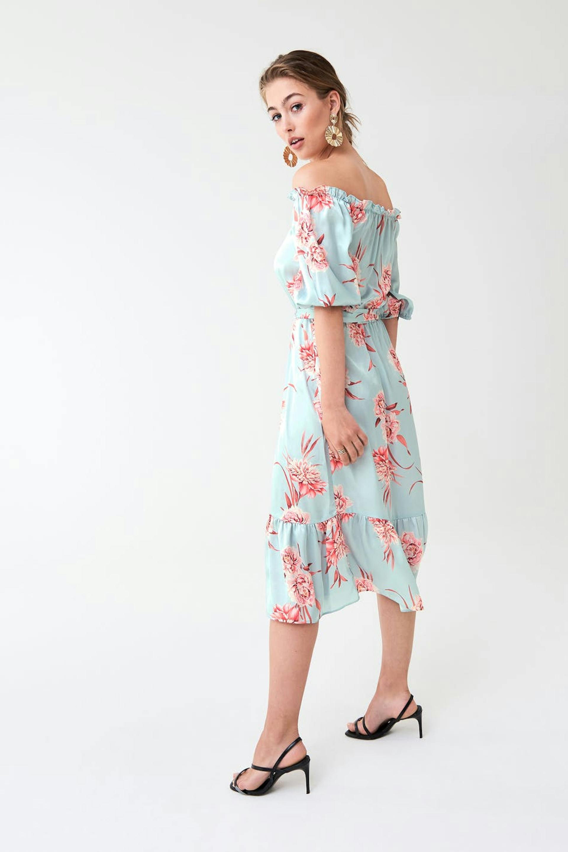 Sandra satin off shoulder dress