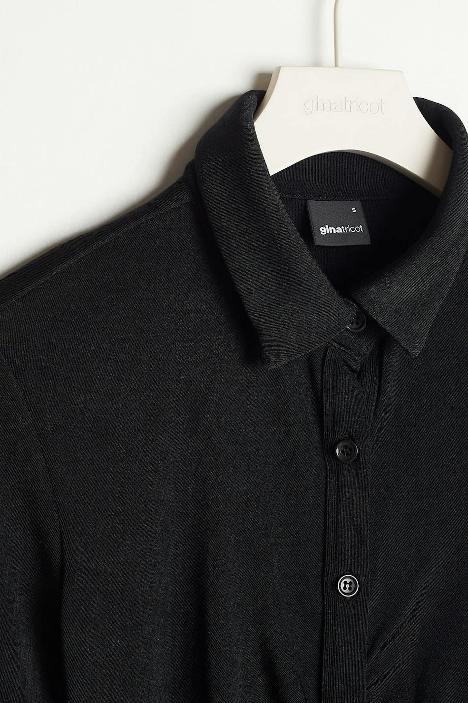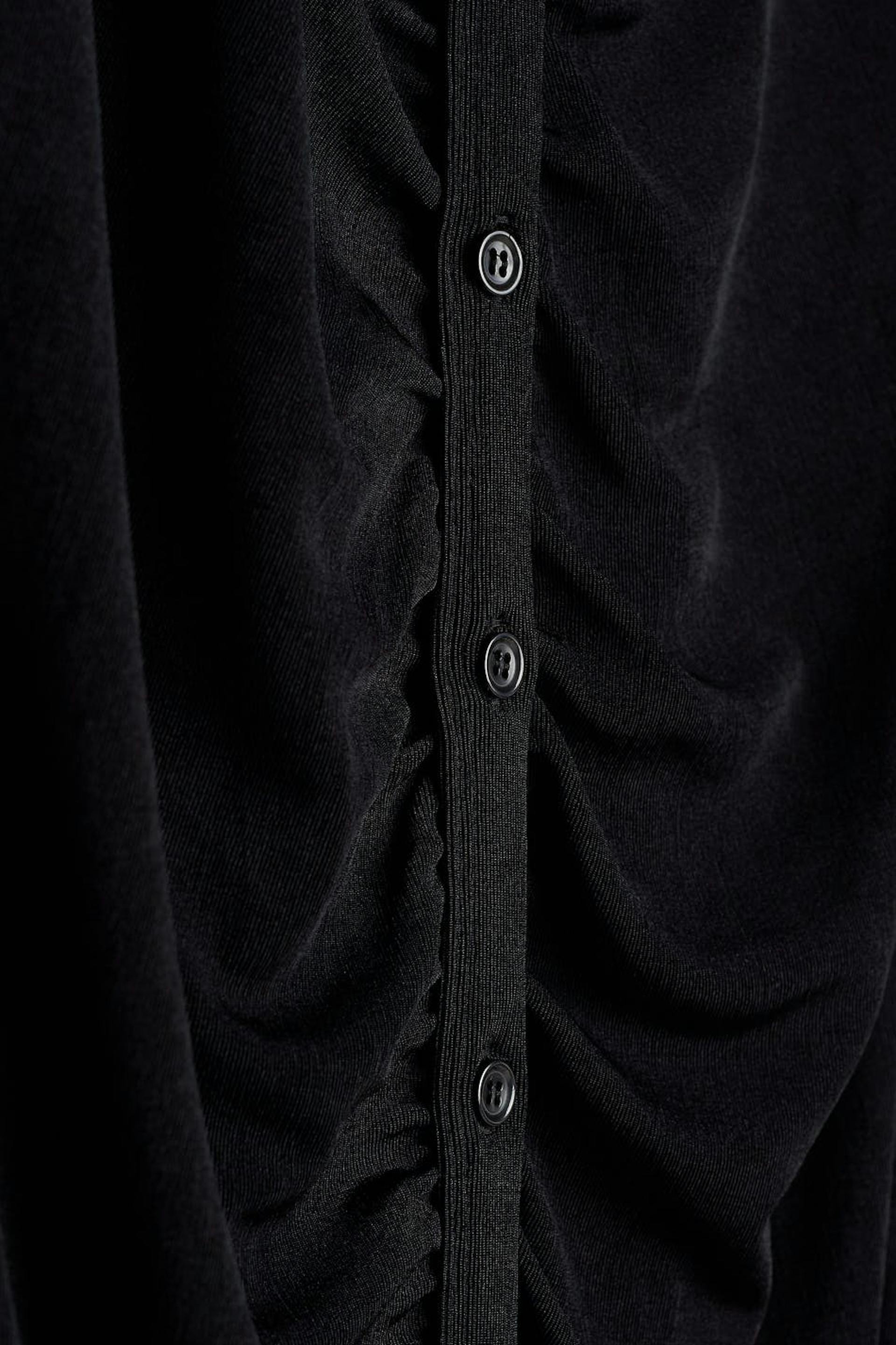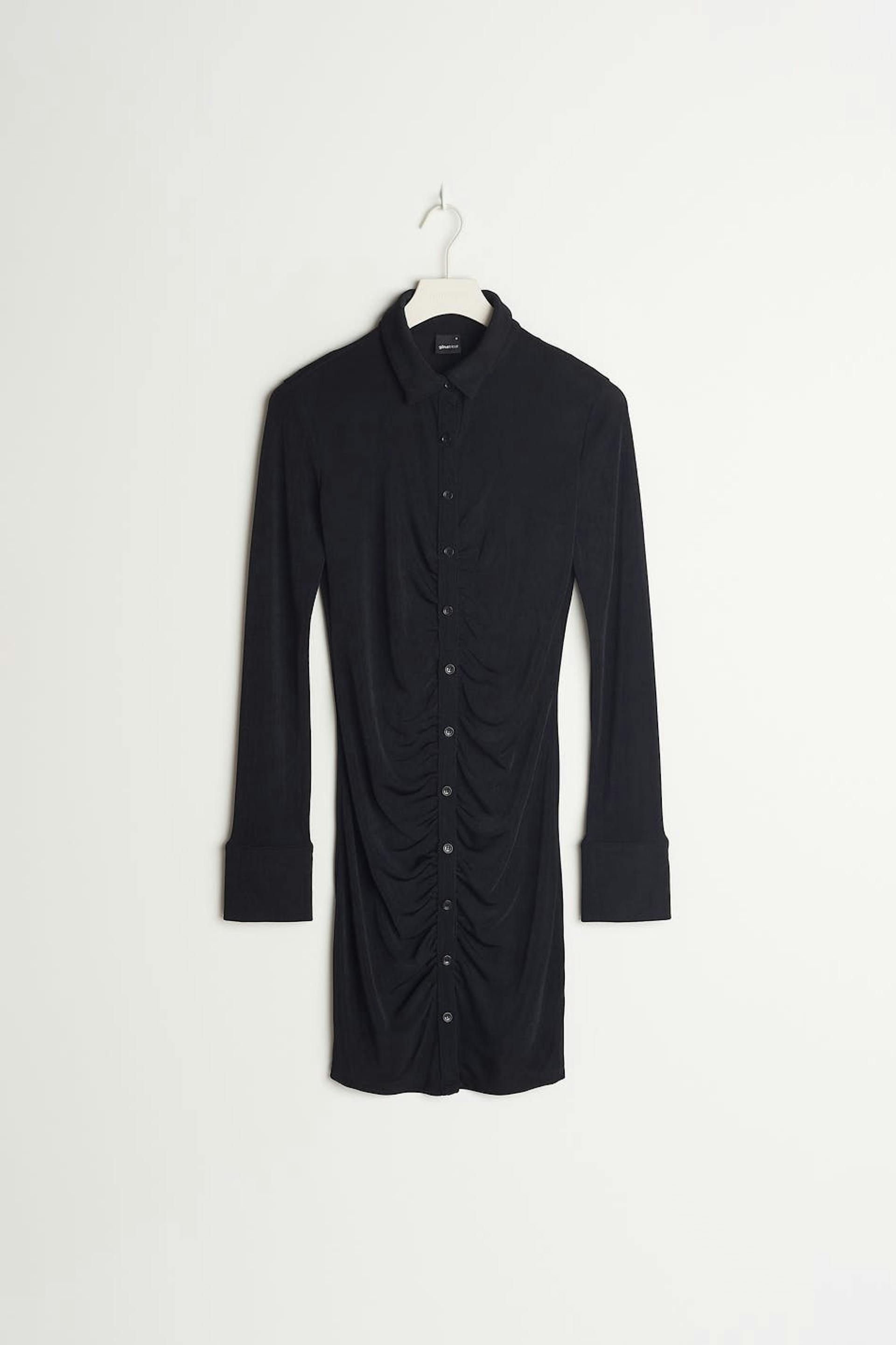 Kort skjortklänning med rynkade detaljer framtill. Klänningen är perfekt för festen, svart och långärmad. Den har en krage och knappar ner längs framsidan.