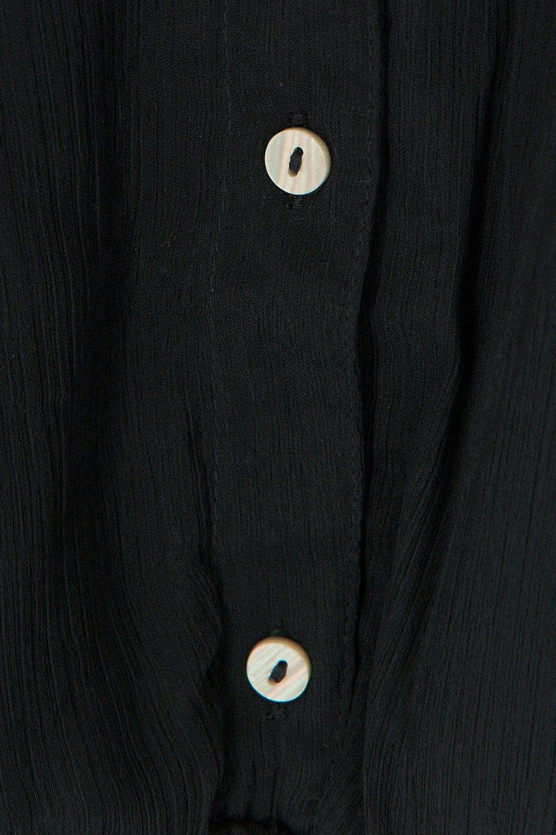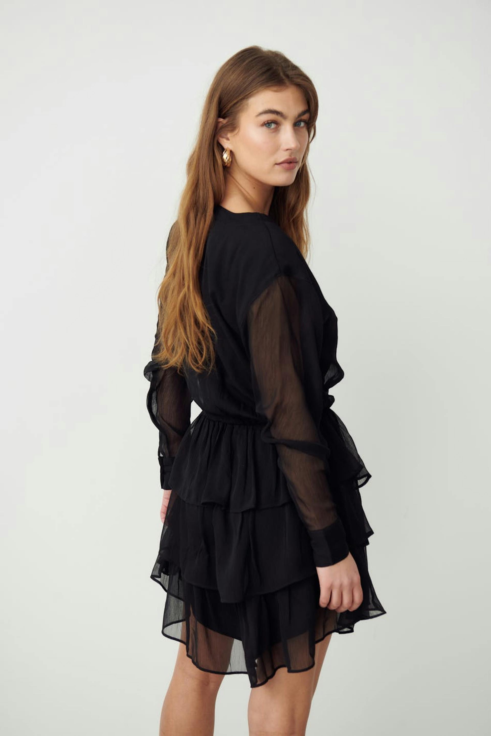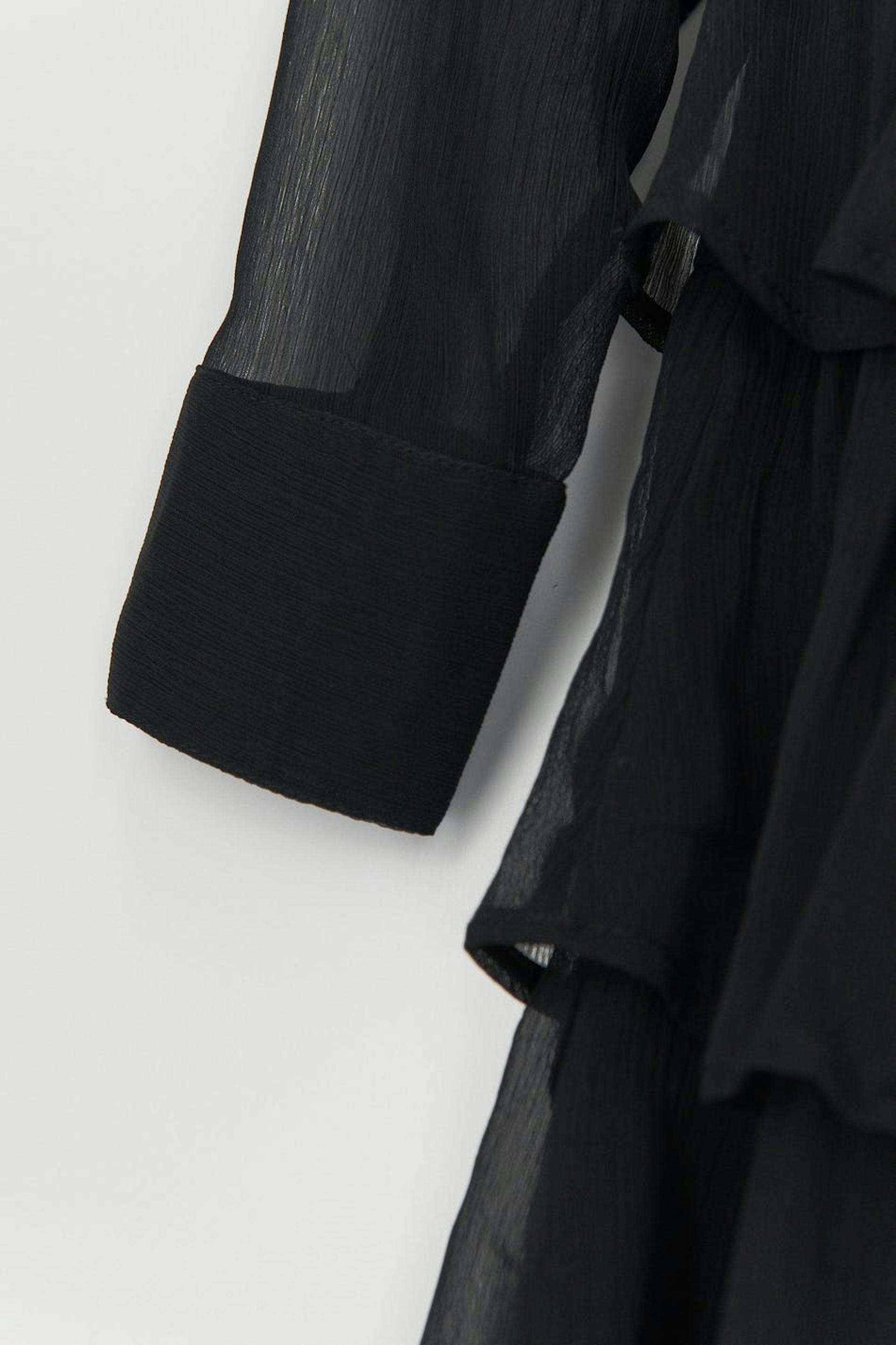 Skir miniklänning i chiffong med avslappnad passform. Klänningen är svart och har volanger nedtill. Den har knäppning fram, v-ringning, långa ärmar och resår i midjan.