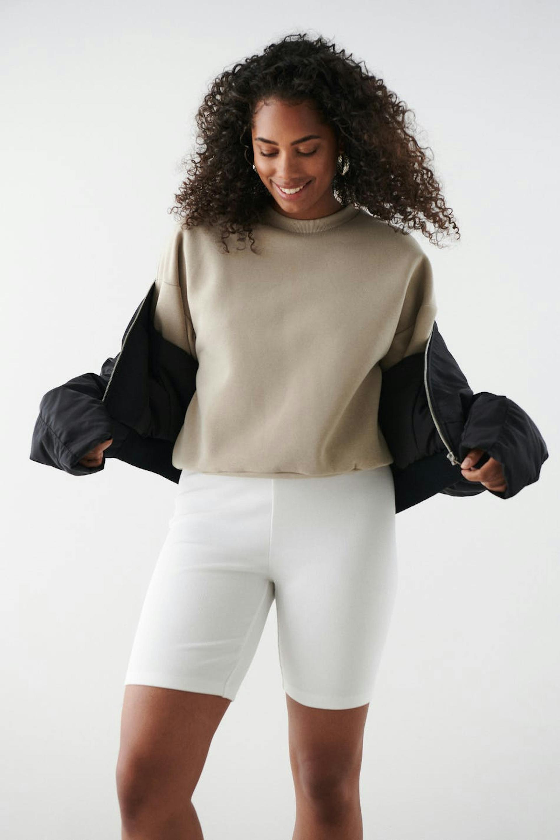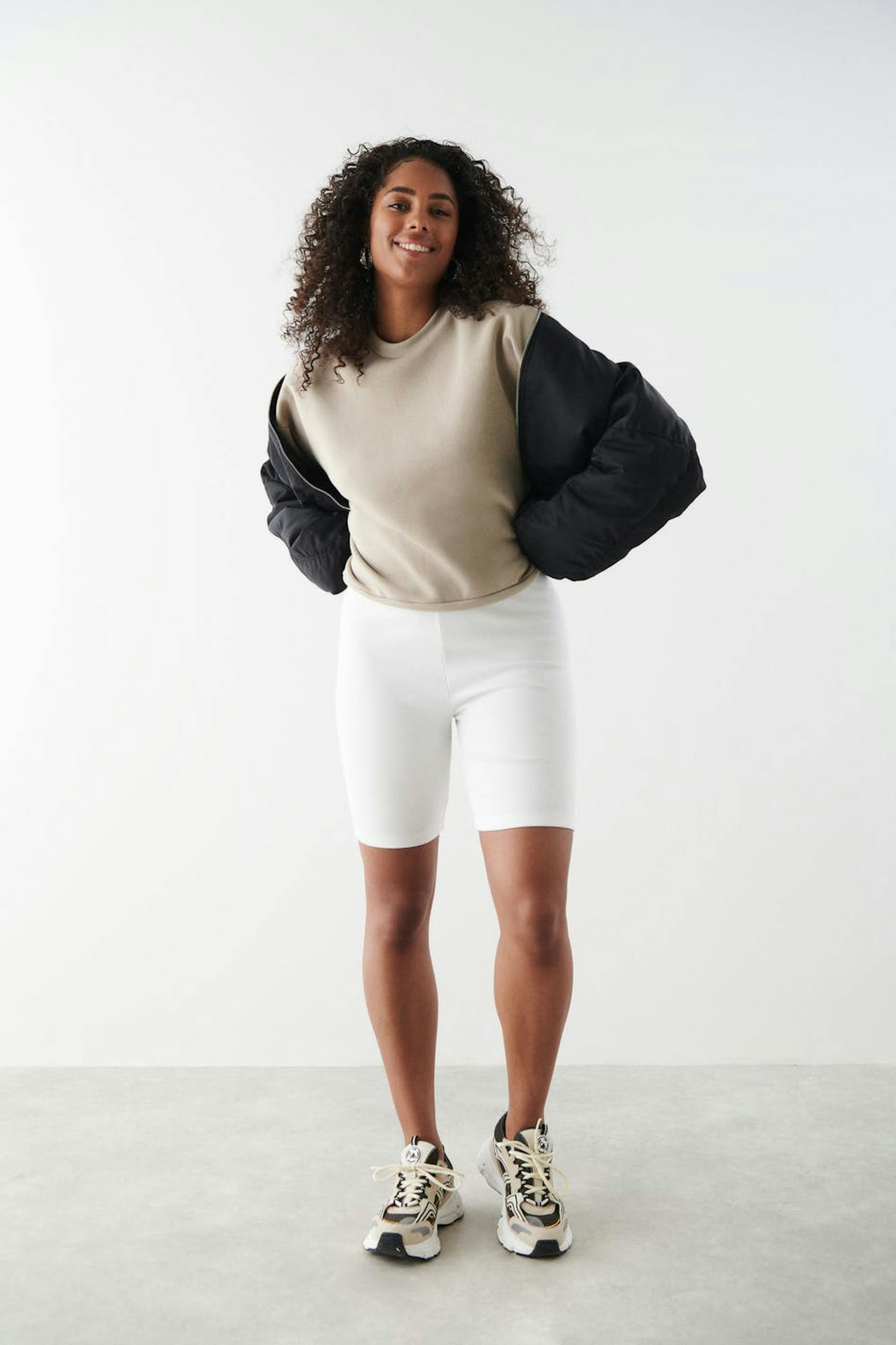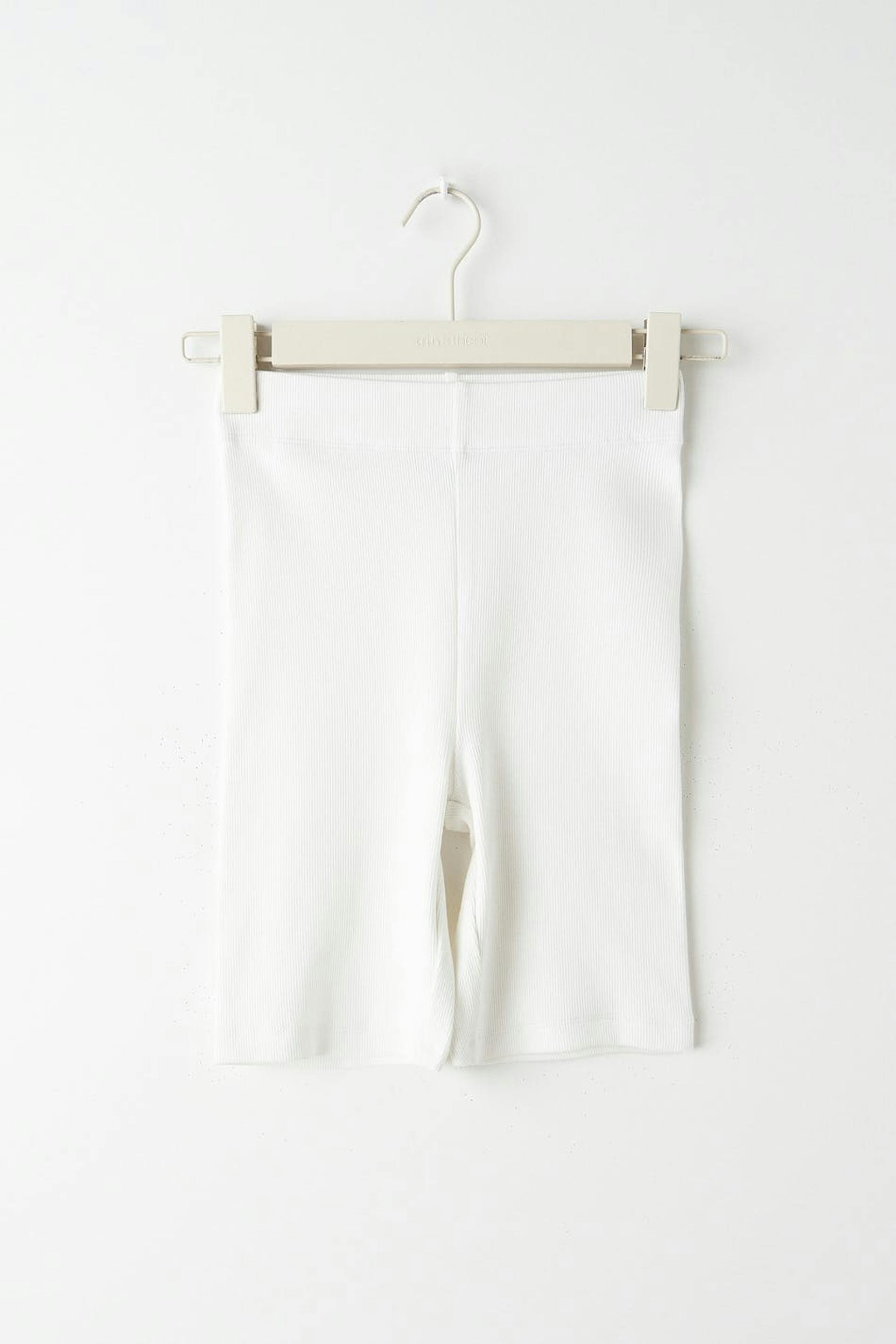 Ribbade bikershorts med en figurnära passform. Shortsen är vita och har en resår i midjan.