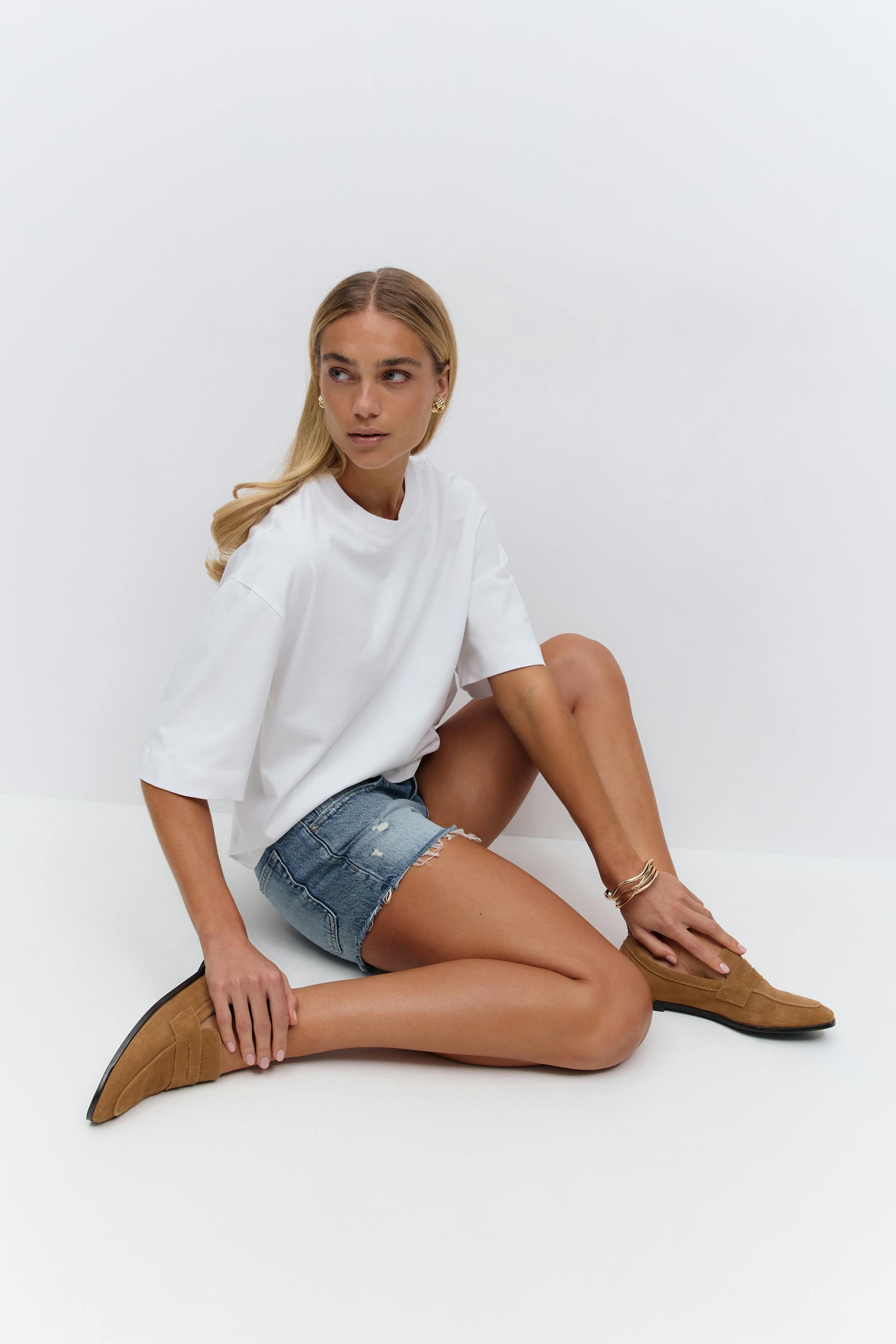 Low denim shorts