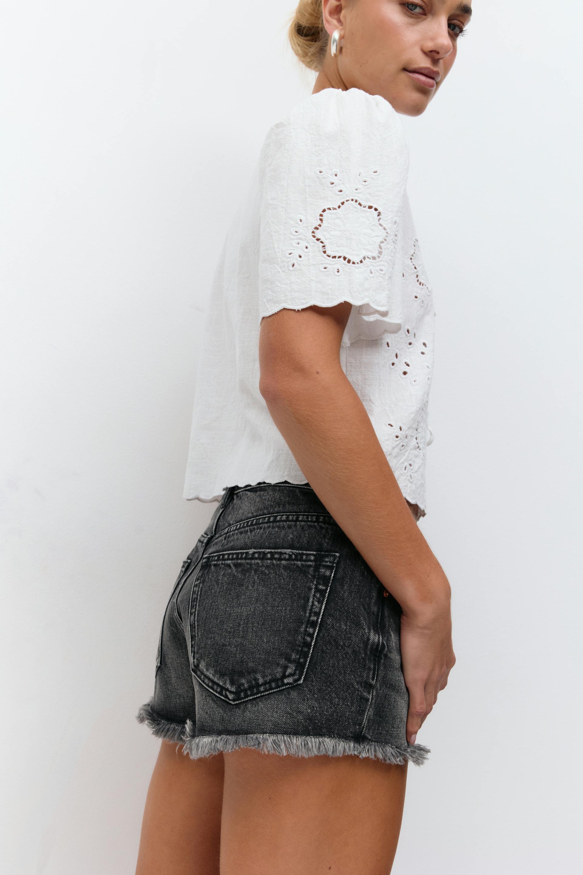 Low denim shorts