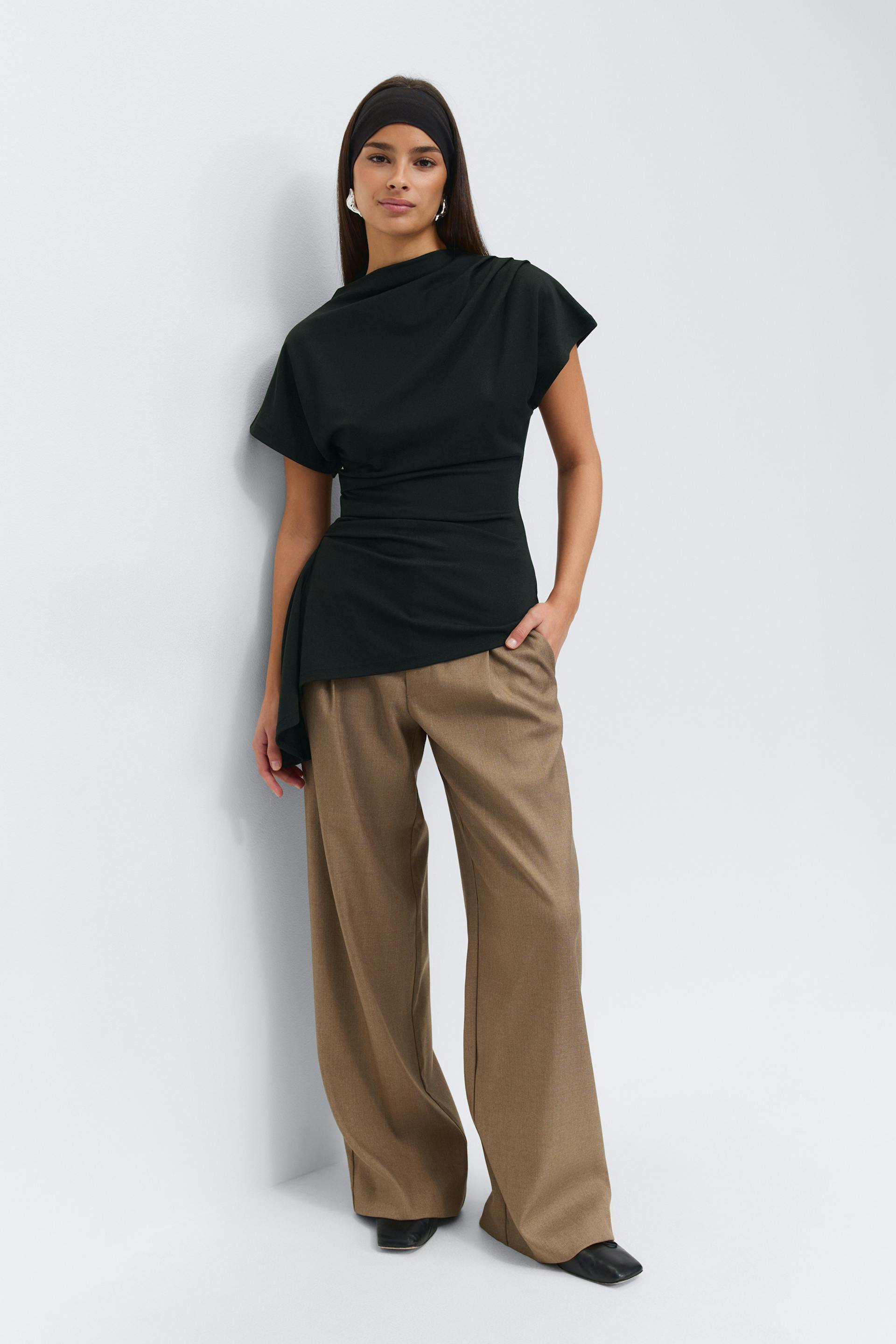 Asymmetric funnel neck top