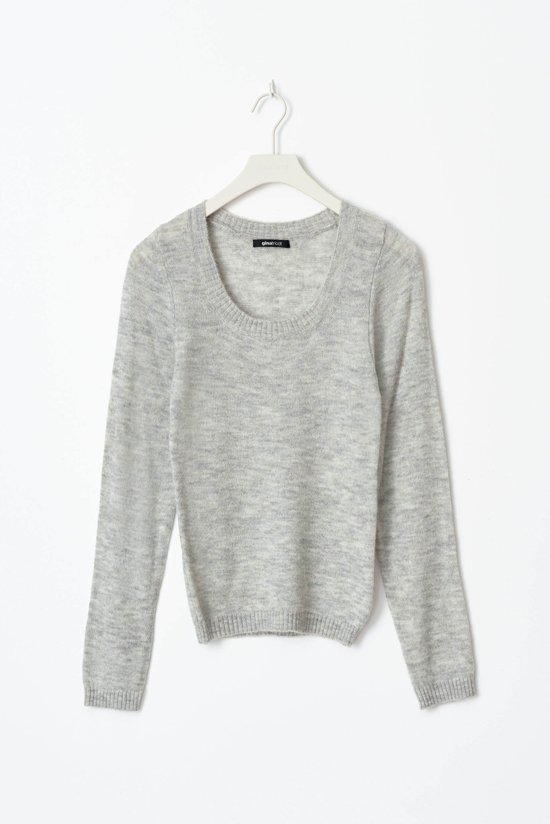 Stickad topp med figurnära passform. Toppen är beige och har lång ärm. Den har rund halsringning, mjuk, finstickad kvalitet och ribbstickning vid ärmslut och i nederkant.
