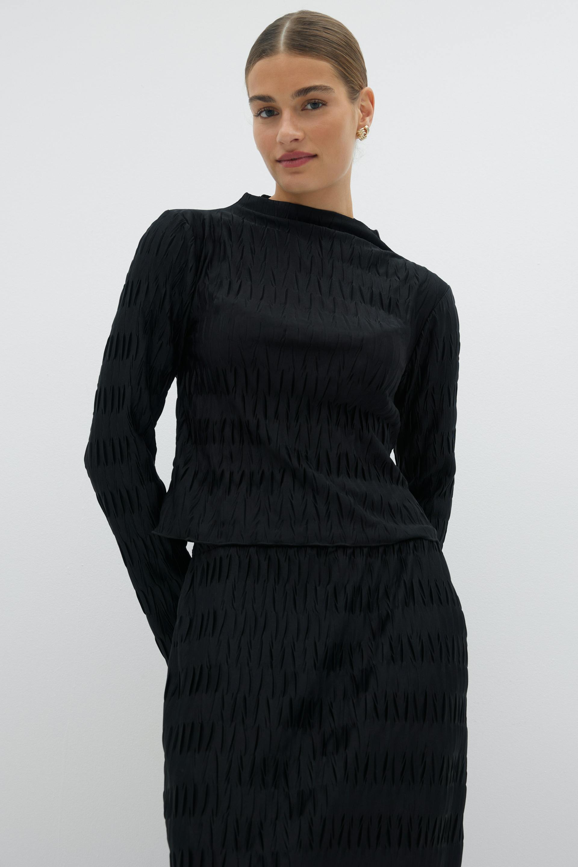 Pleated funnel neck top