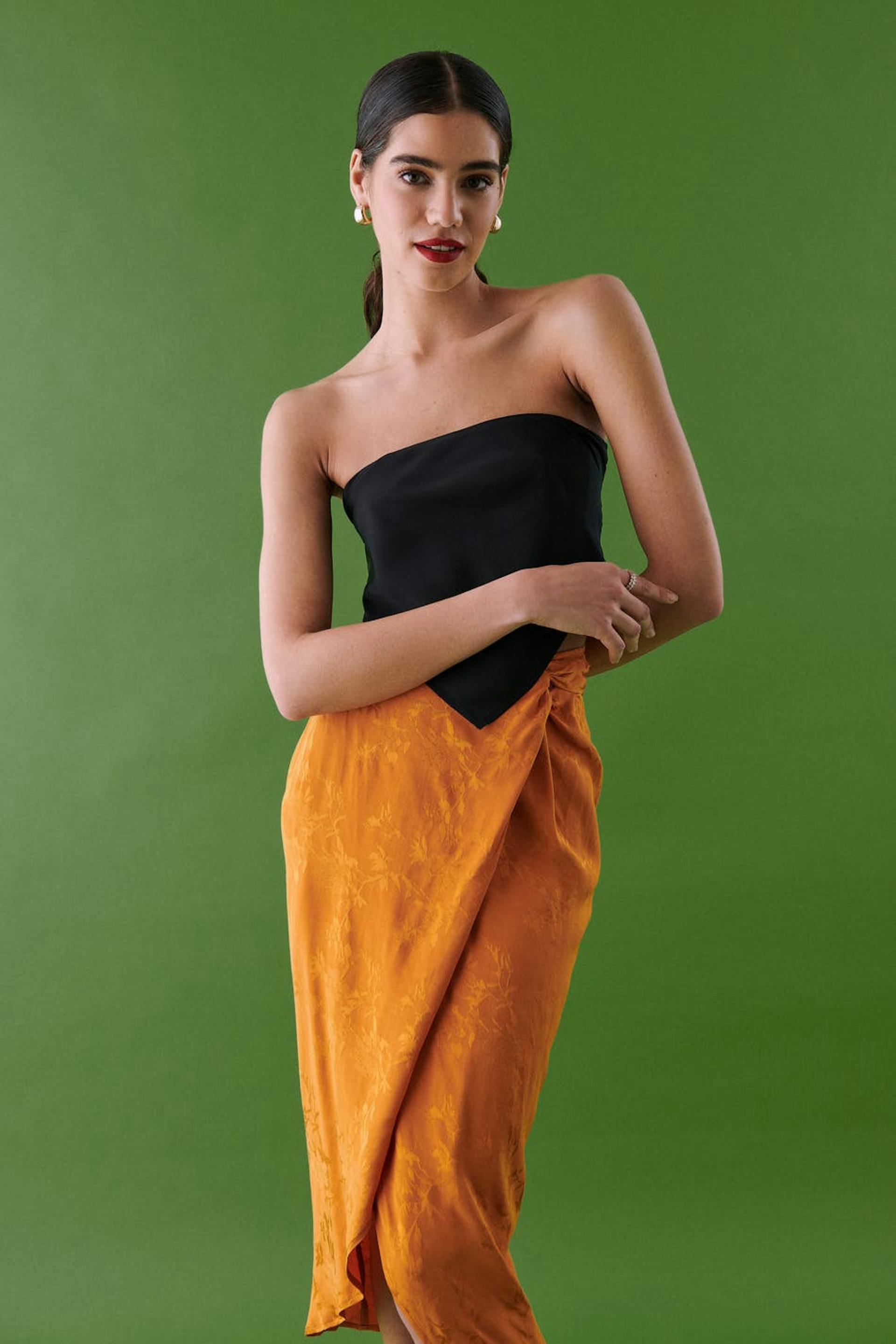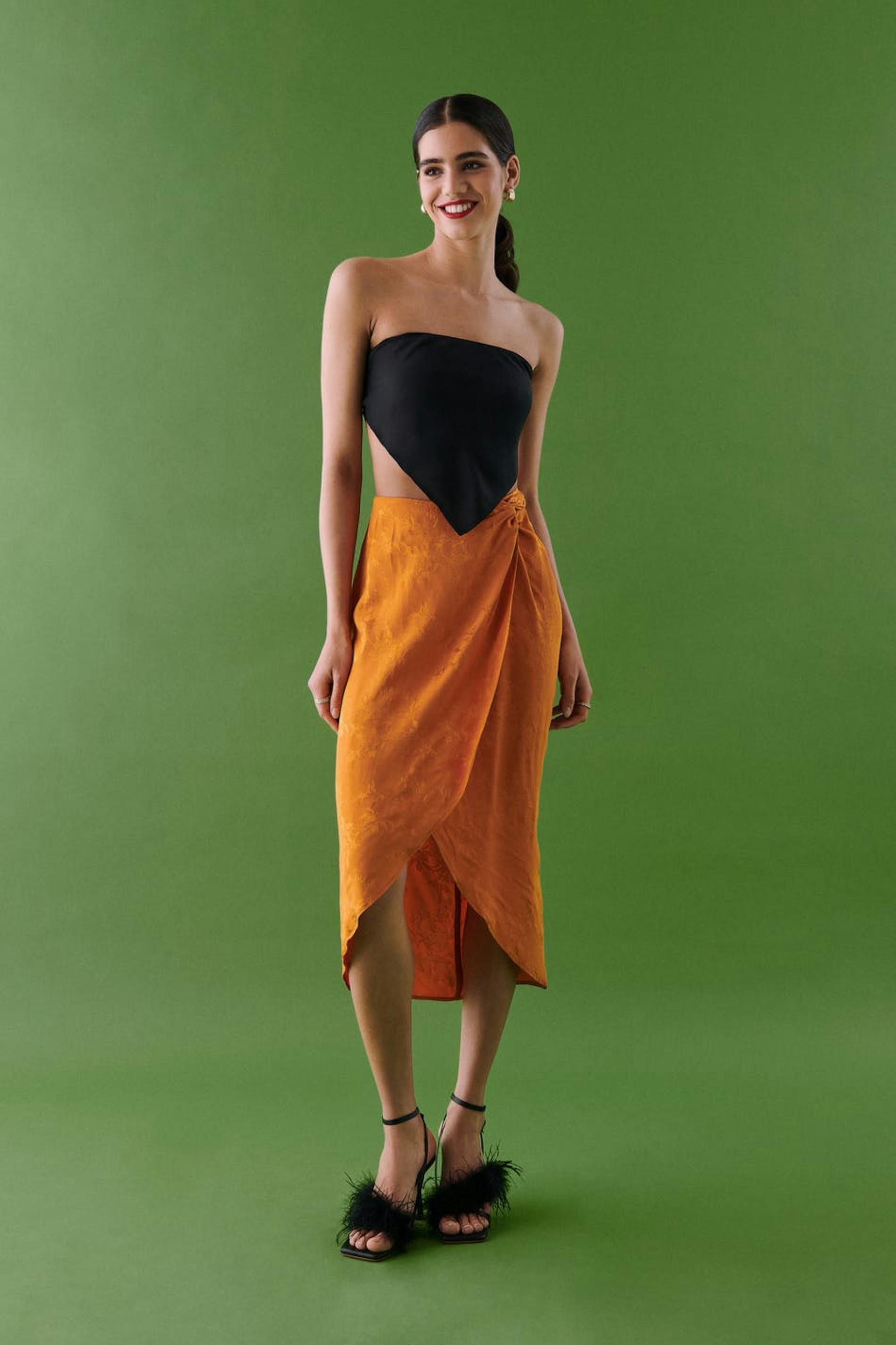 Scarf-topp i återvunnen polyester med knytning i ryggen. Toppen är perfekt för festen och svart och har en spetsig kant nedtill.
