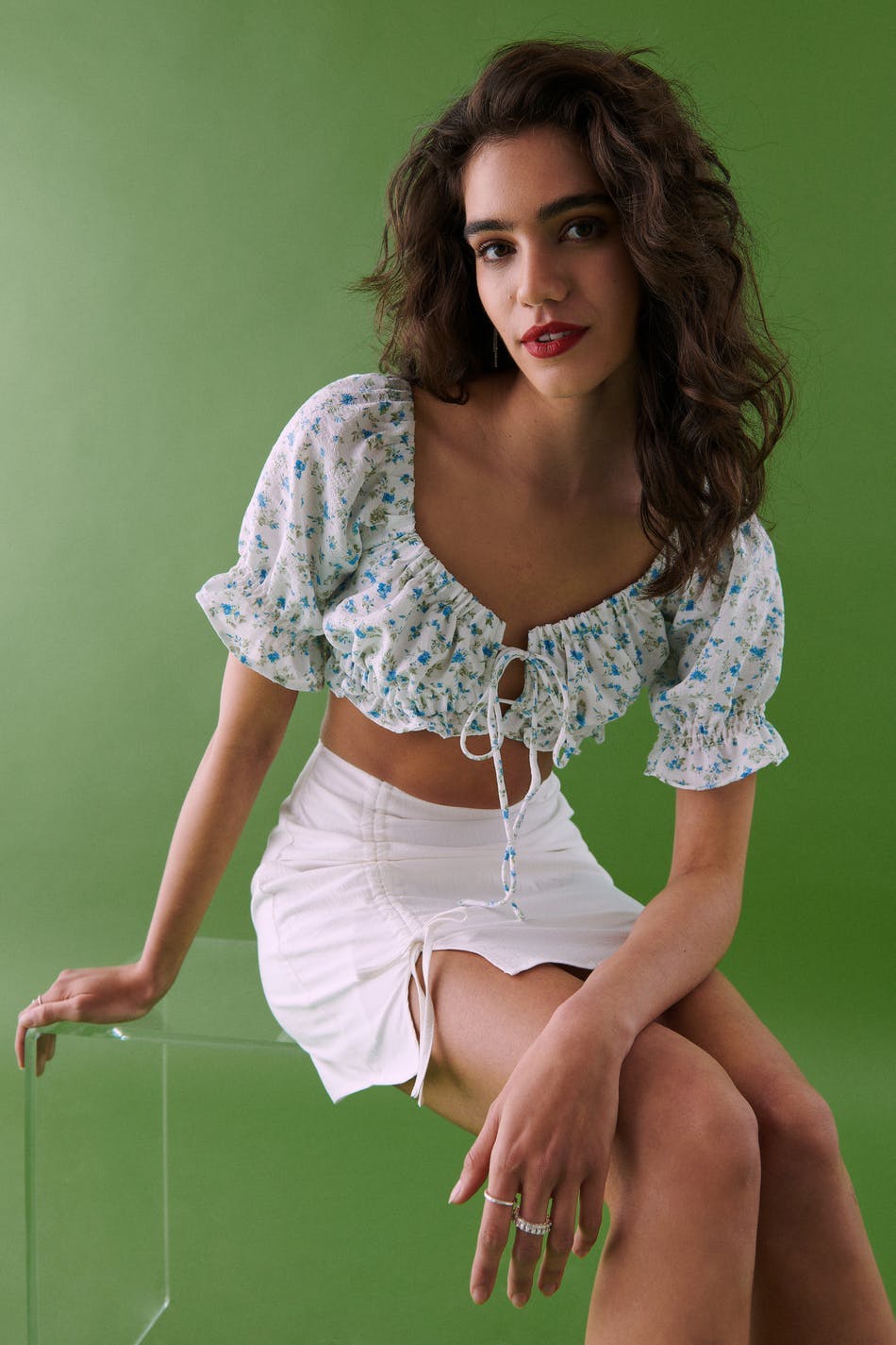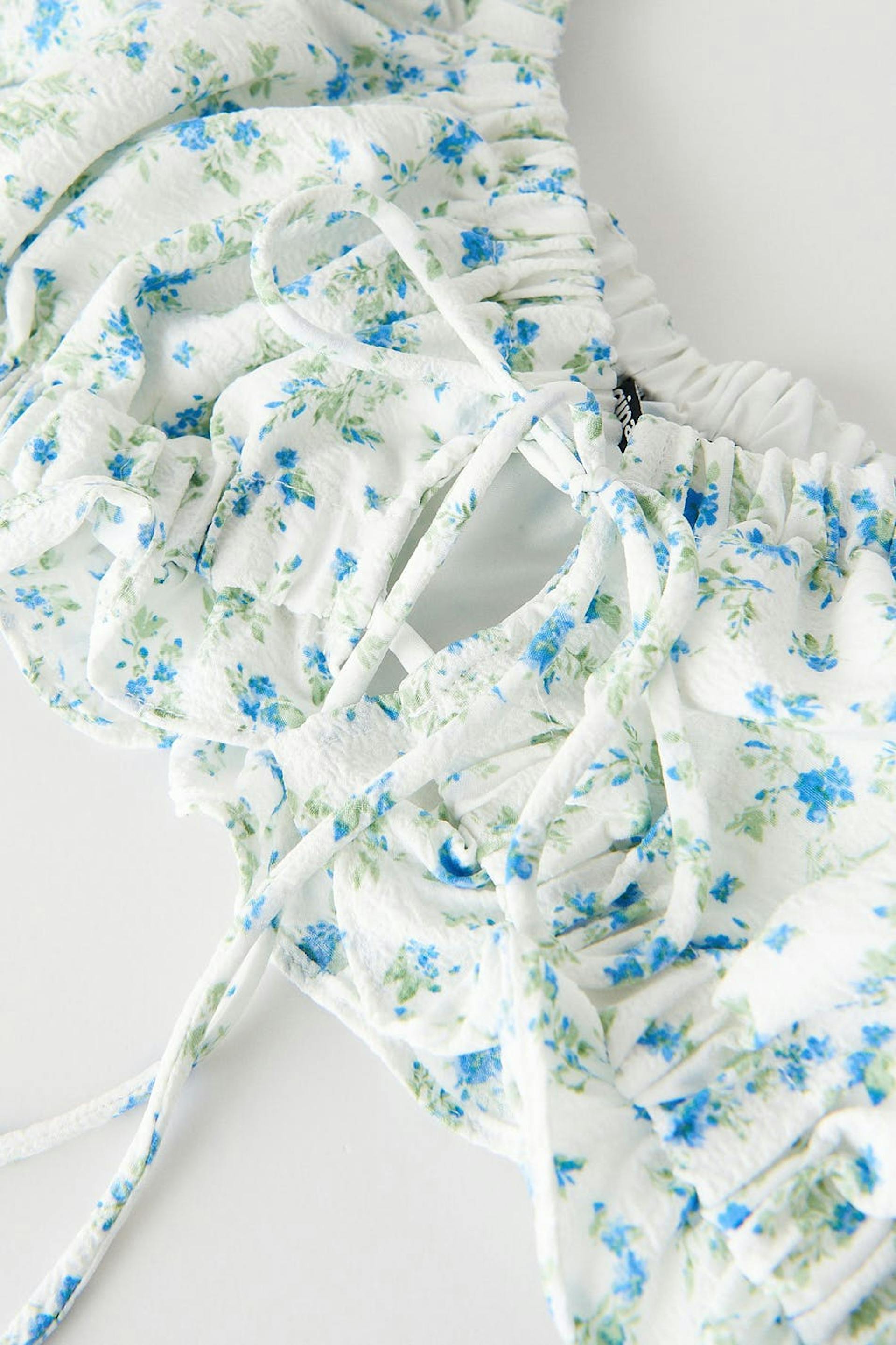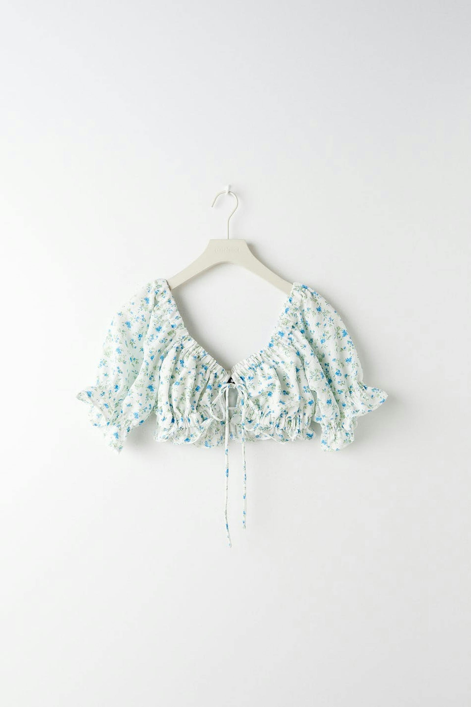 Kortärmad topp. Toppen är perfekt för festen och blå och har en croppad längd. Den har ett knutet, justerbart snöre framtill.