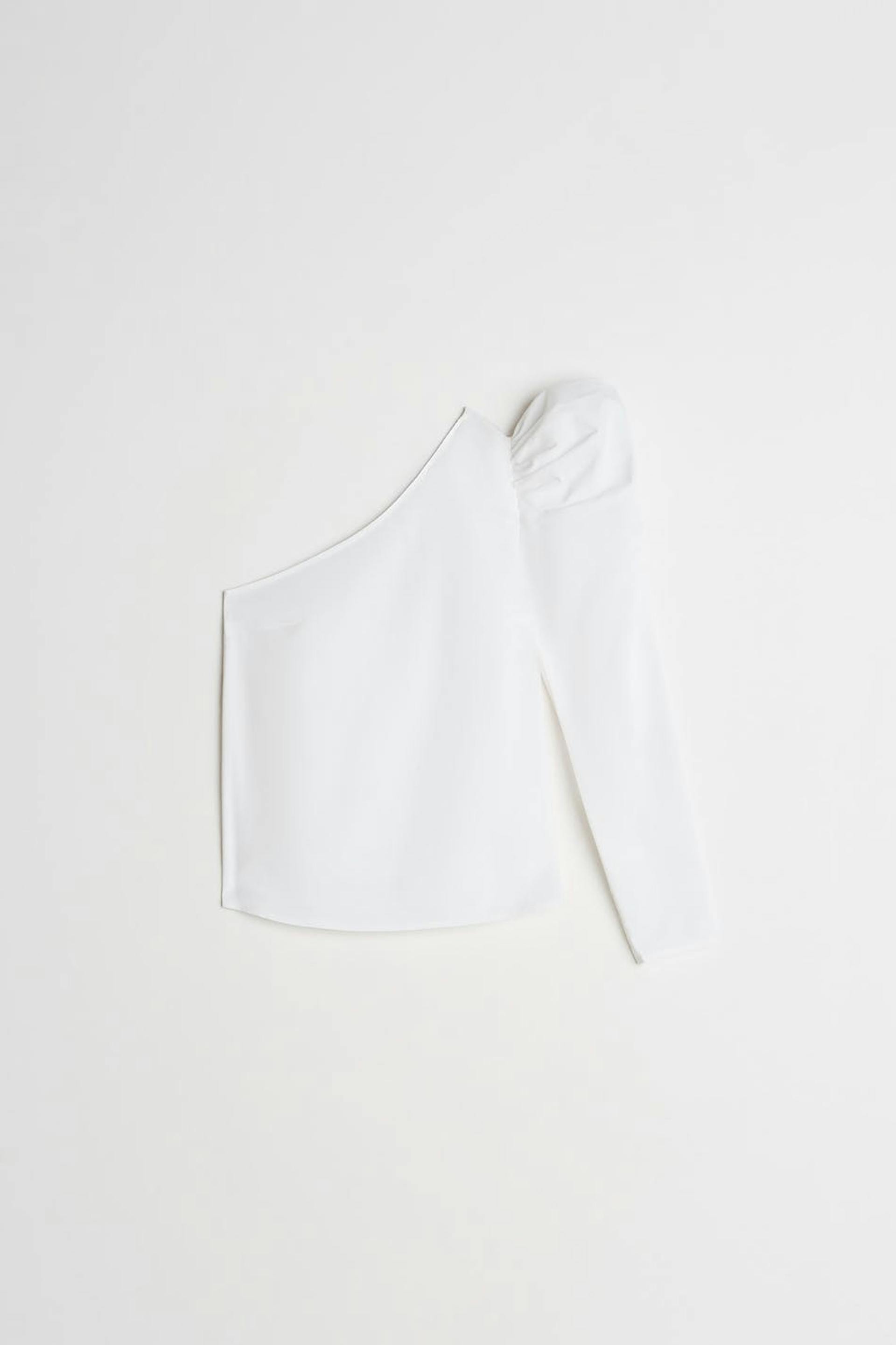 Topp med en one shoulder-stil. Toppen är perfekt för festen och vit och har en lång puffärm.
