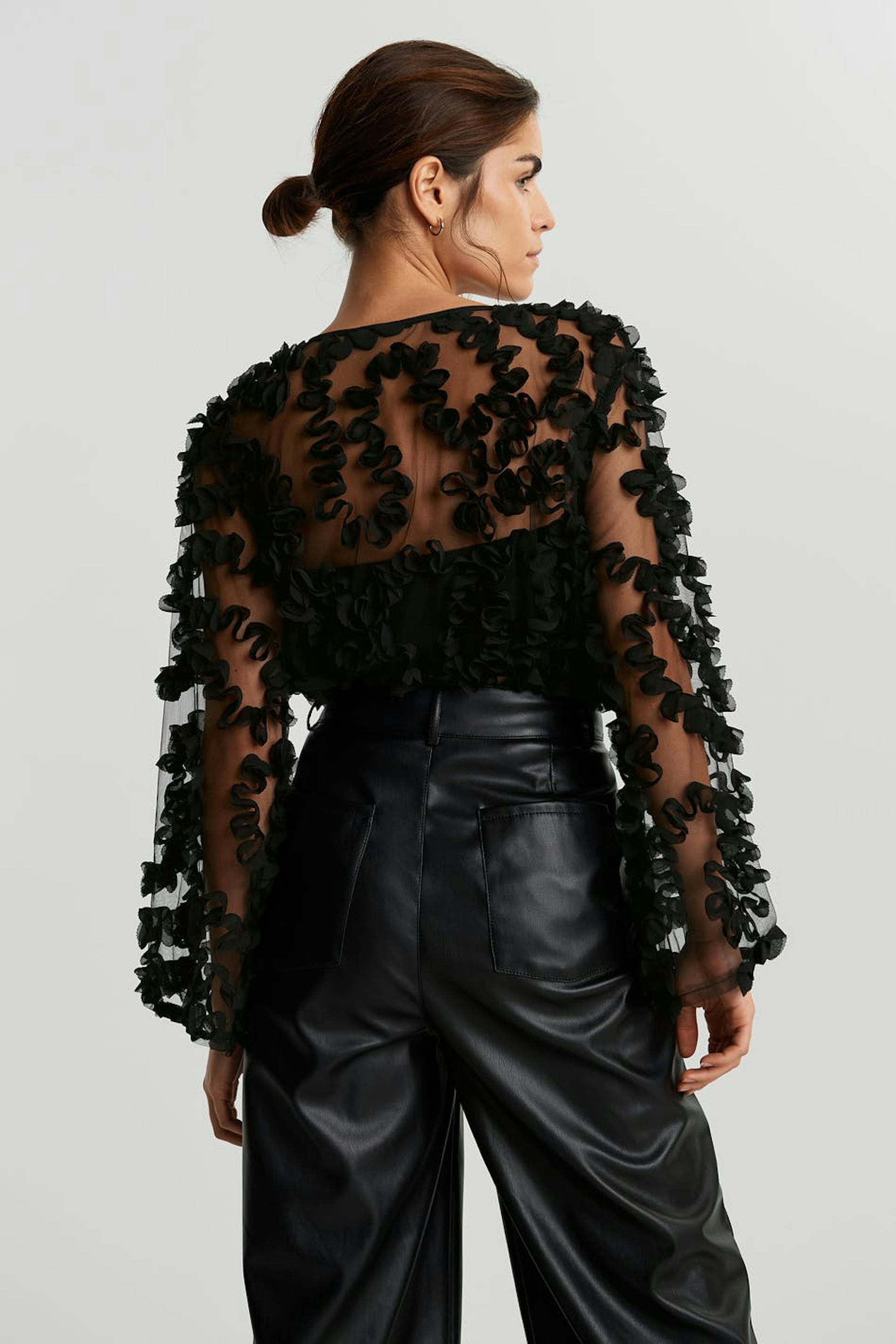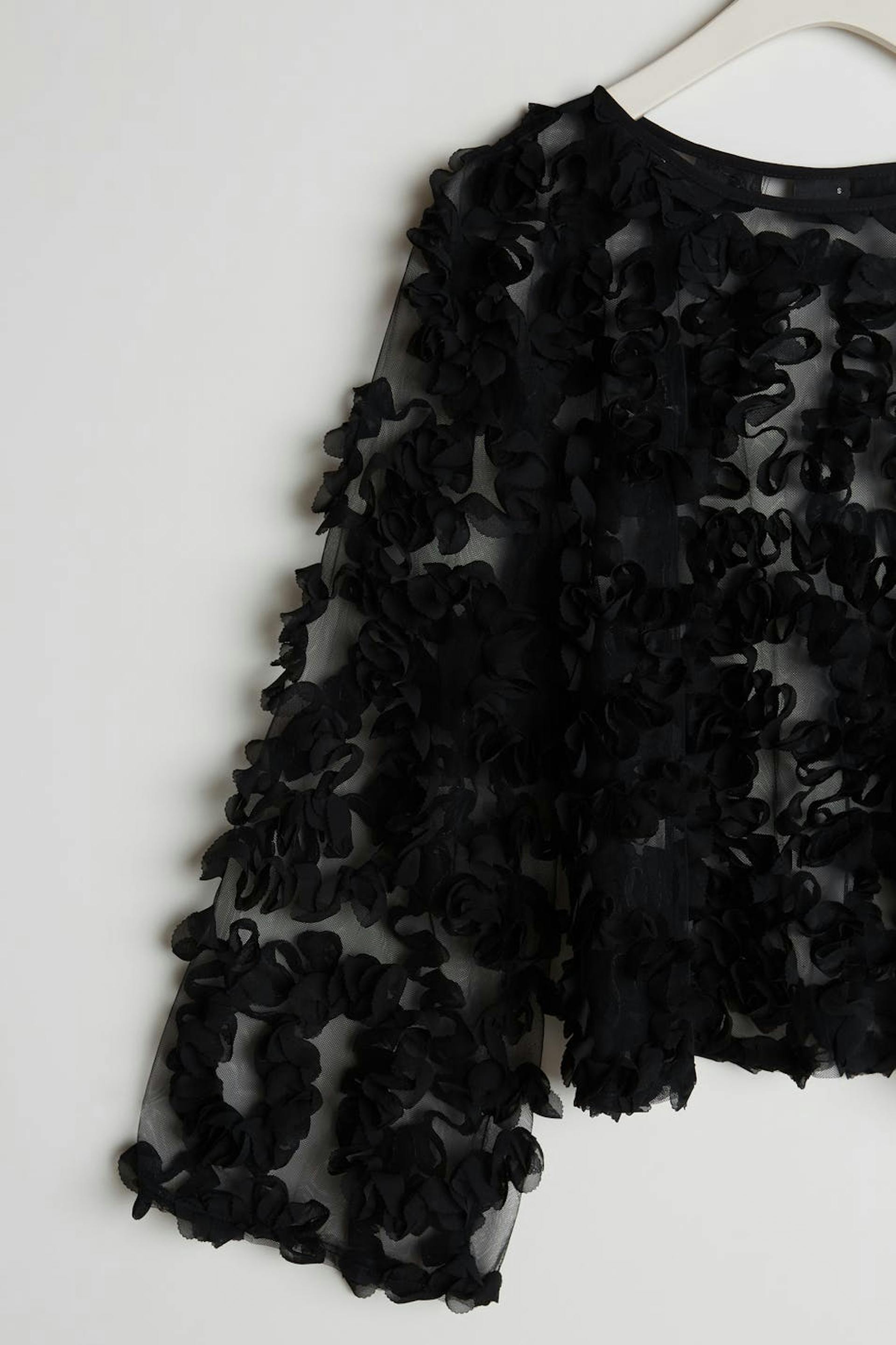 Långärmad topp med meshdetaljer överallt. Toppen är perfekt för festen och svart och har rymliga ärmar. Den är gjord av mesh.