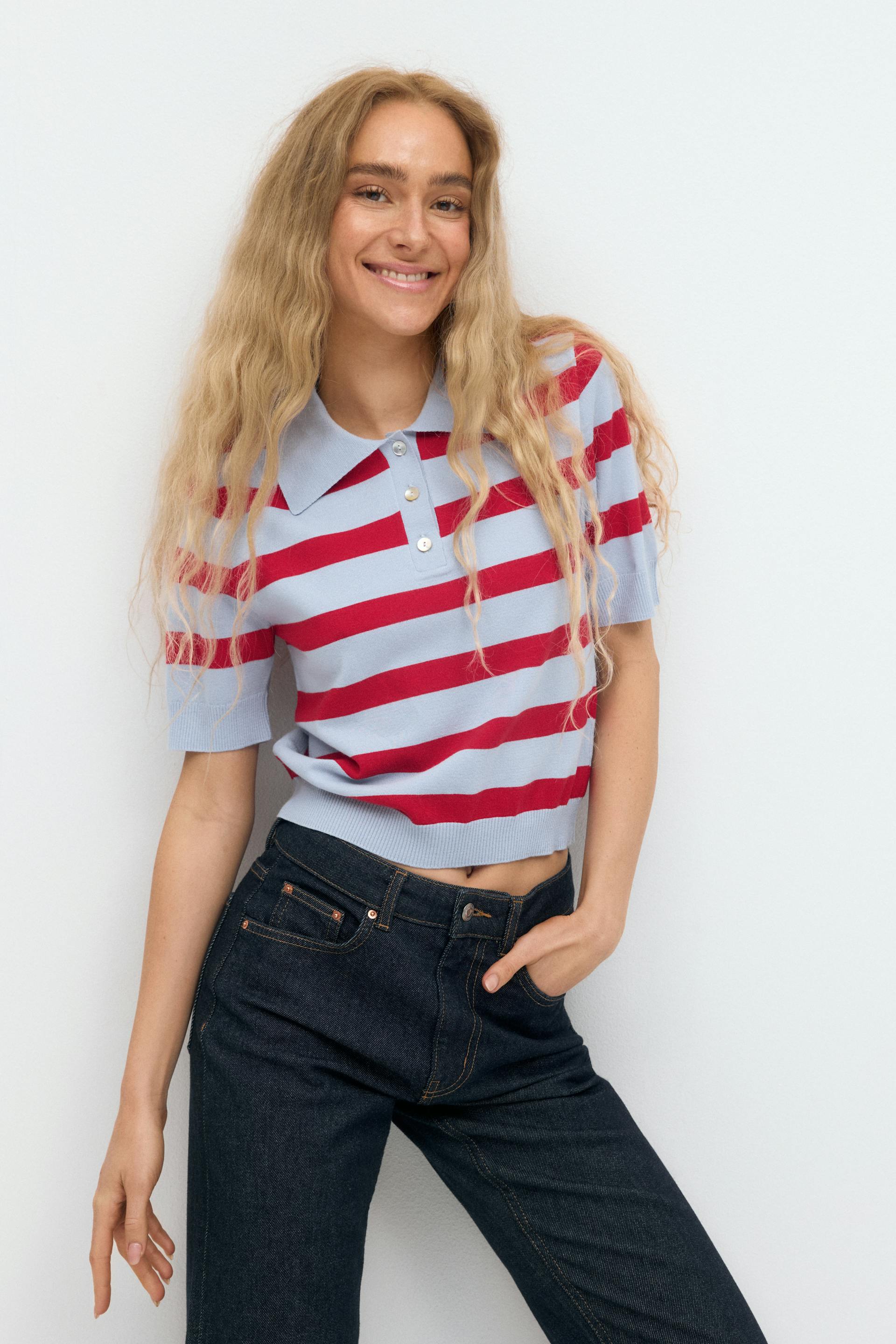Short sleeve knit collar top