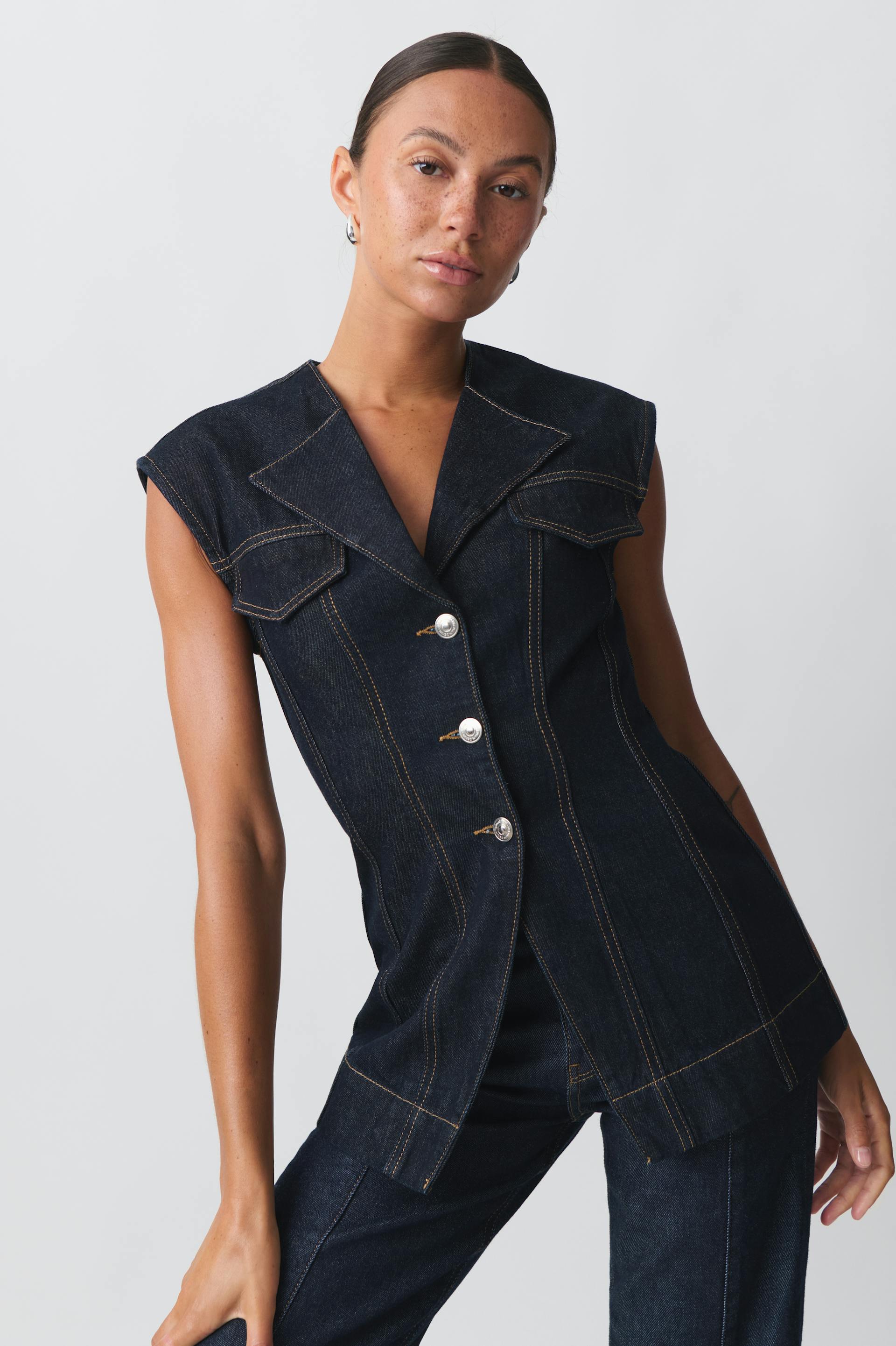 Shaped denim vest