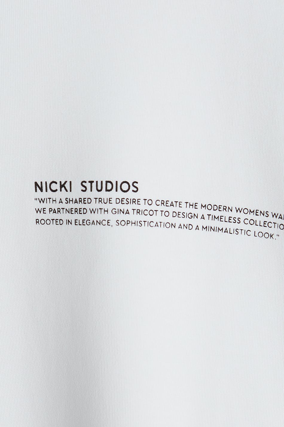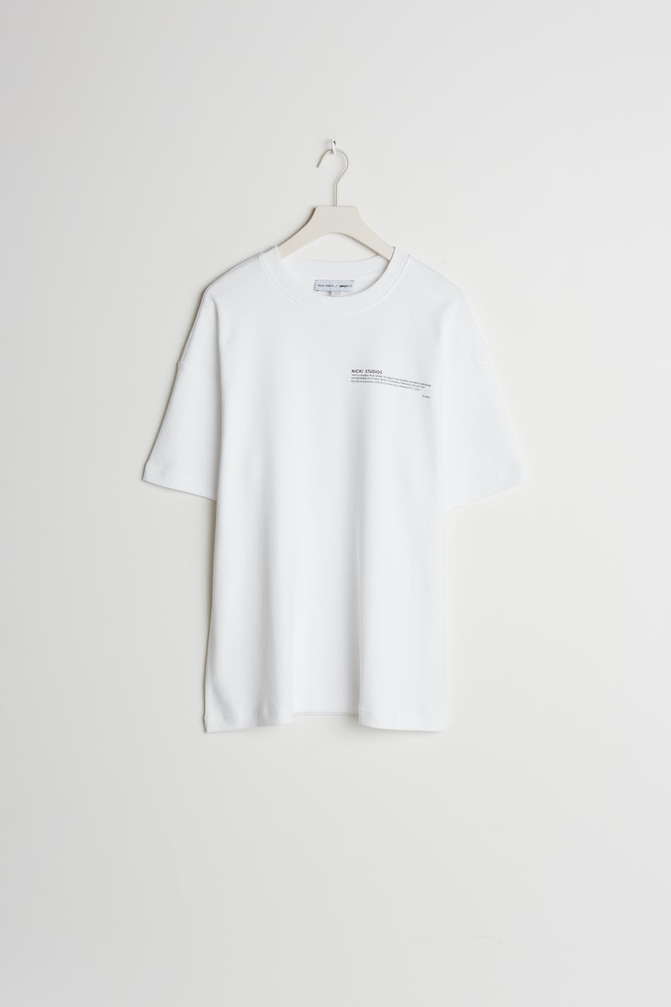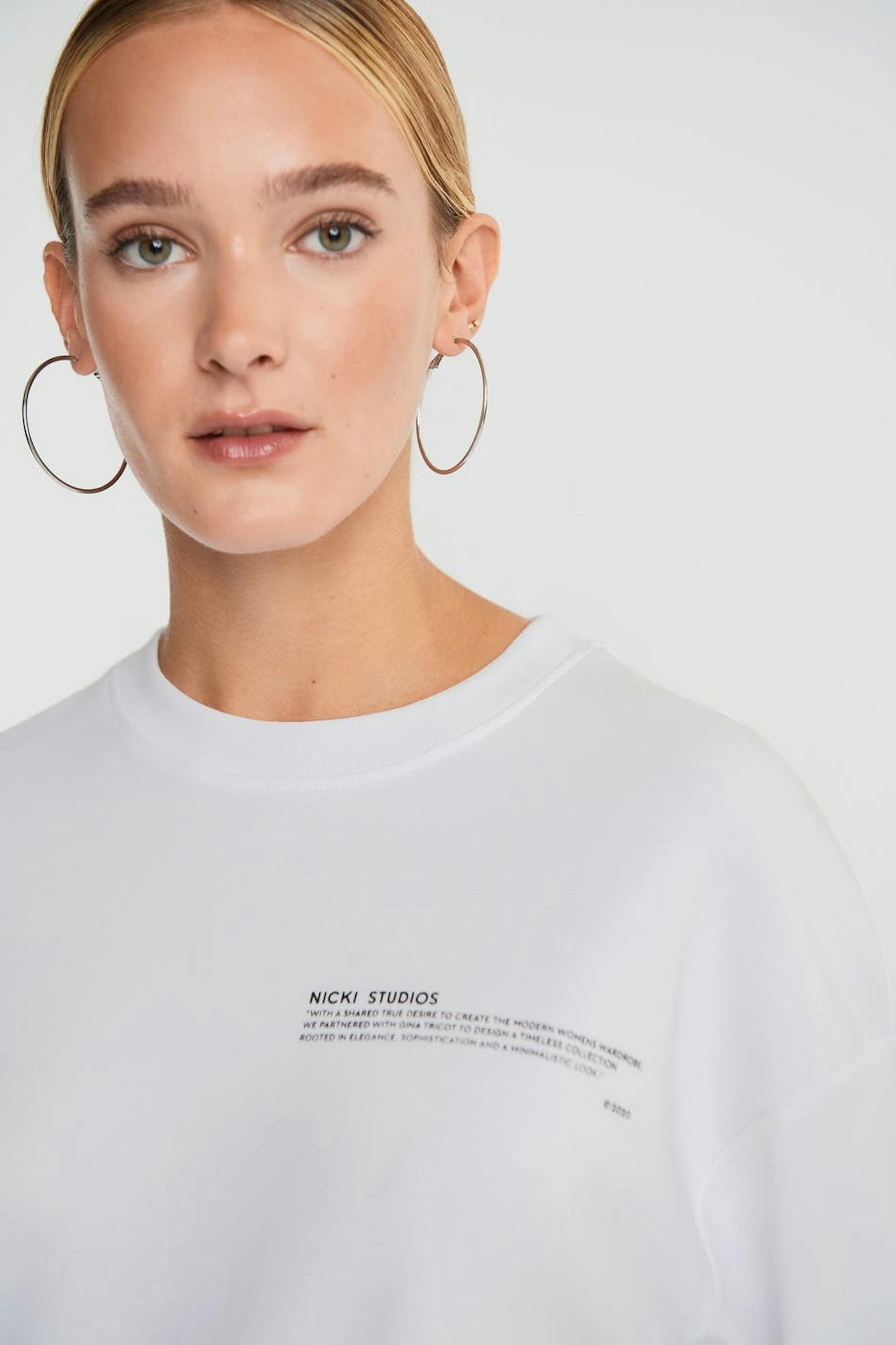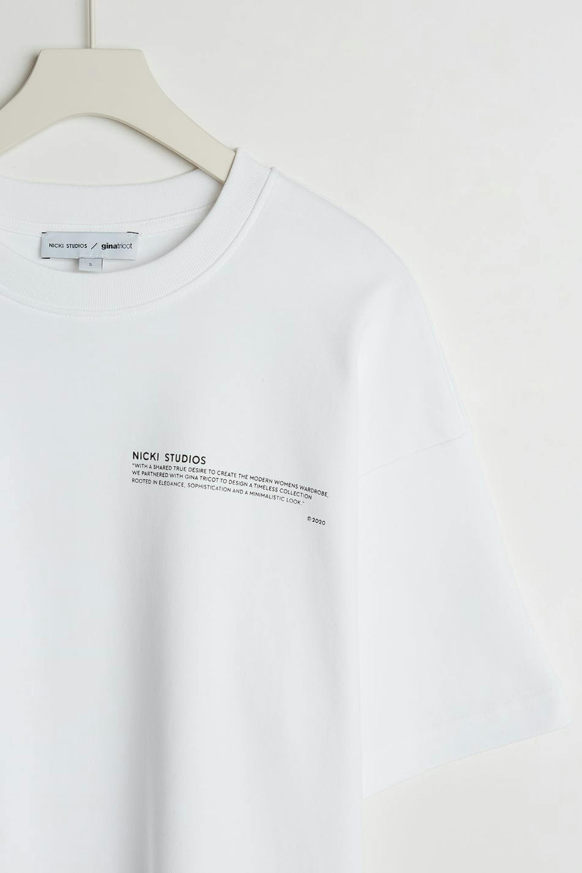 Oversized t-shirt med ett tryck på framsidan. T-shirten är vit.