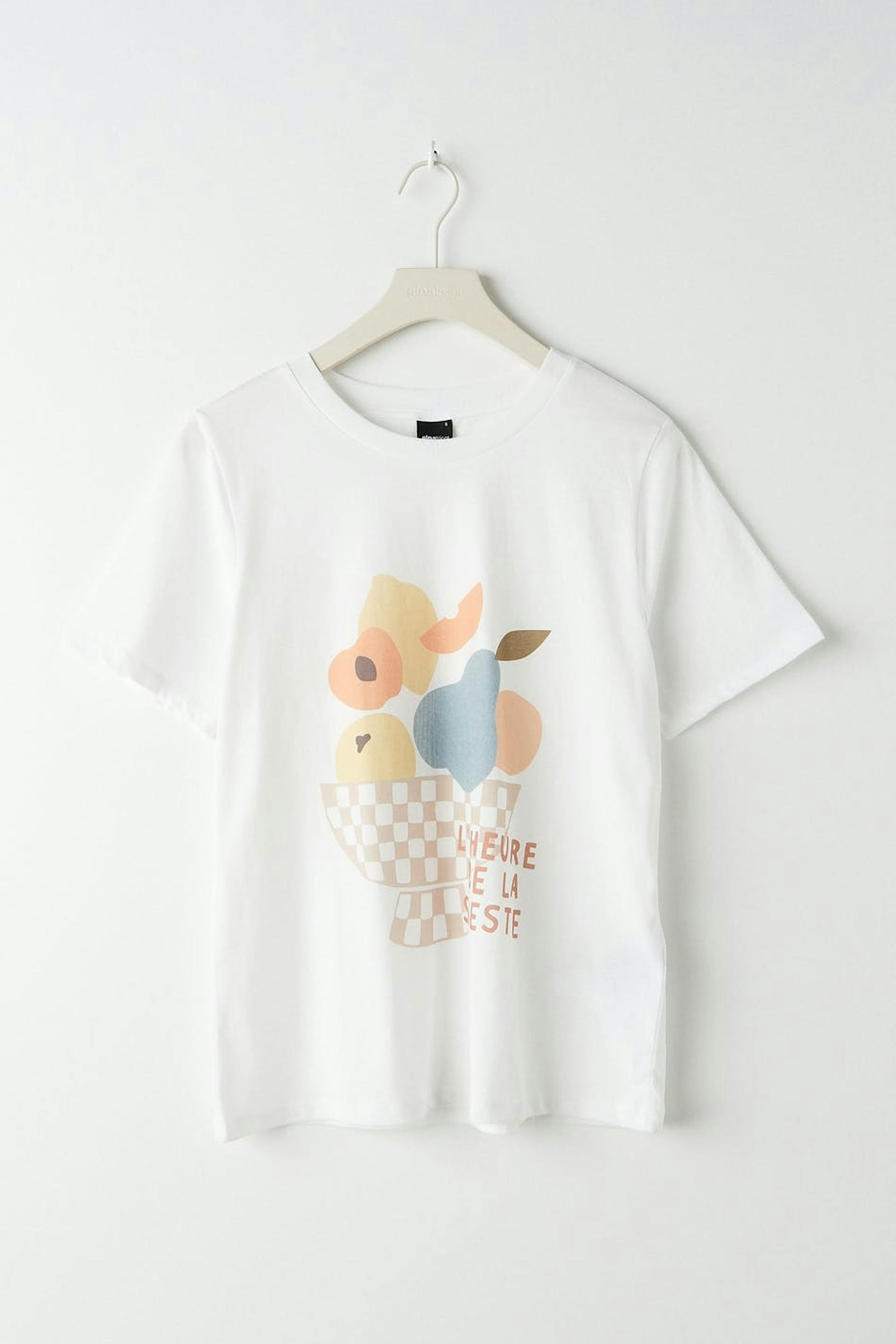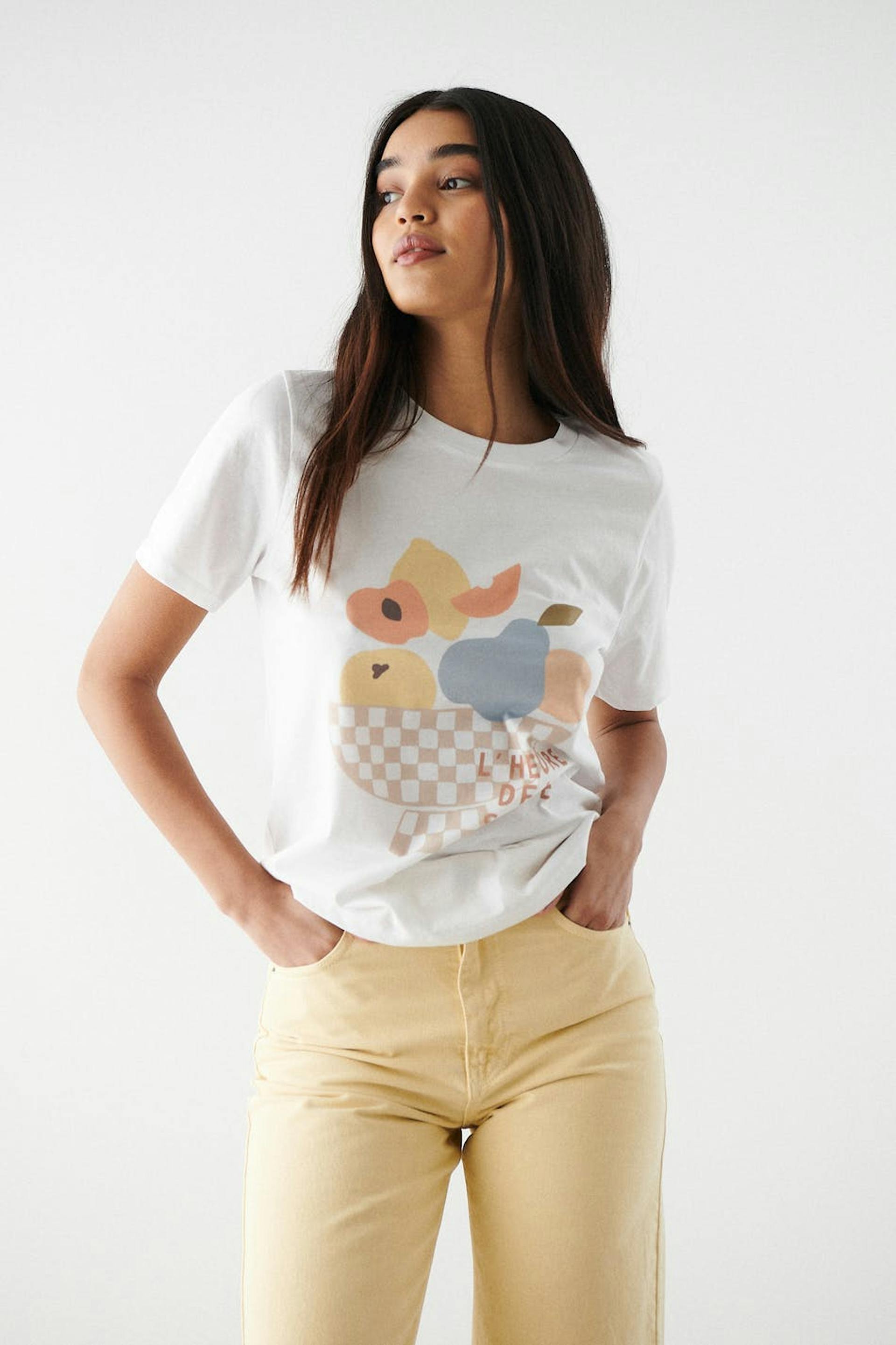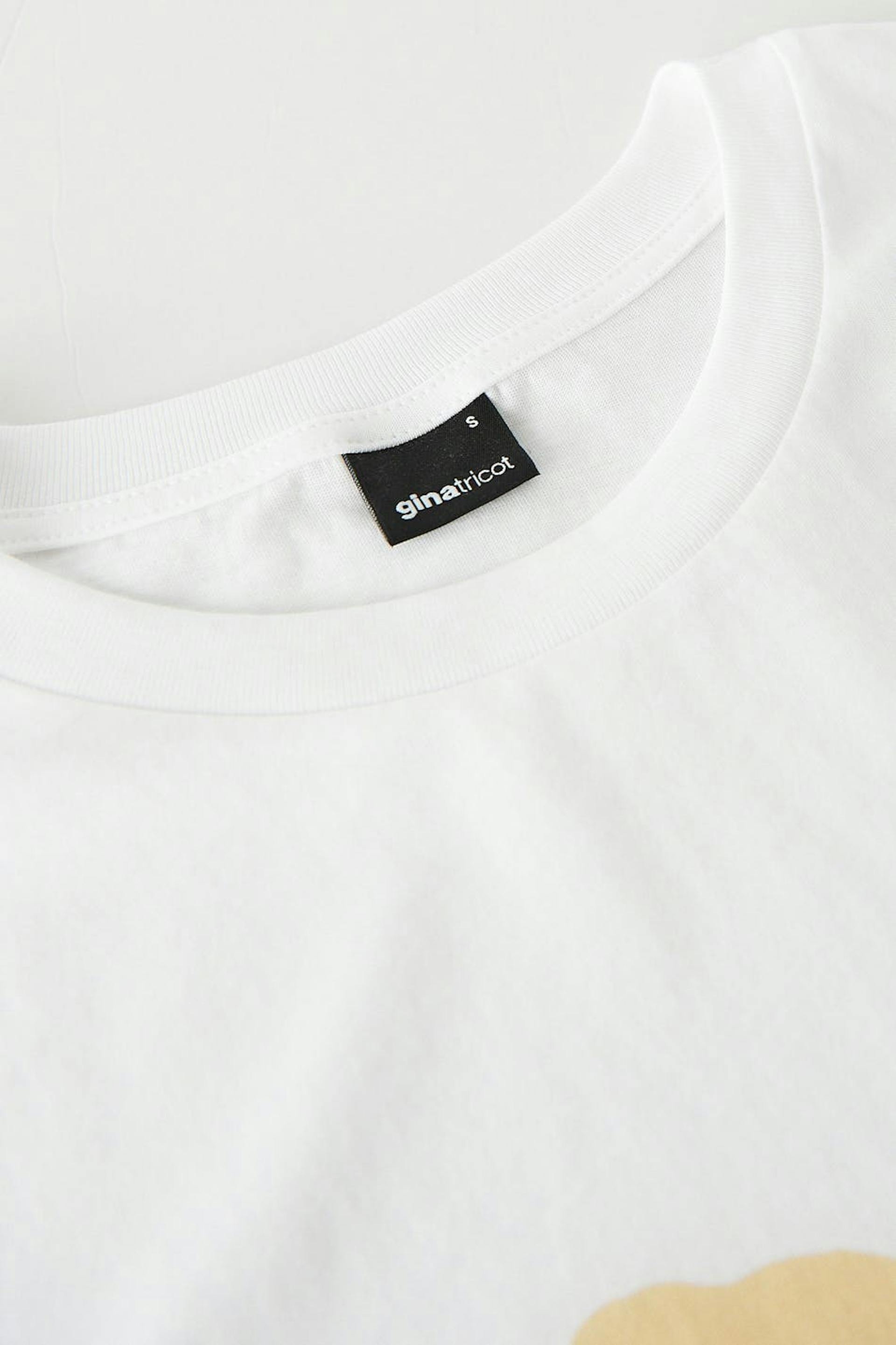 T-shirt med en normal passform. T-shirten är vit och har en rund halsringning med en smal, ribbad mudd. Den har ett mjukt material i trikå.