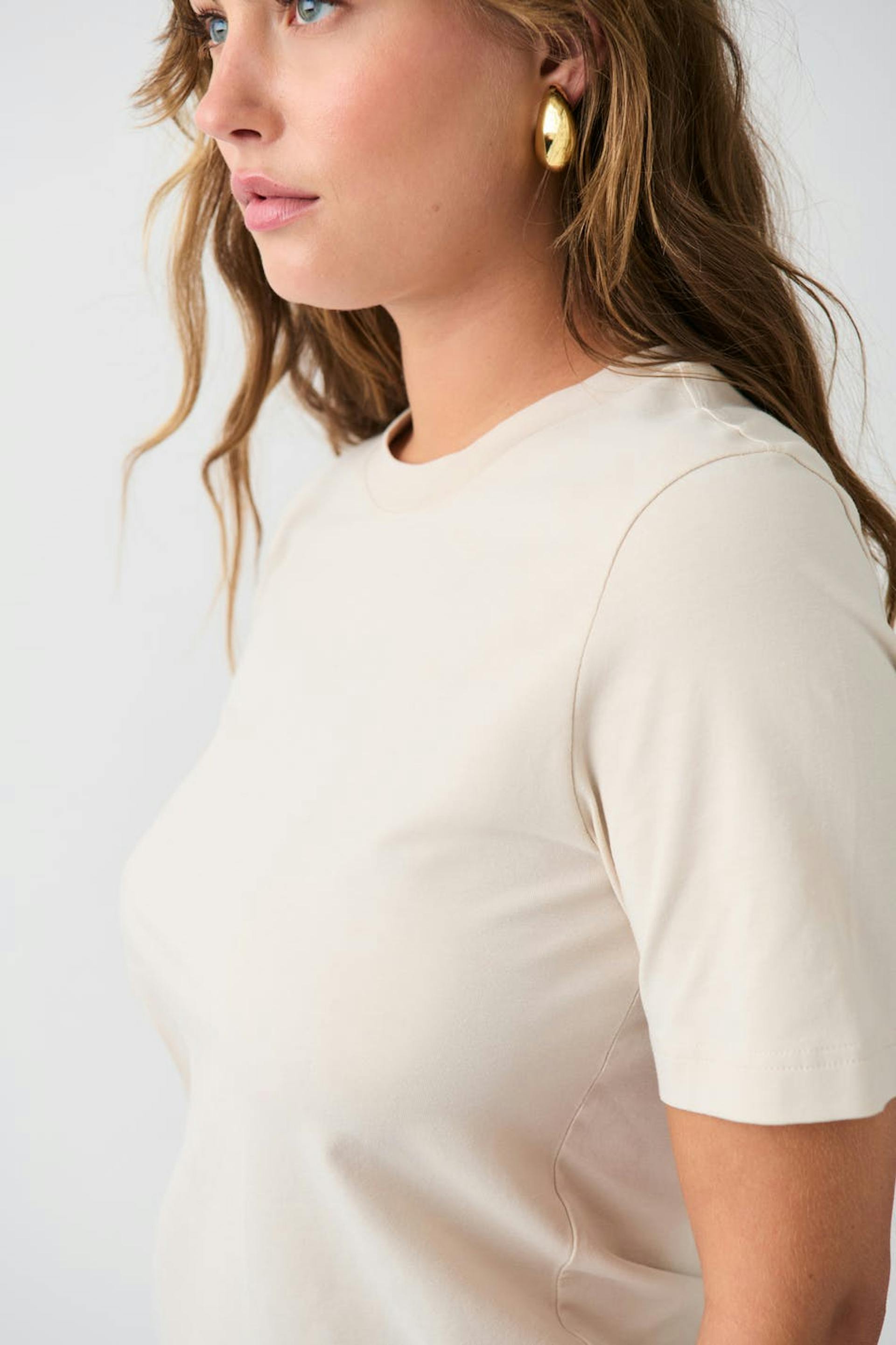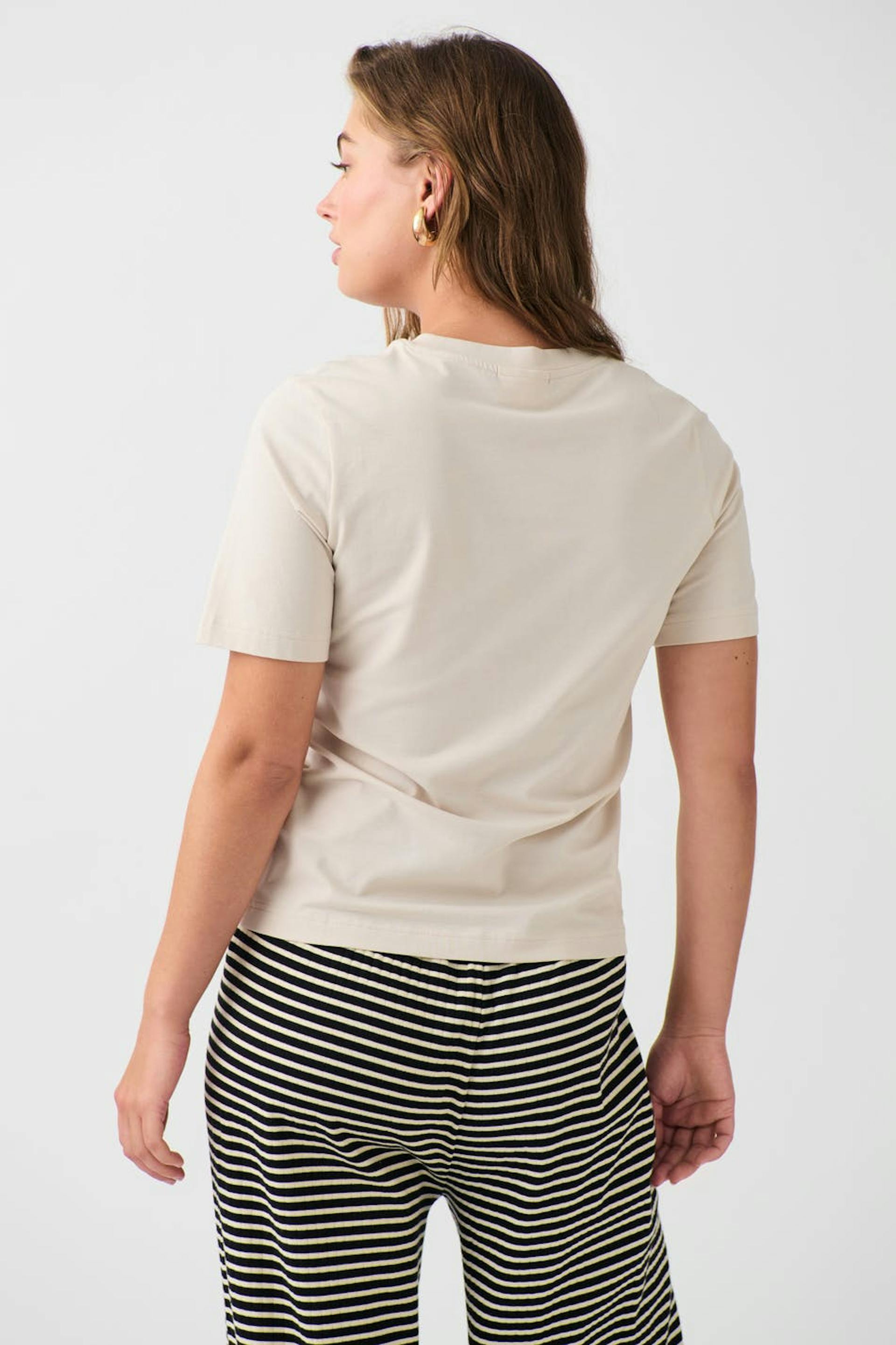 Mjuk t-shirt med normal passform. T-shirten är beige och har rund halsringning.