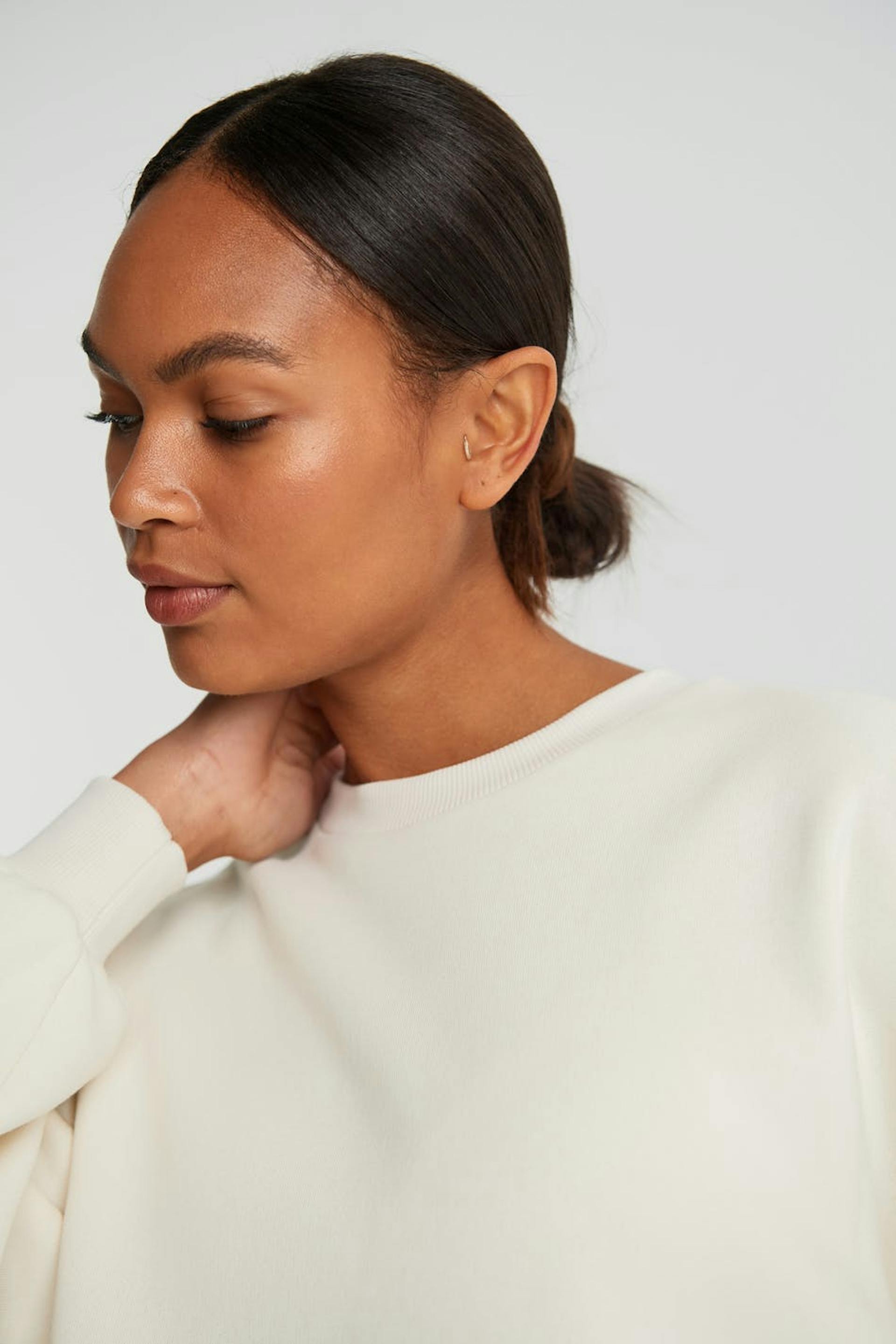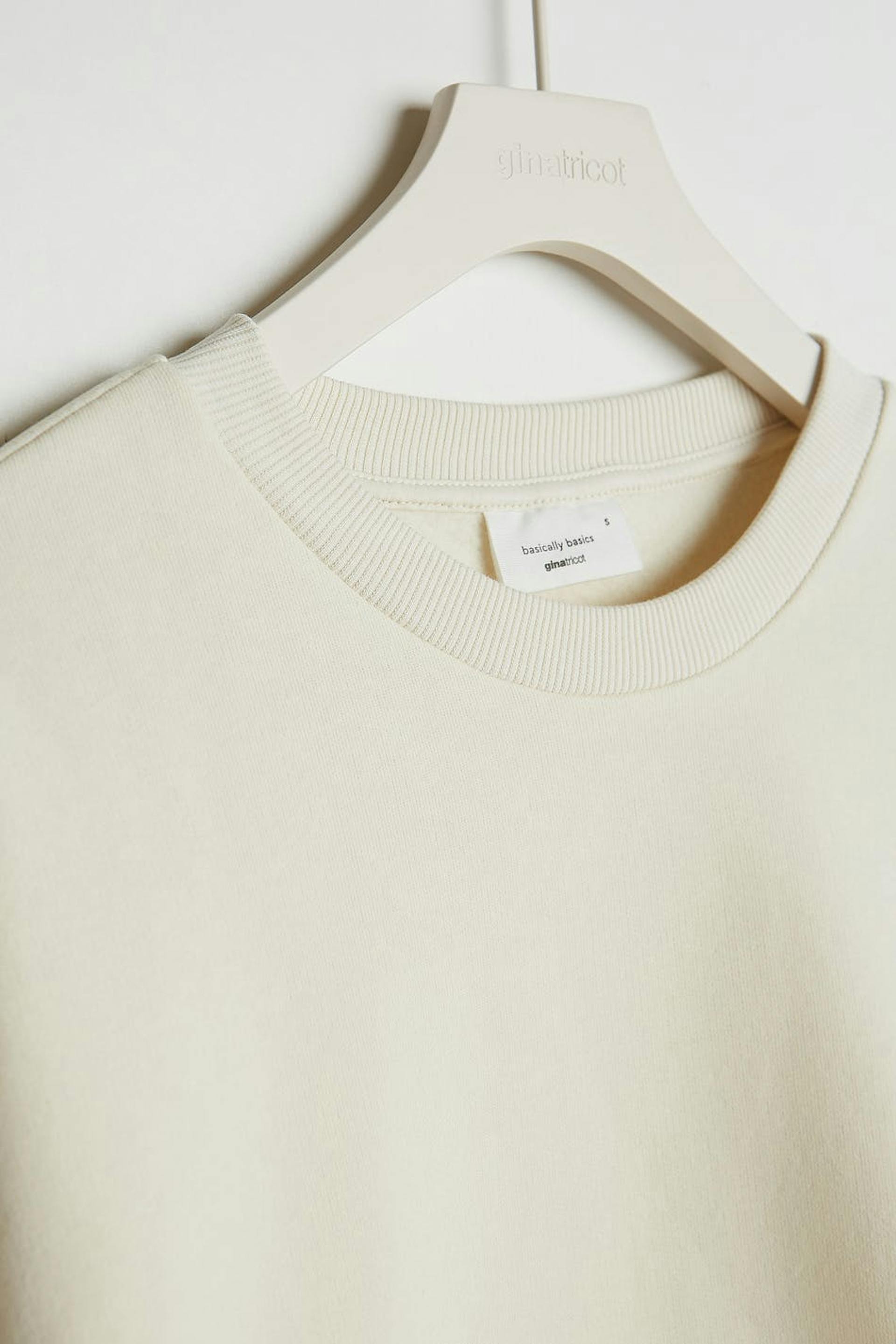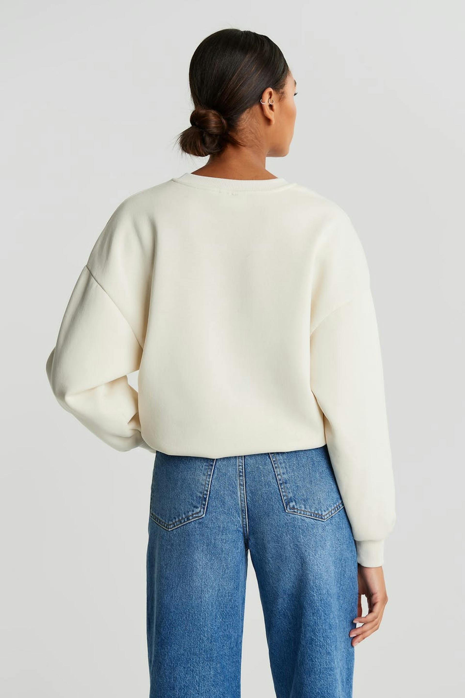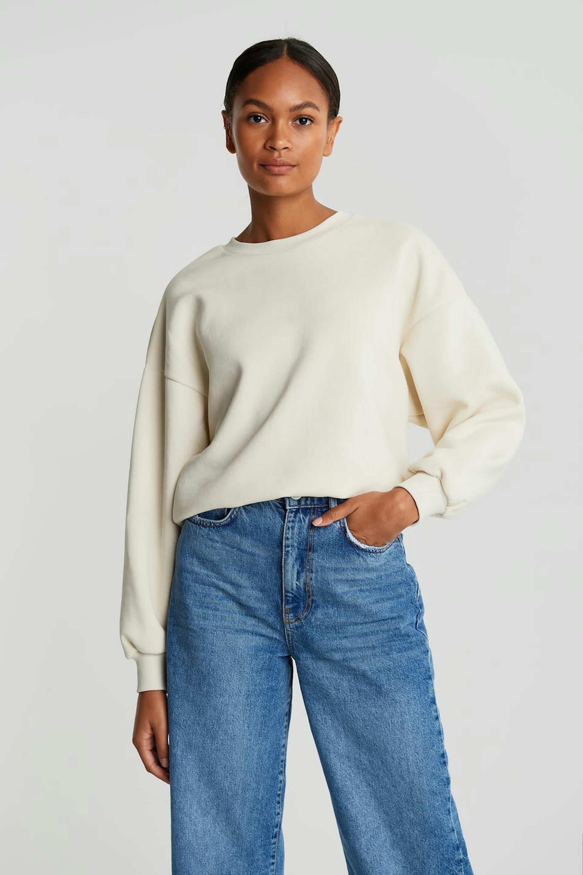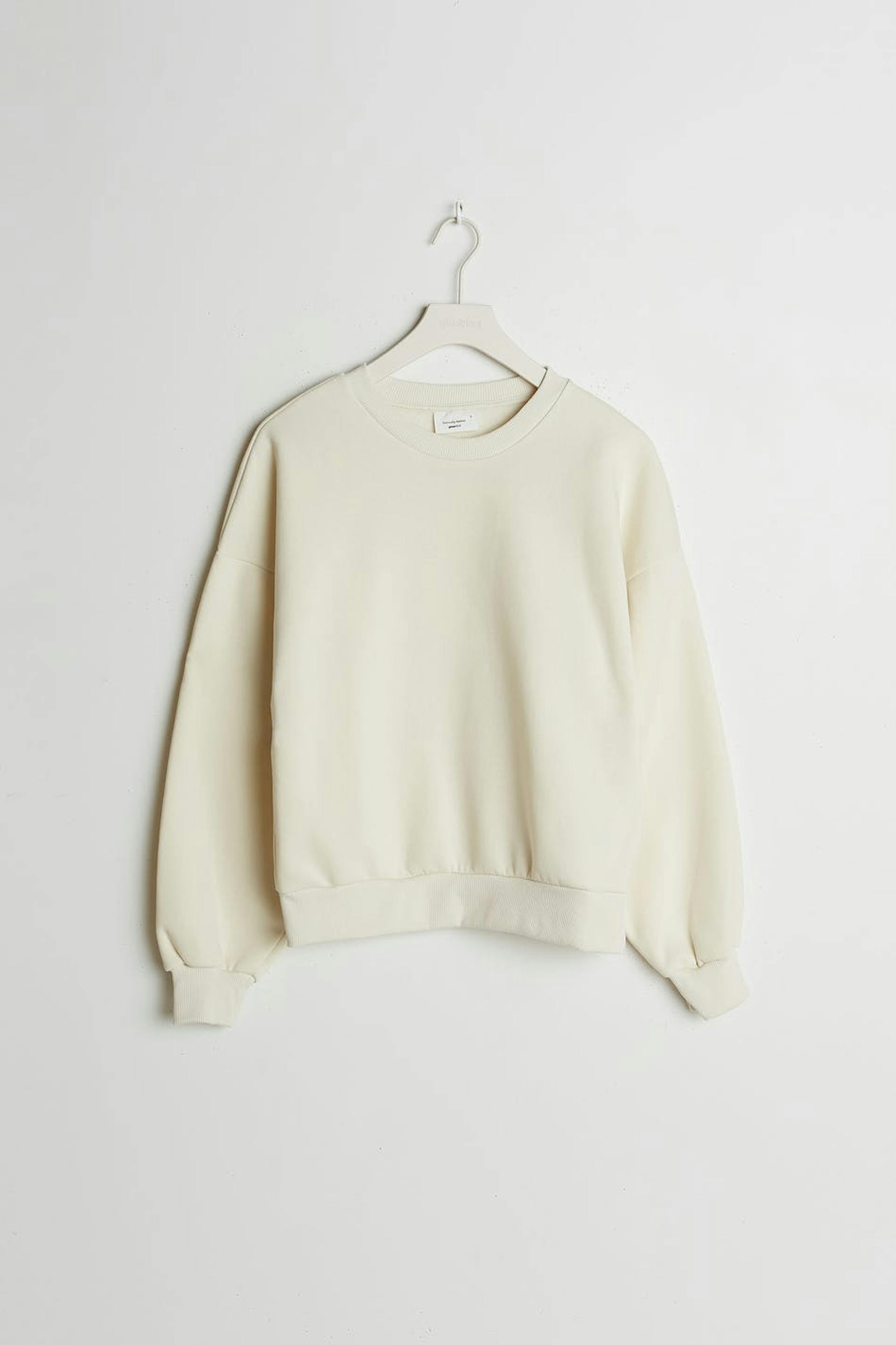 Mjuk tröja med oversize fit. Tröjan är vit och långärmad. Den är gjord av trikå.