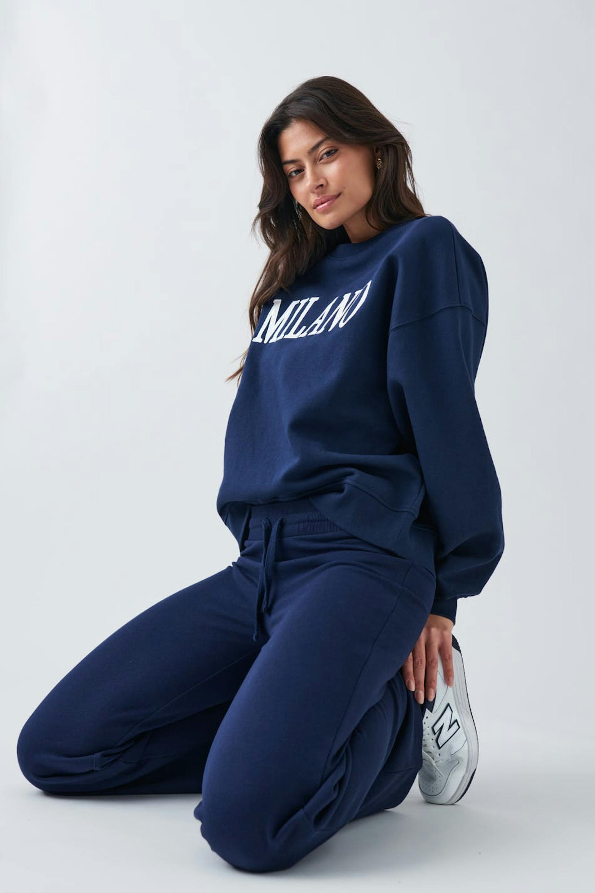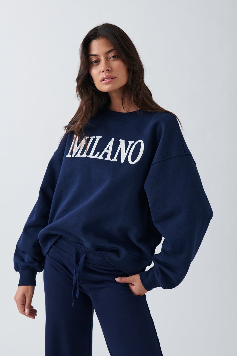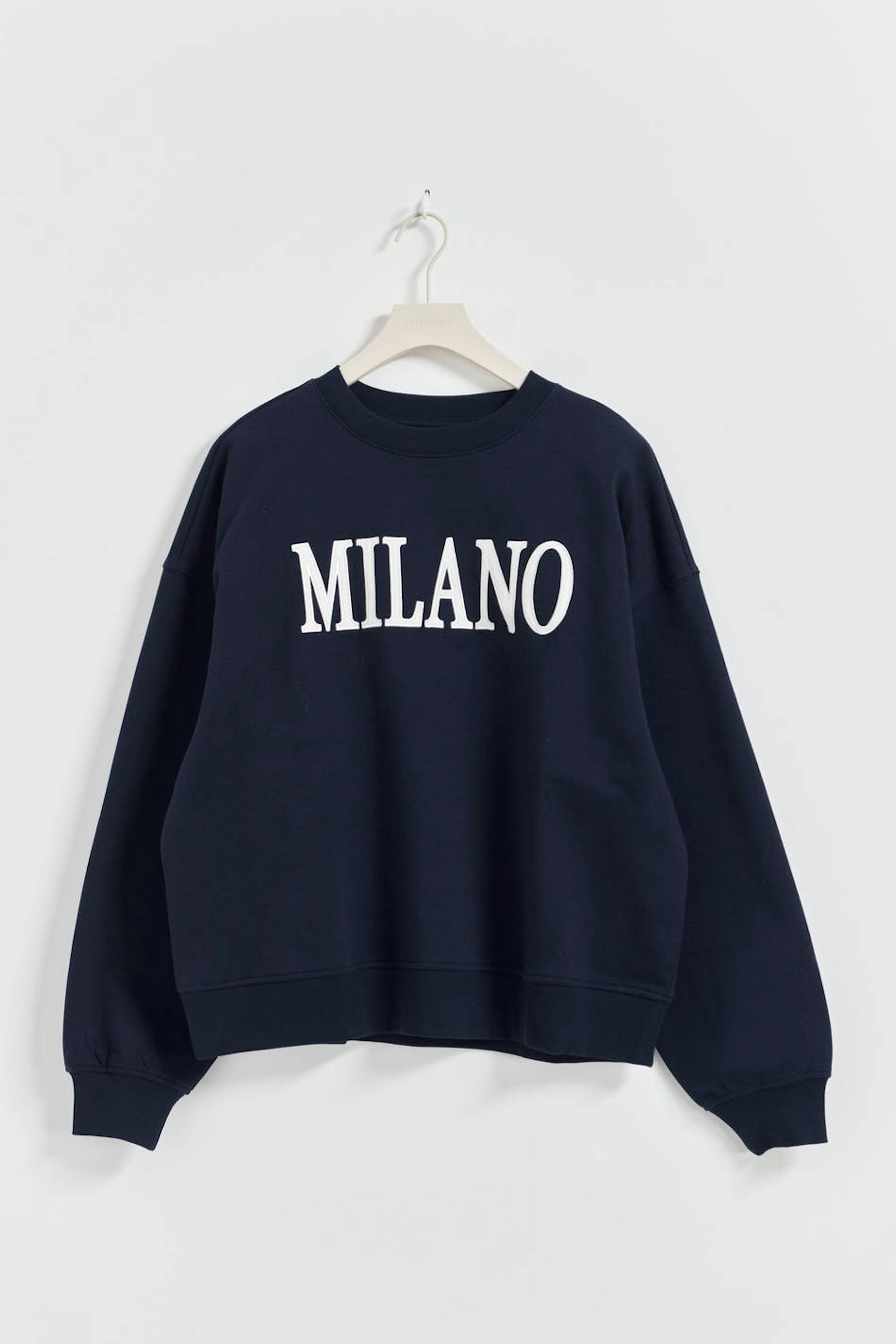 Sweatshirt med broderad text fram. Sweatshirten är blå och har oversize fit. Den har rund halsringning, nedhasad axel och ribbad mudd vid ärmslut och i nederkant.