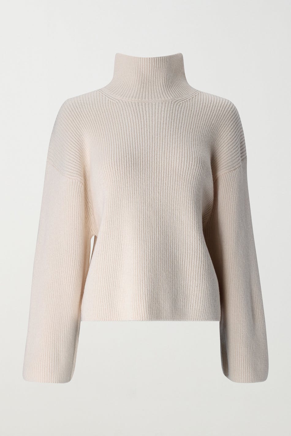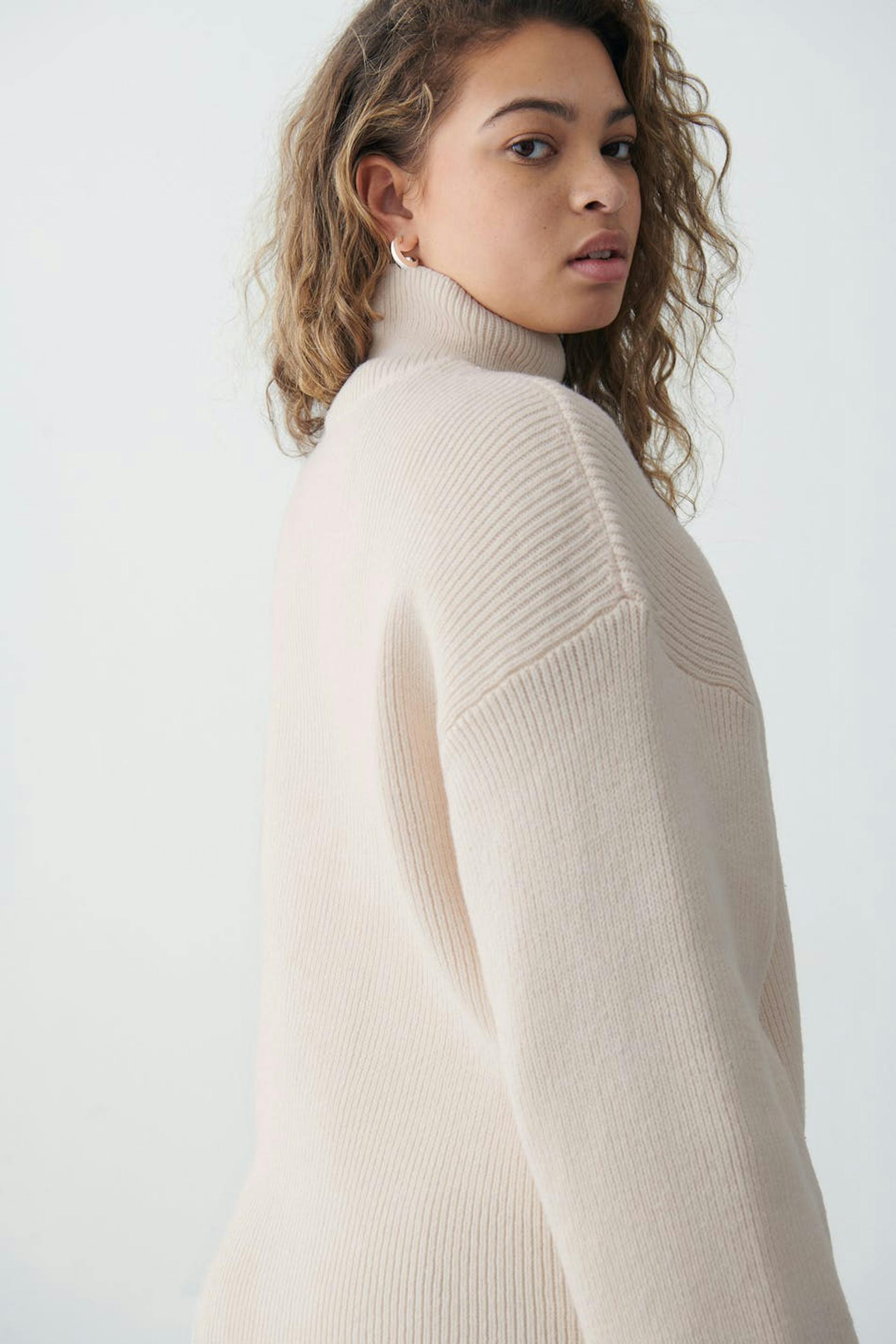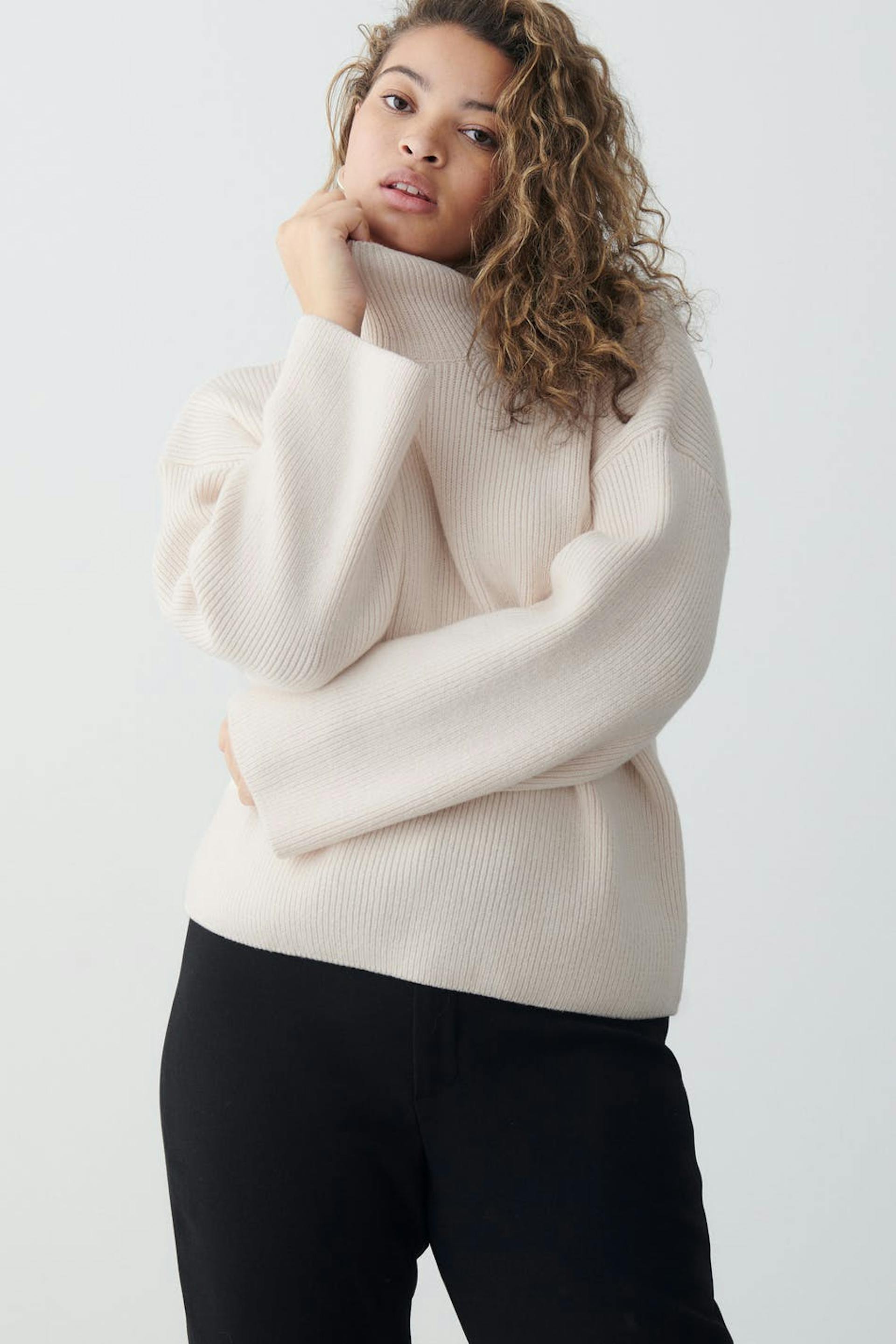 Stickad tröja med oversize fit. Tröjan är vit och har polokrage. Den har raka ärmar och formstickade partier framtill.