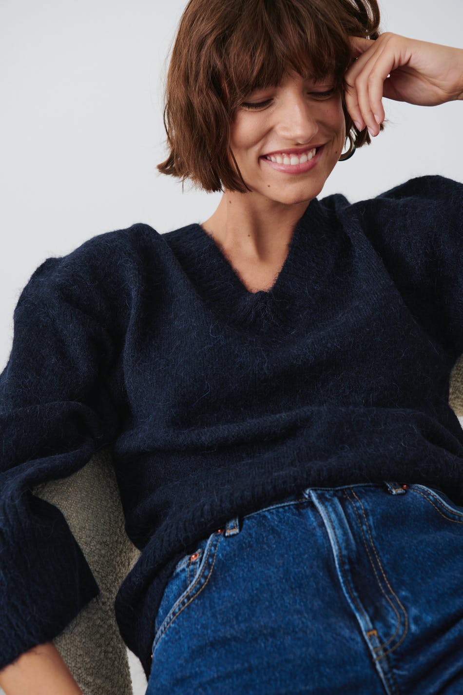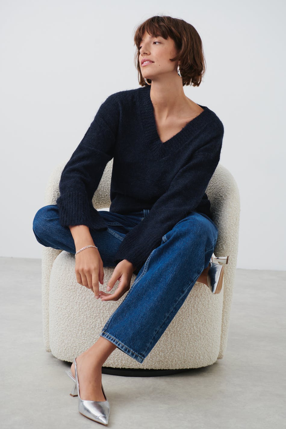 V-neck knitted sweater
