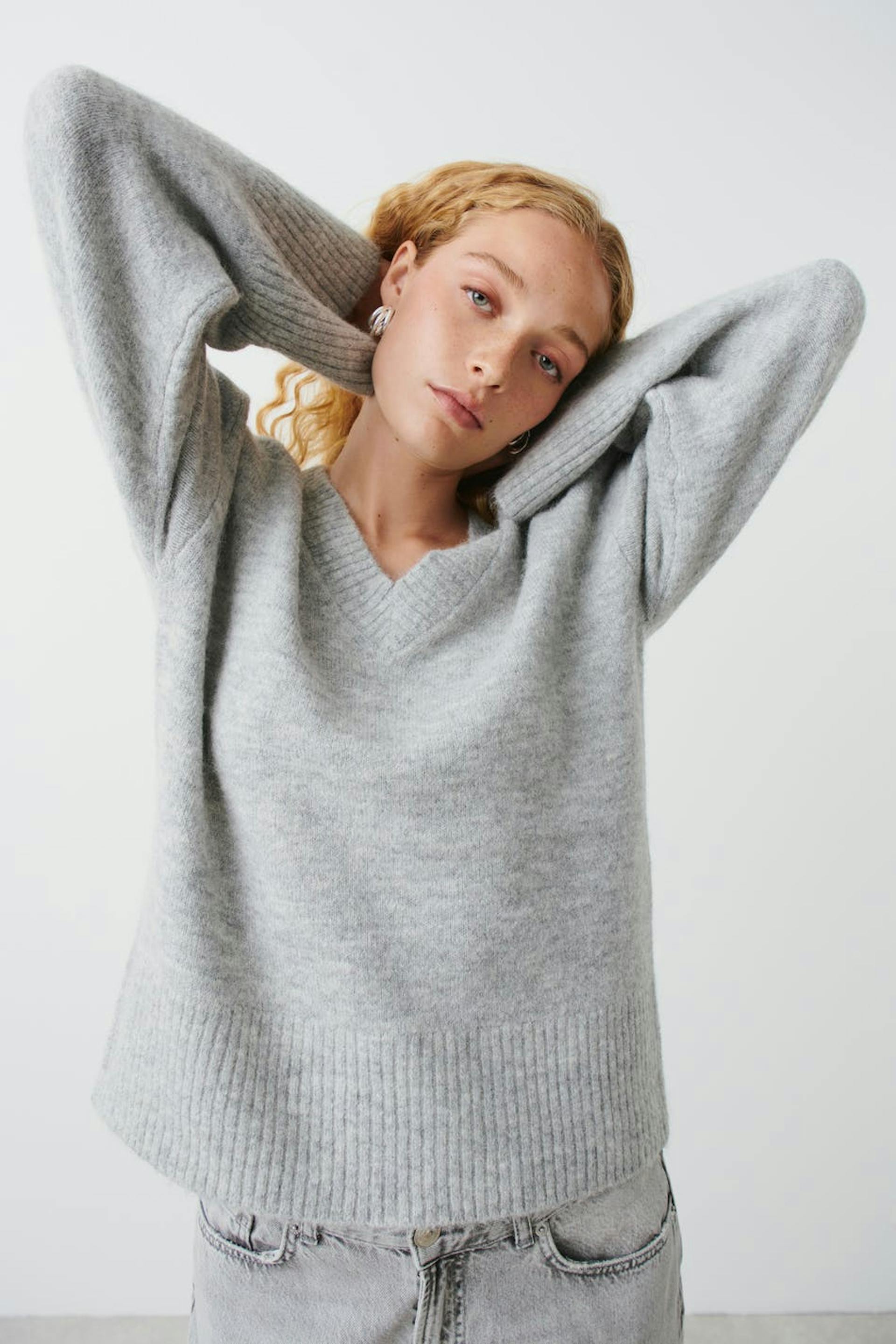 V-neck knitted sweater
