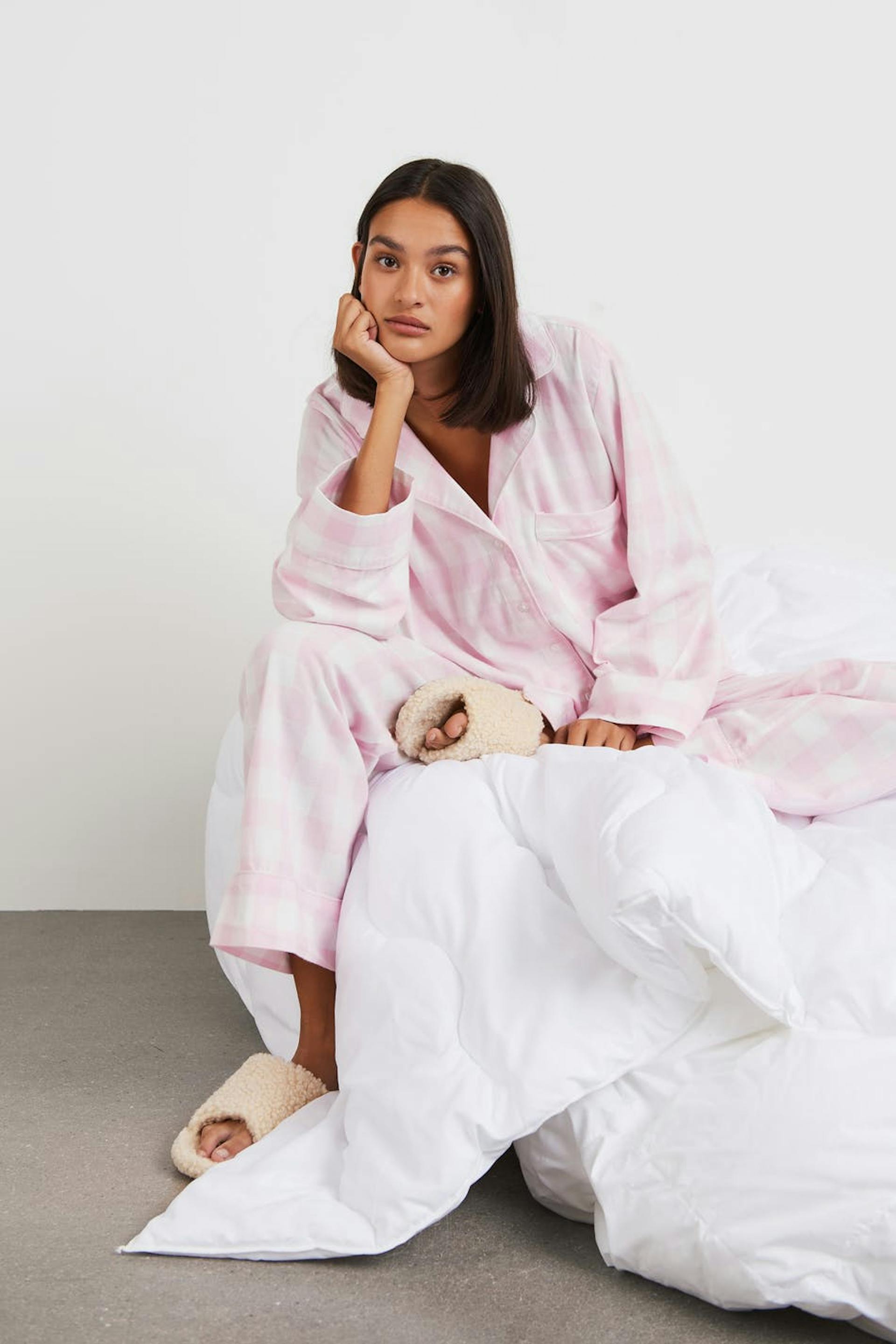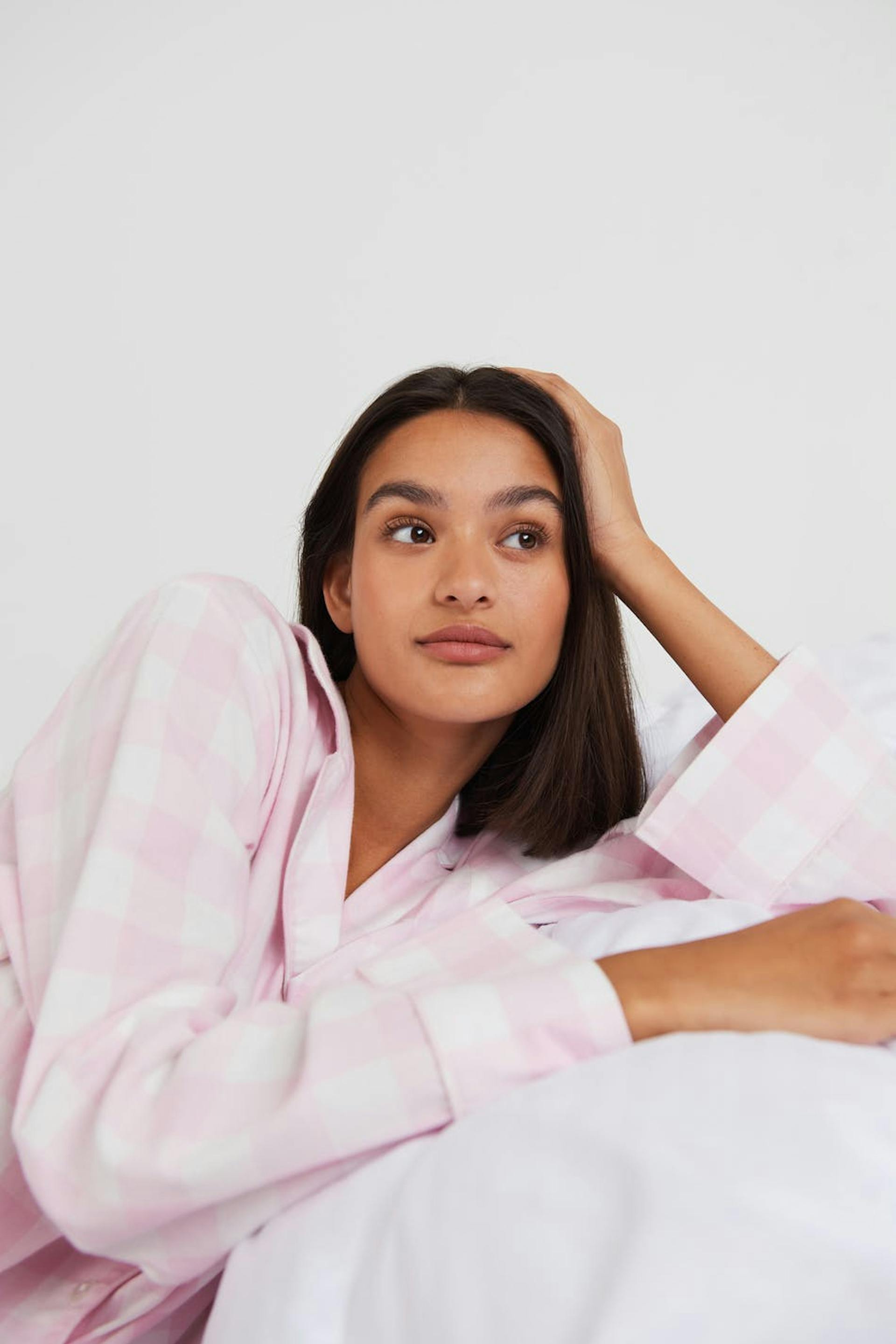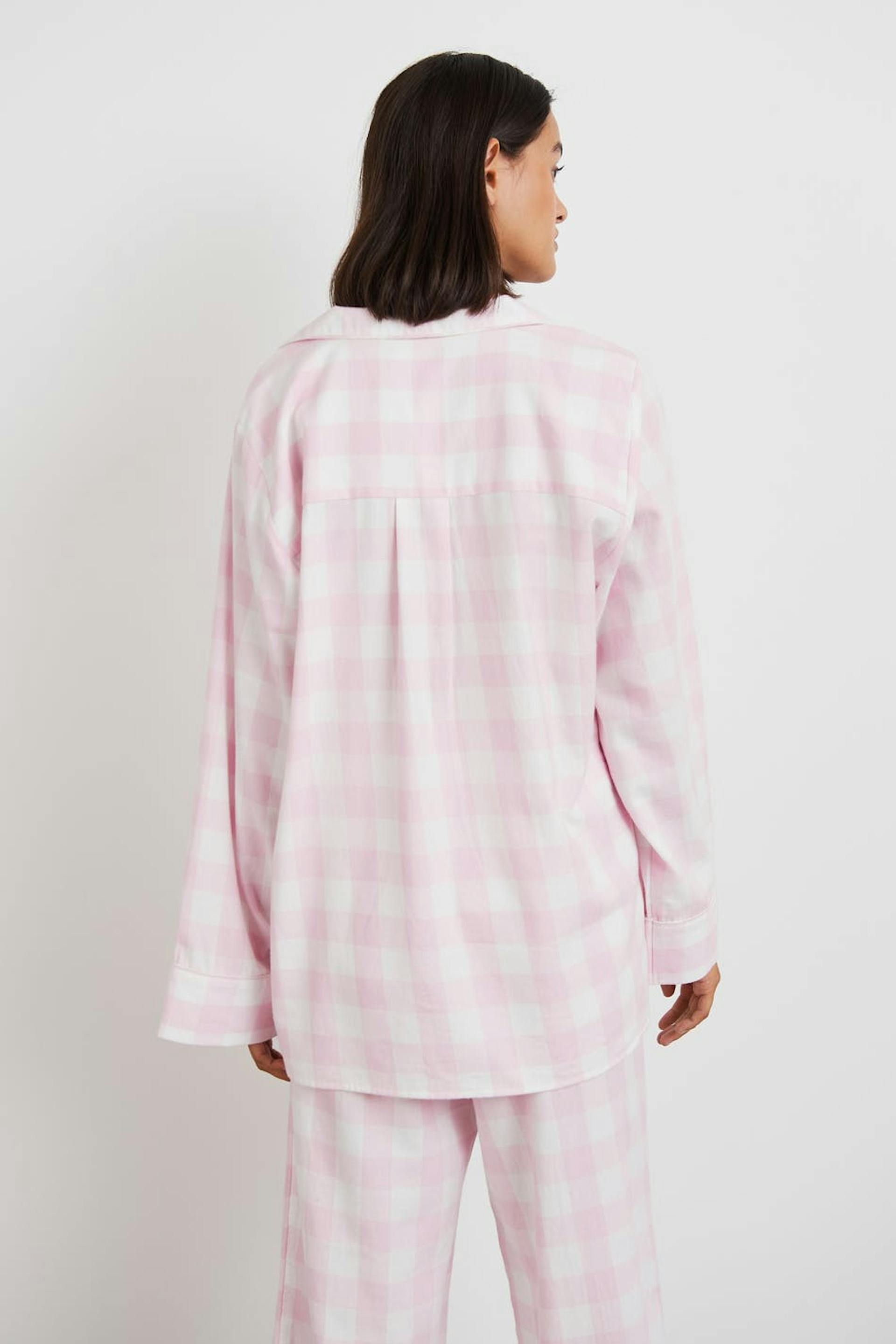 Rutig pyjamasskjorta med oversize fit. Skjortan är rosa och har ett mjukt material i bomull. Den har en krage, en bröstficka och en knappstängning framtill.