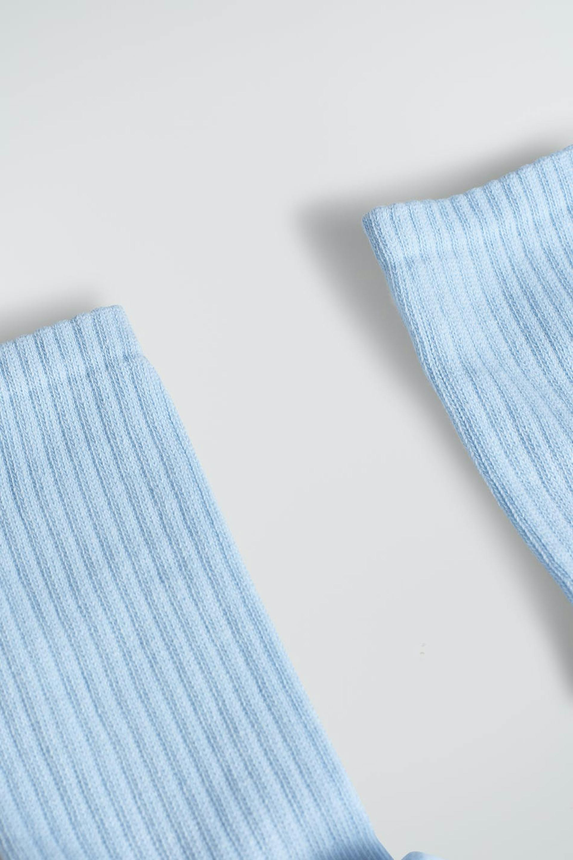 Sportiga strumpor. Strumporna är blåa.