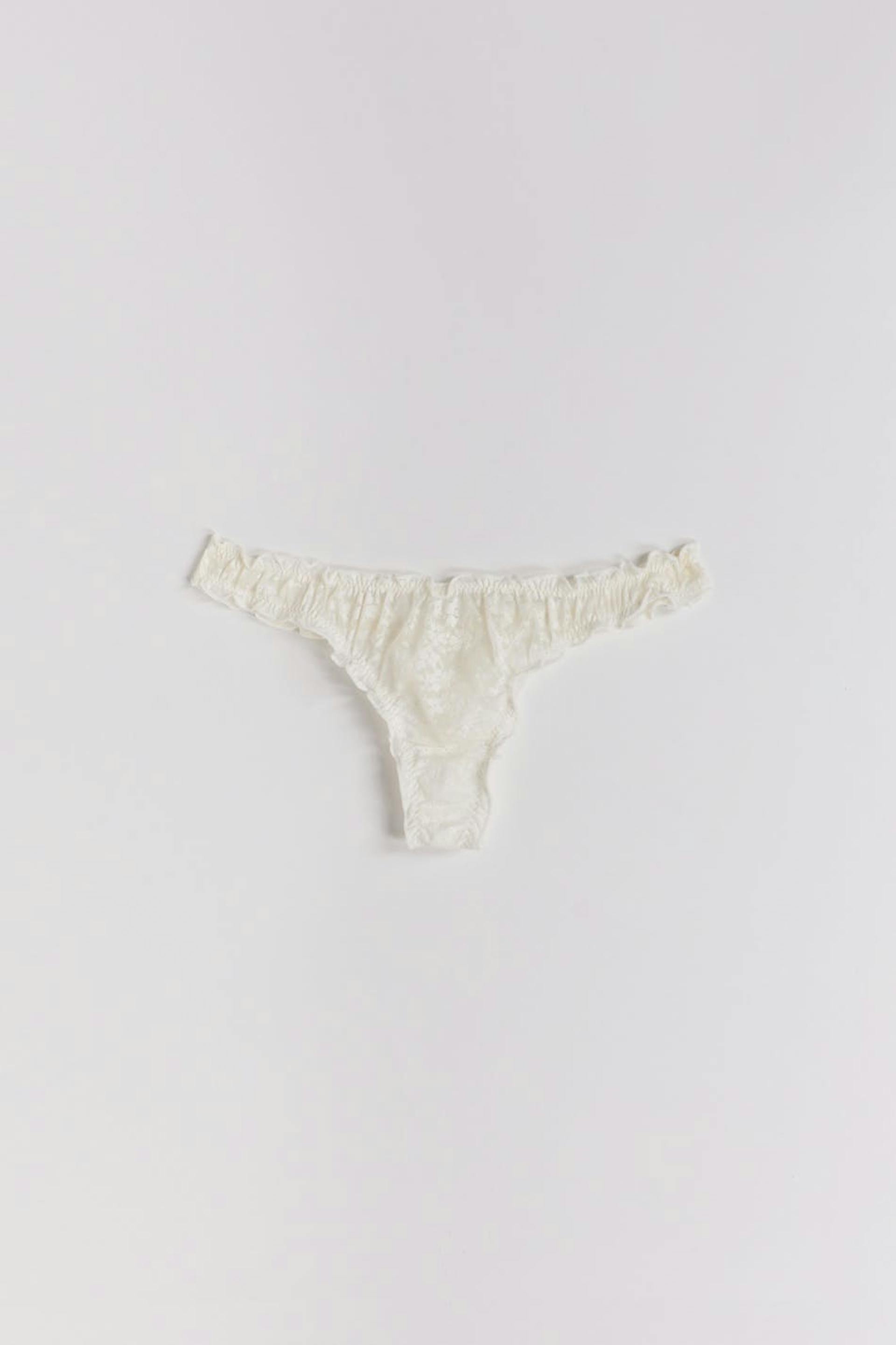Stringtrosor i 3-pack med volangkanter. Stringtrosorna har fodrad gren i bomull.