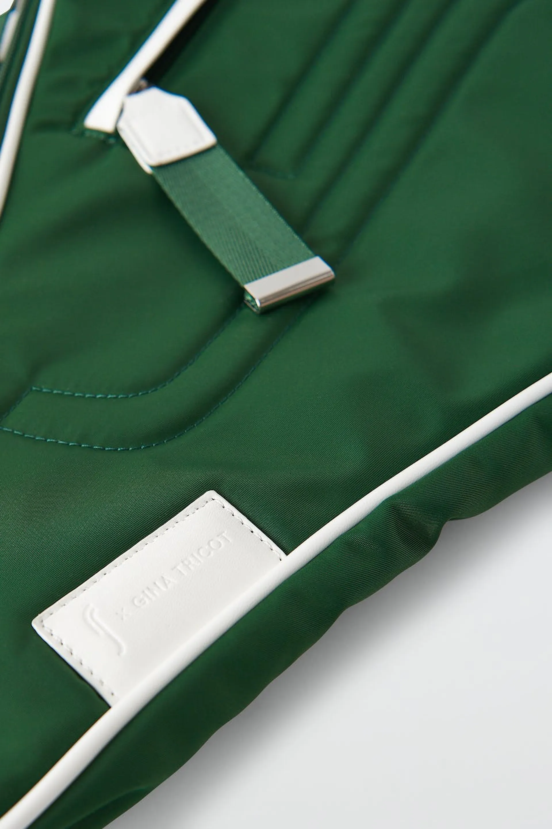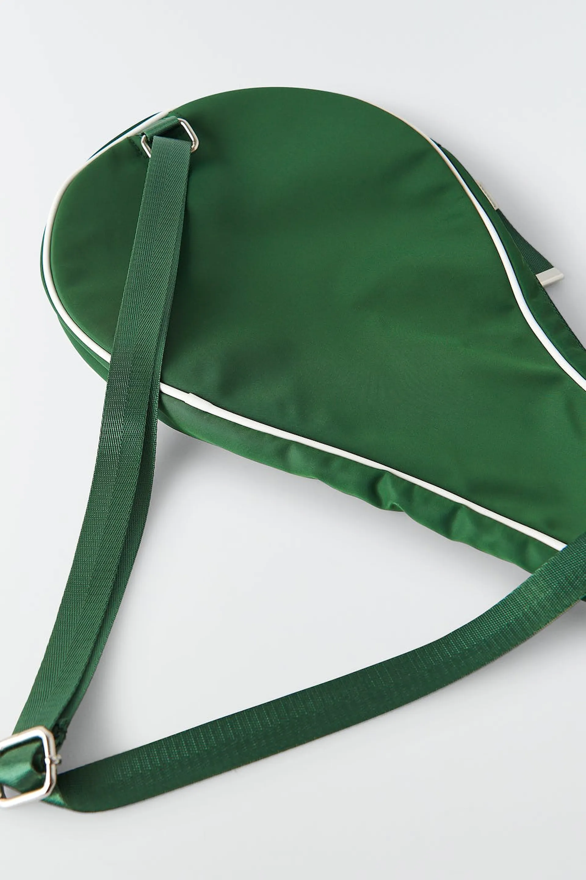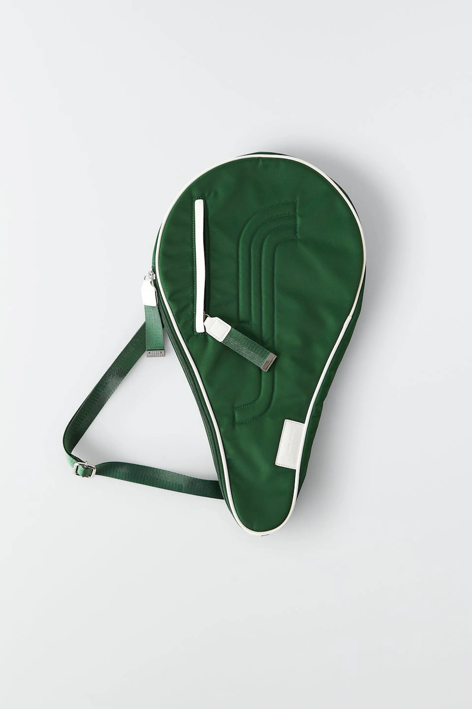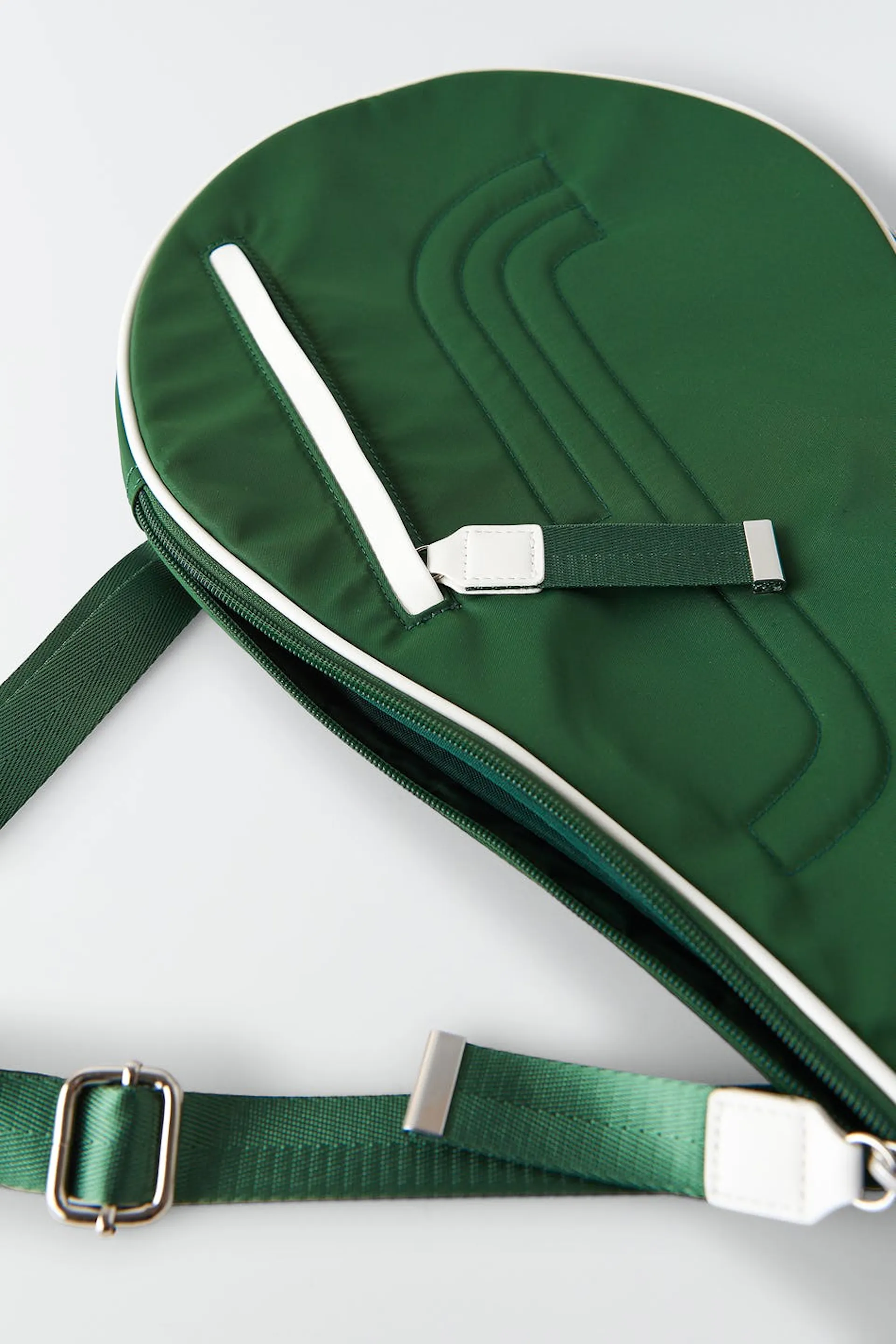 RS X Gina Tricot. Vadderat padelfodral med justerbar axelrem. Fodralet är grönt och har vita detaljer. Det har en dragkedjestängning och ett ytterfack framtill.