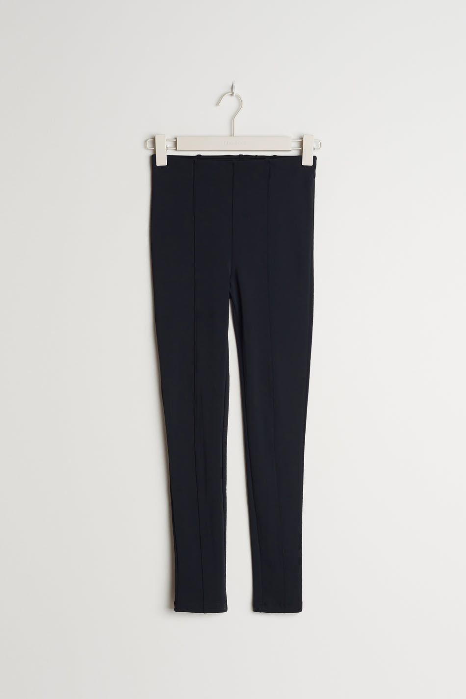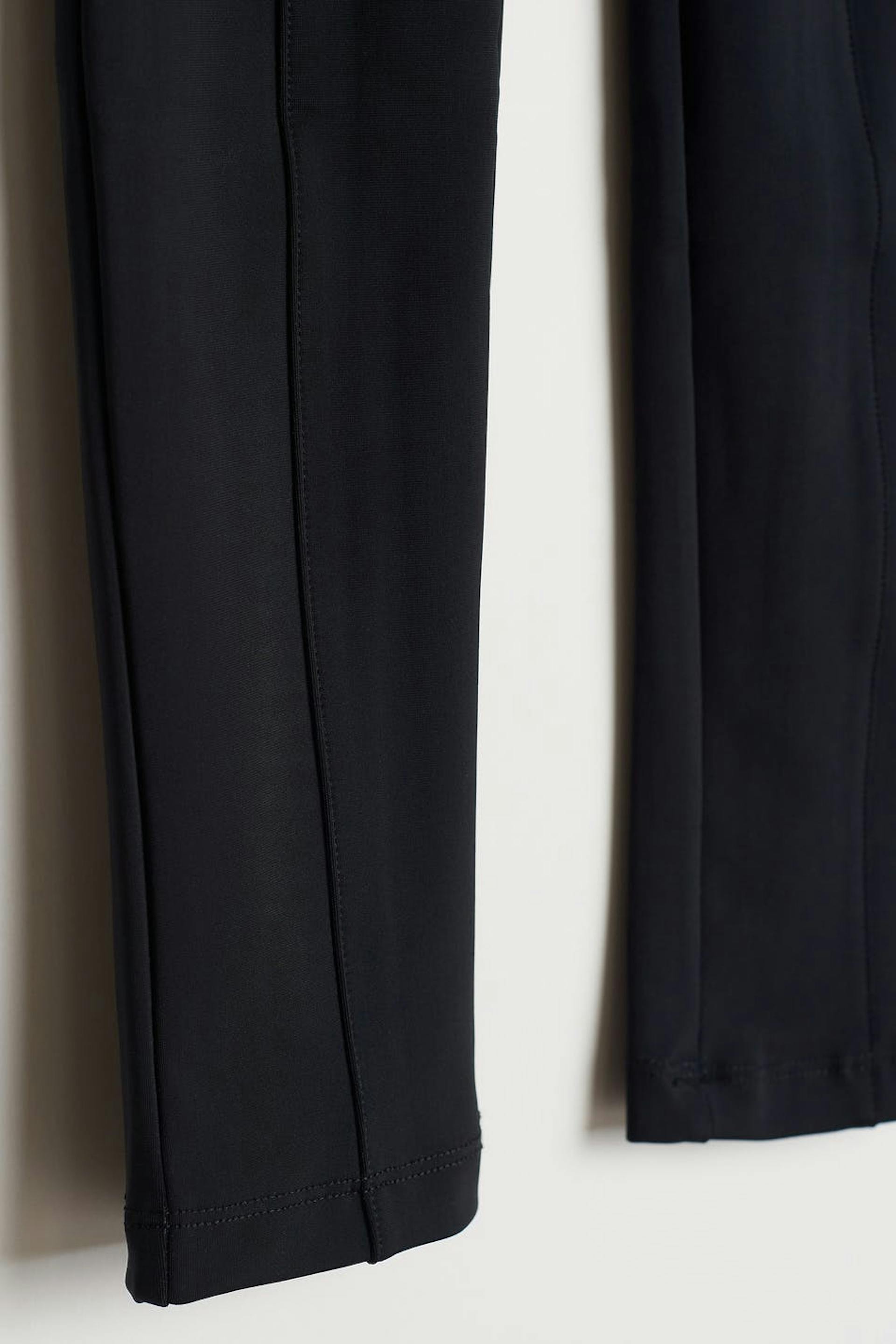 Leggings med en hög midja. Leggingsen är svarta och har sömdetaljer nedför benen.